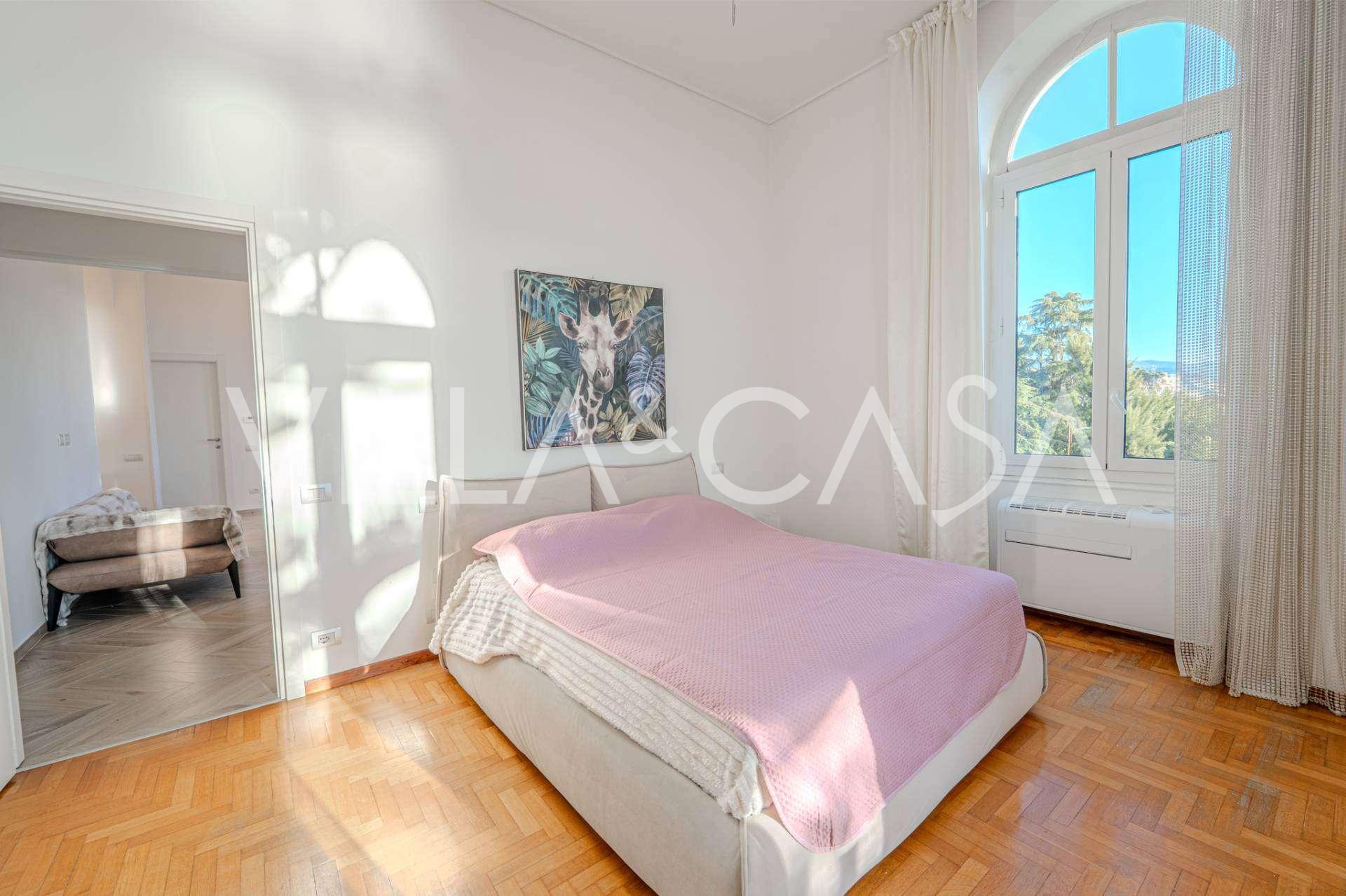 Til leie tilbys en toroms leilighet i Sanremo, med et areal på 73 m2 og havutsikt. Den ligger i andre etasje i en bygning med heis og inkluderer en stue, et soverom med balkong, kjøkken og bad. Leiligheten er i utmerket stand, utstyrt med nye vinduer, klimaanlegg, har parkettgulv og autonom oppvarming. Fullt møblert. Leien inkluderer en plass i garasjen. Eiendommen ligger i et lukket boligkompleks med basseng, hage, rekreasjonsområde og grillplass. Kun 7 minutters gange til sentrum og sjøen.