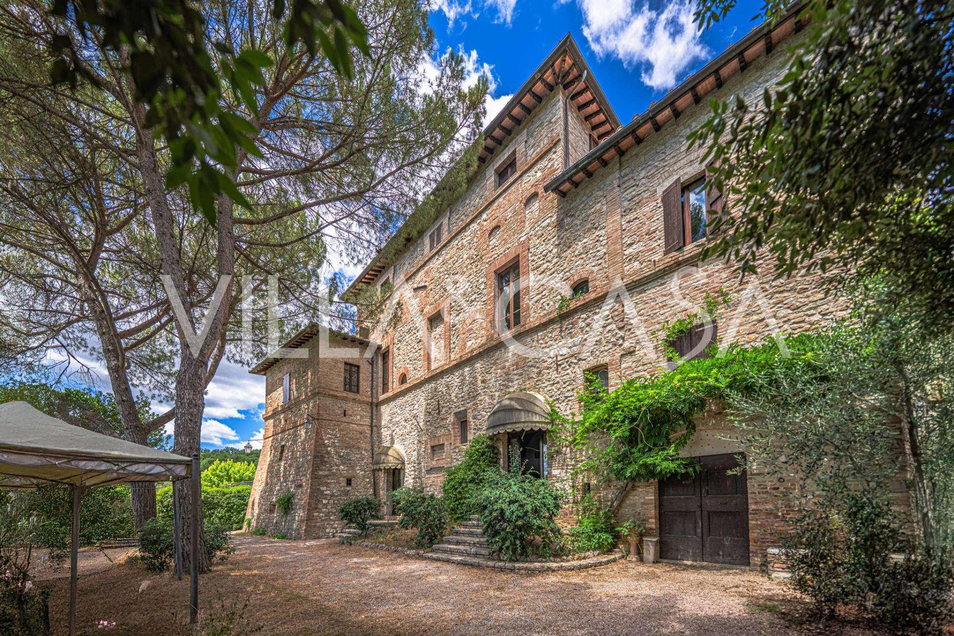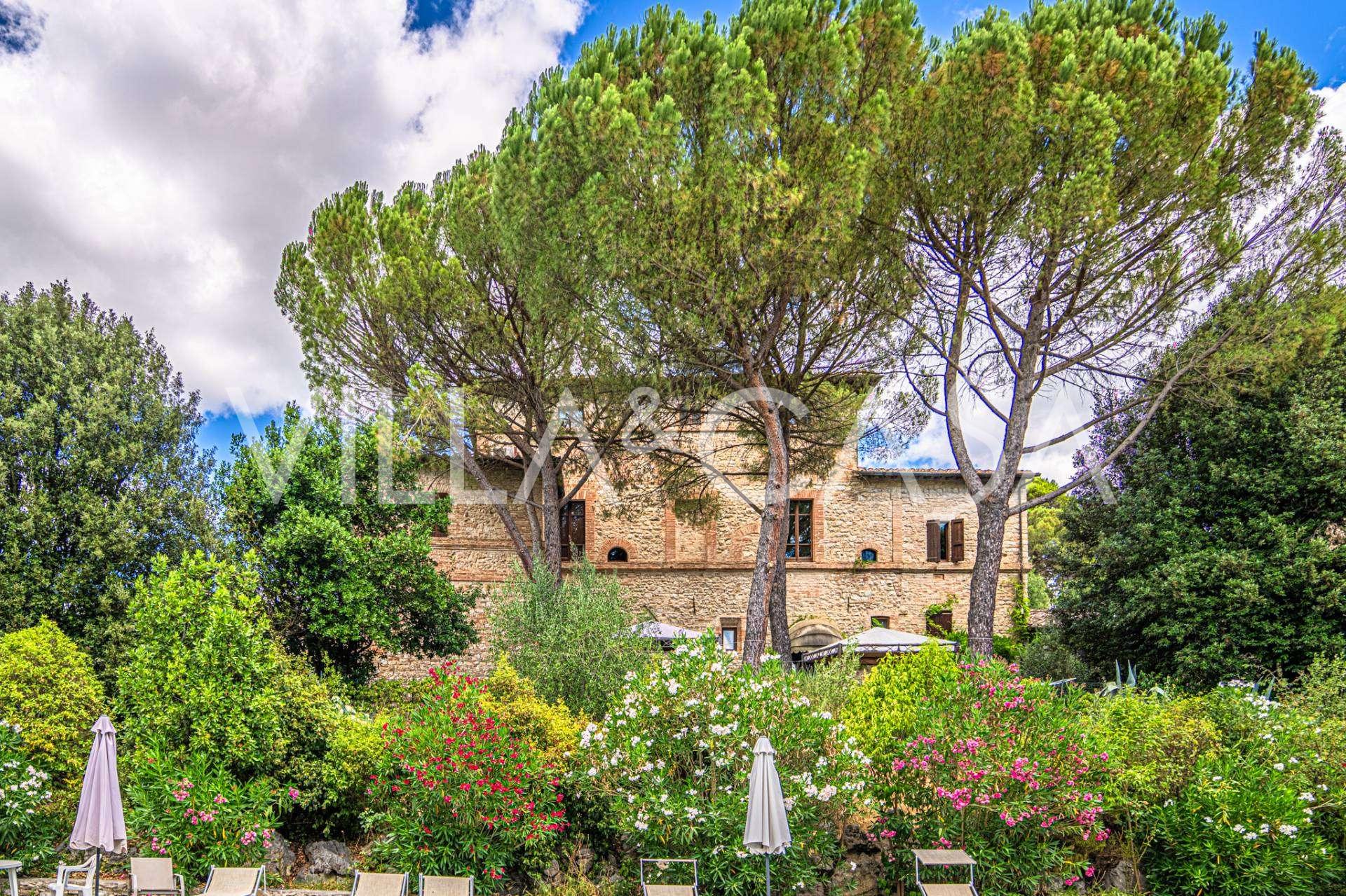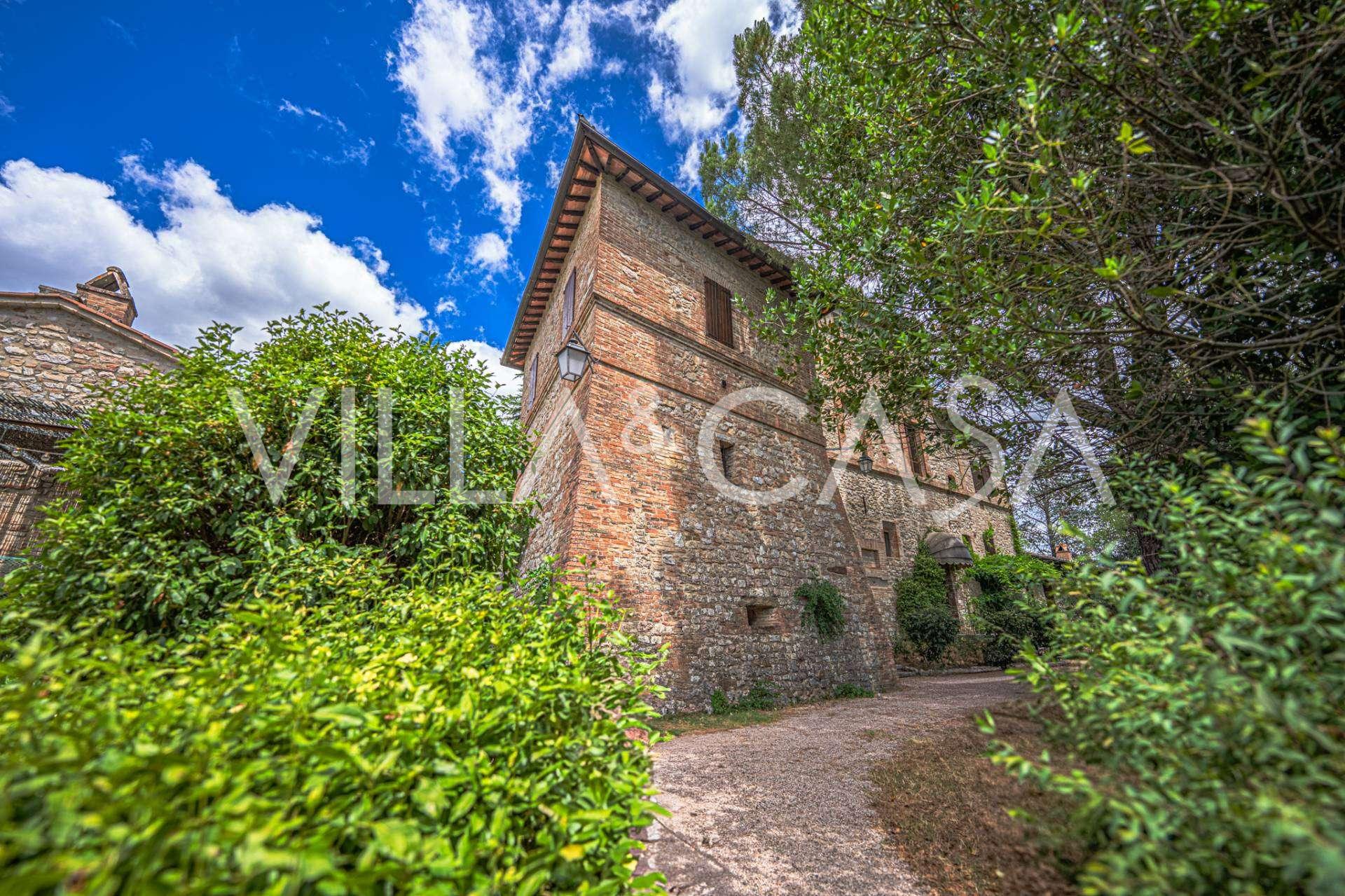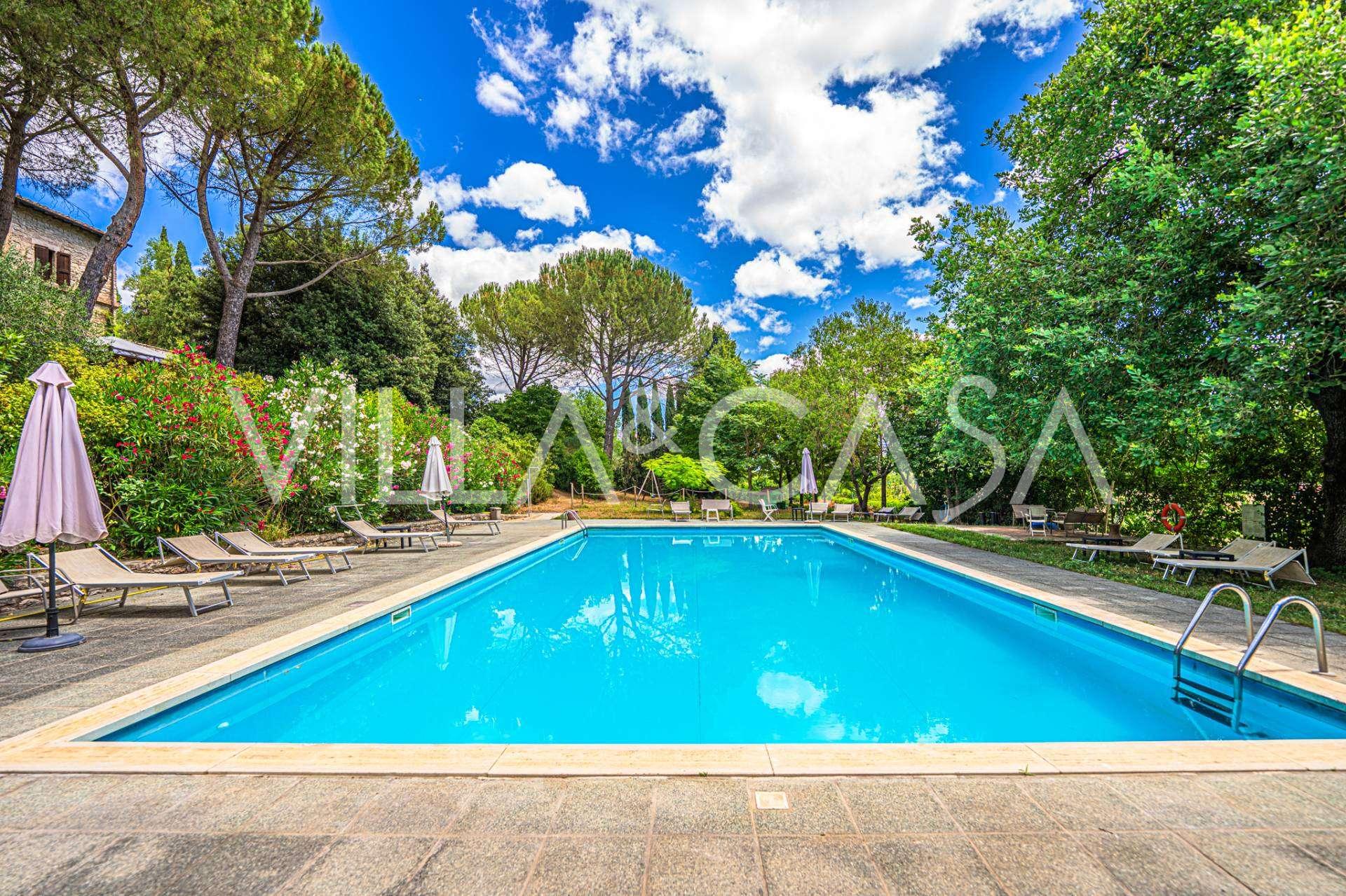 En tusen år gammel residens på 1100 m2, omgjort til en elegant agriturismo med 10 leiligheter og 20 soverom, park, basseng og tennisbane, er til salgs i Perugia.