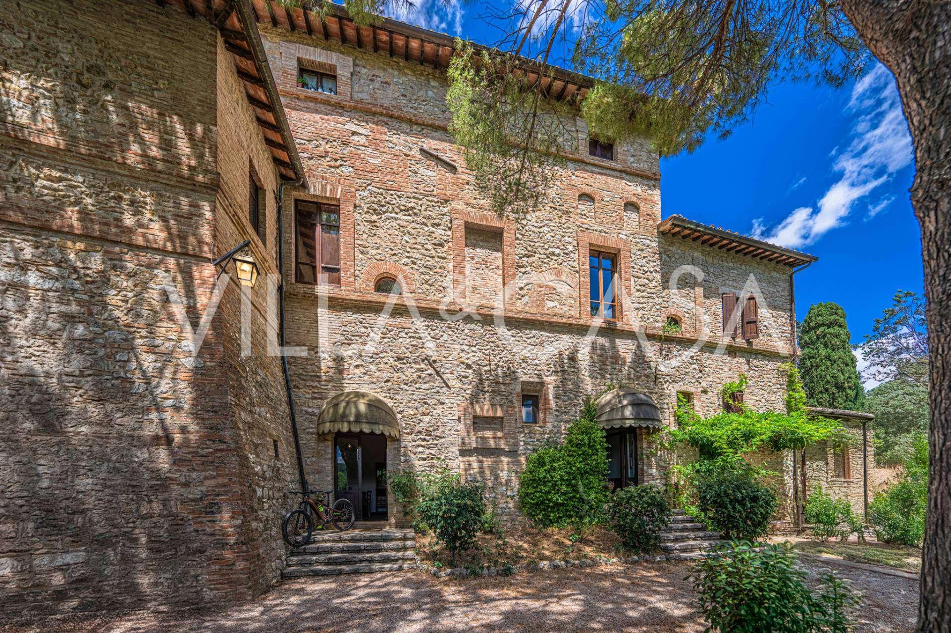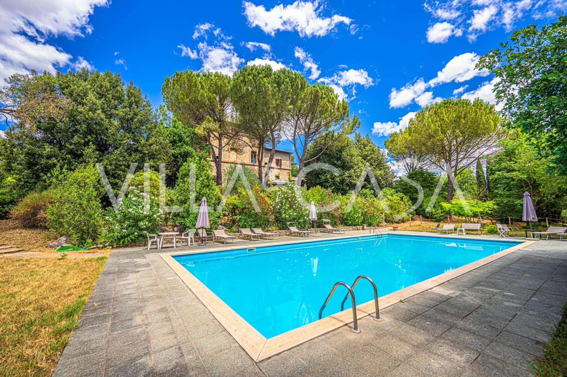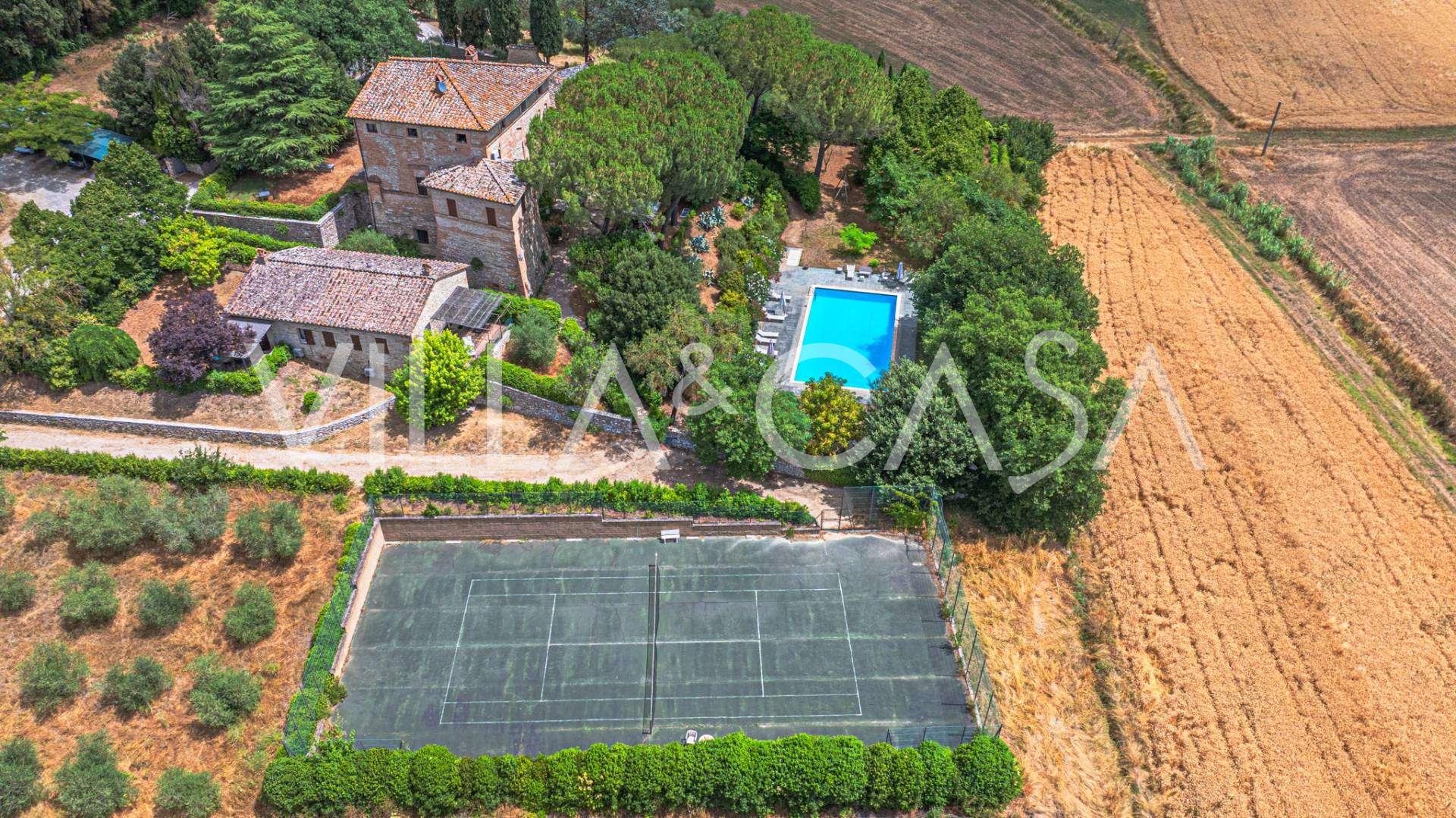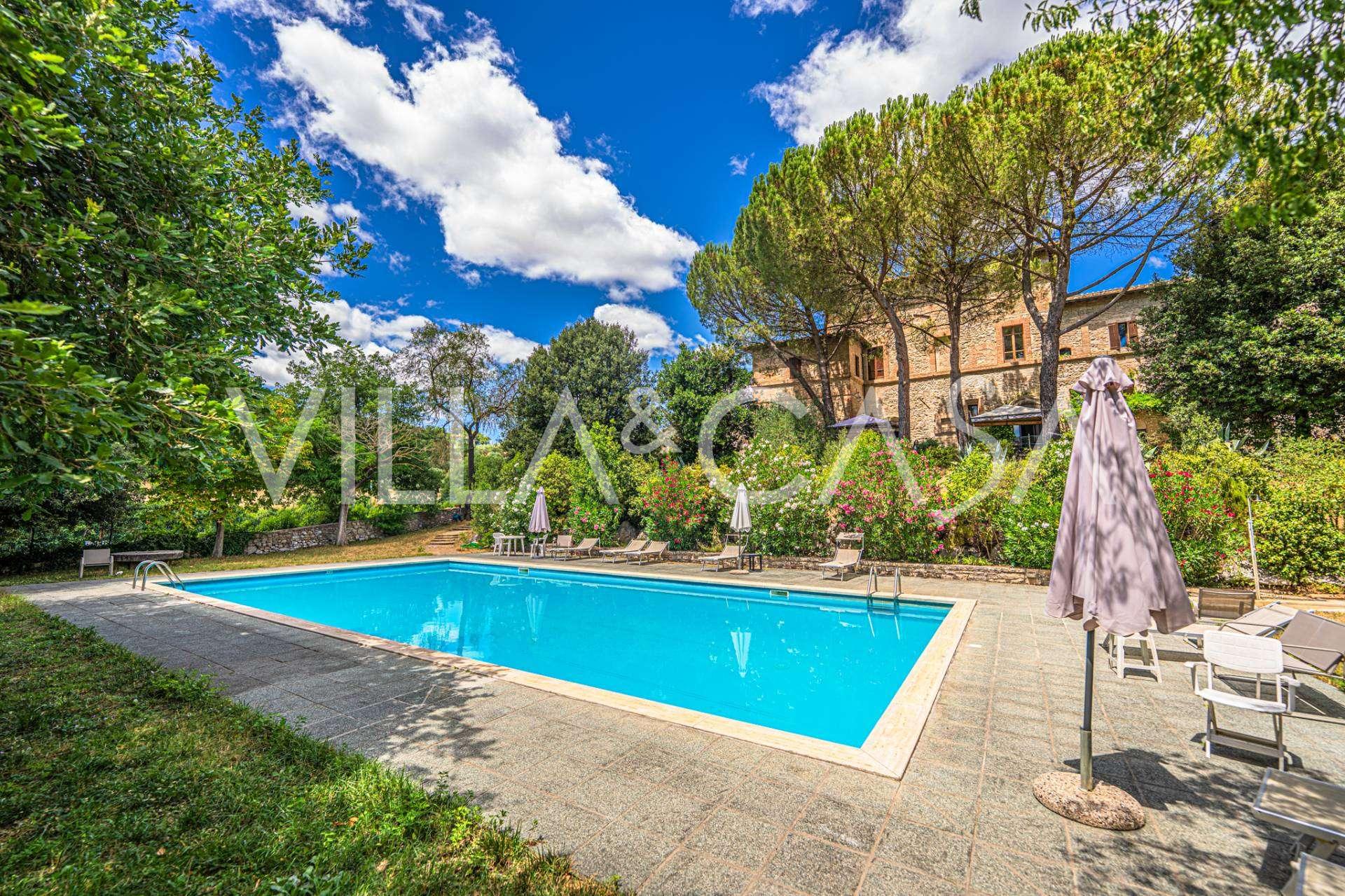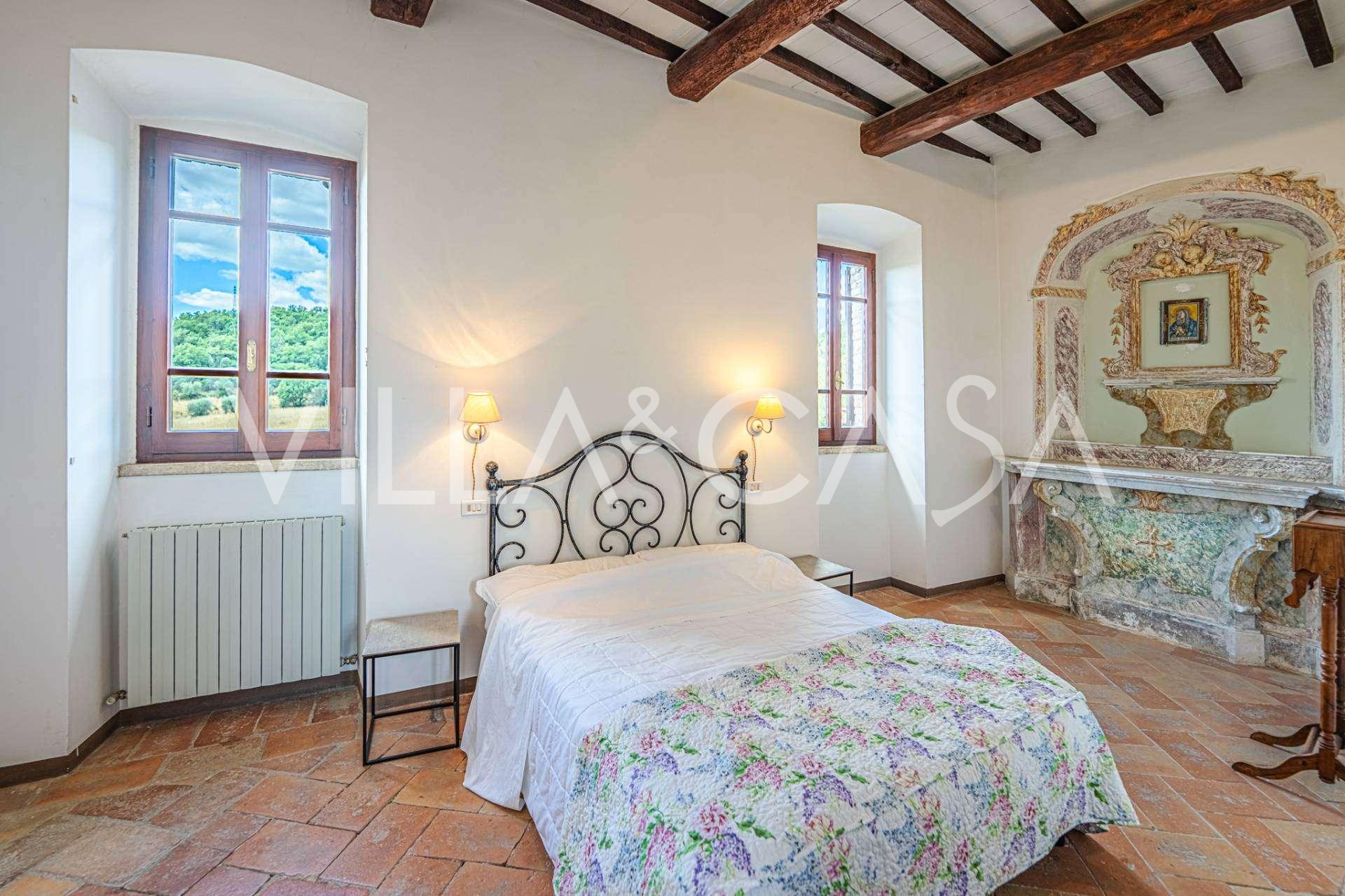 En tusen år gammel residens på 1100 m2, omgjort til en elegant agriturismo med 10 leiligheter og 20 soverom, park, basseng og tennisbane, er til salgs i Perugia.