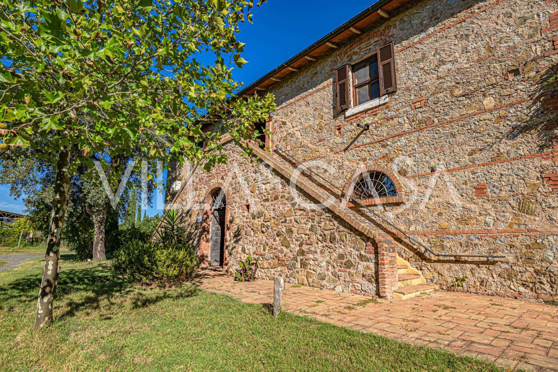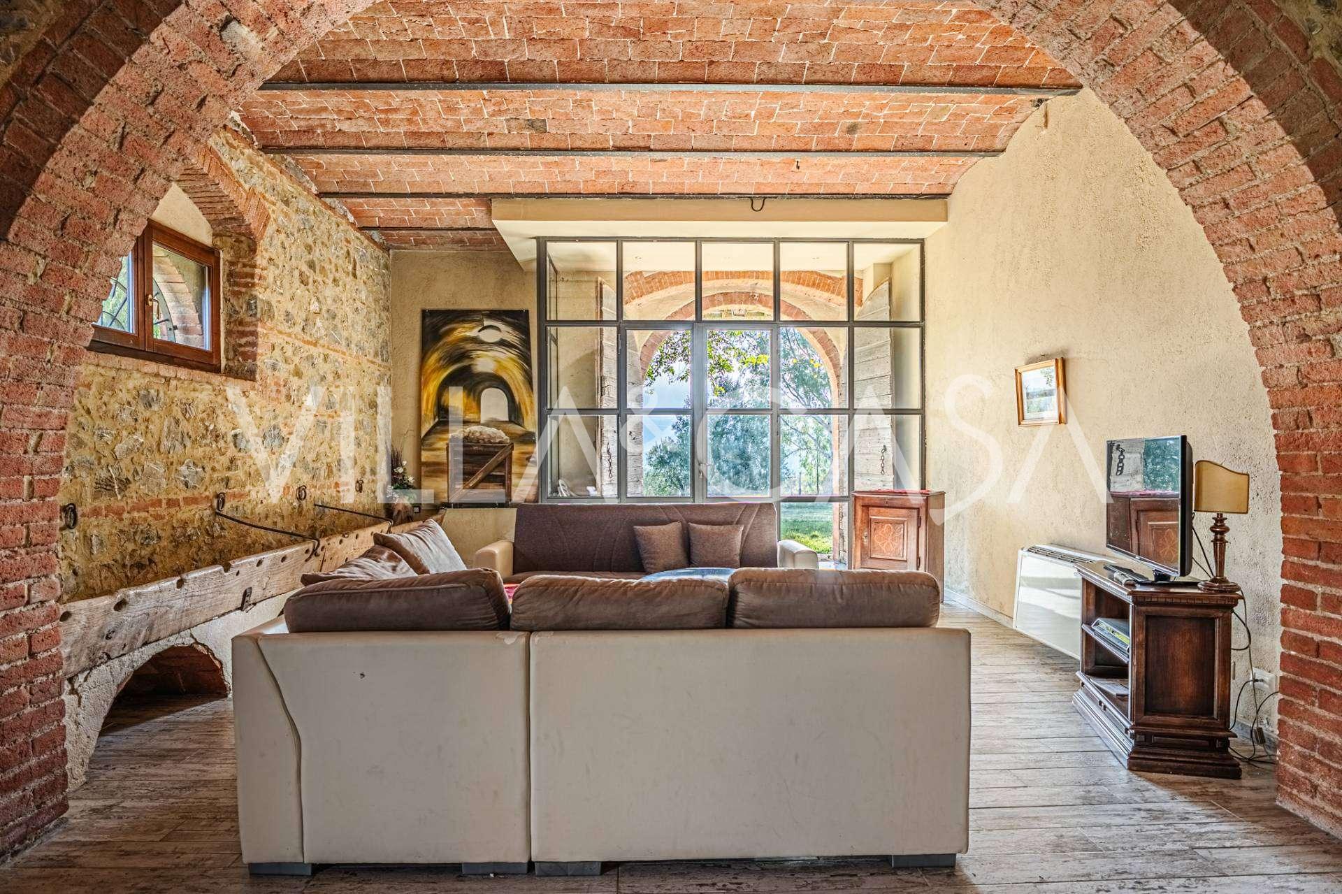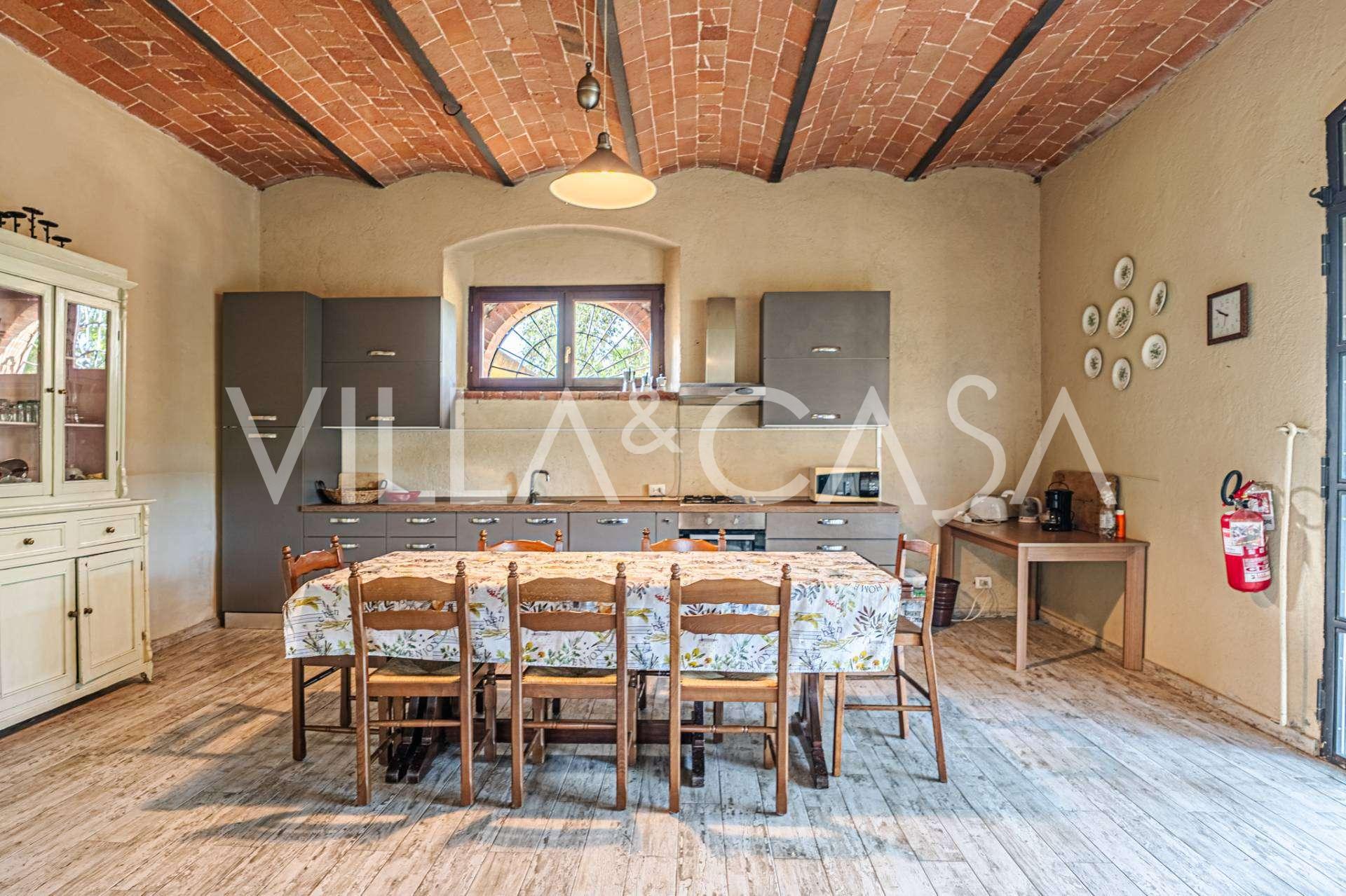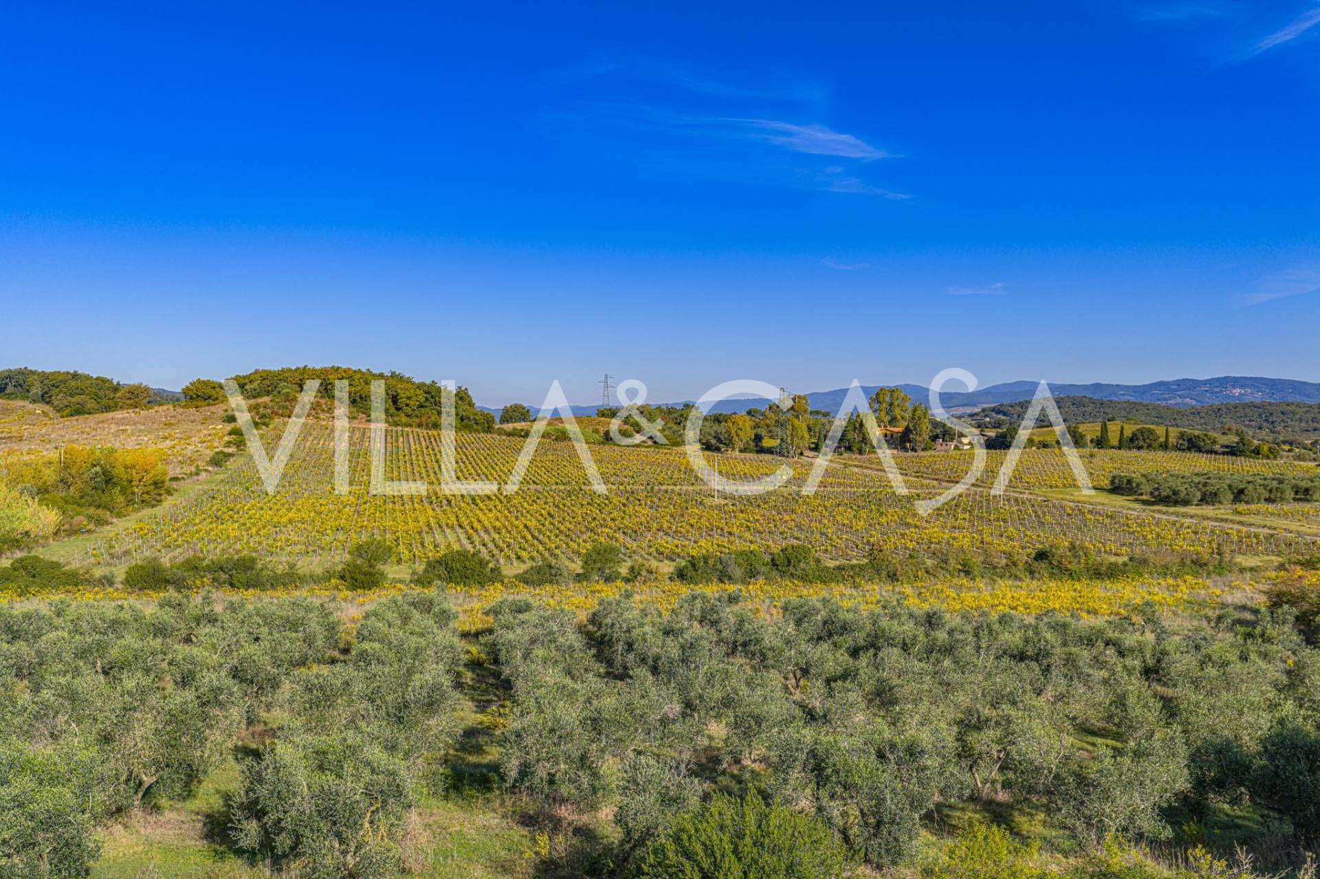 Ved foten av huset, i stillheten av naturen, ligger et praktfullt basseng med solområde, omgitt av levende hekker og blomstrende bed. På området finnes også to hektar med vinmarker, en olivenlund og fruktbare jorder, som skaper en unik toskansk atmosfære.