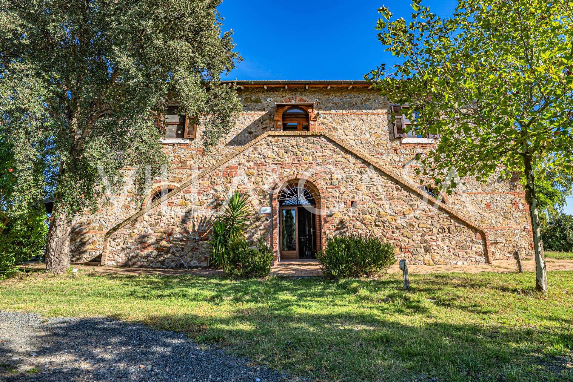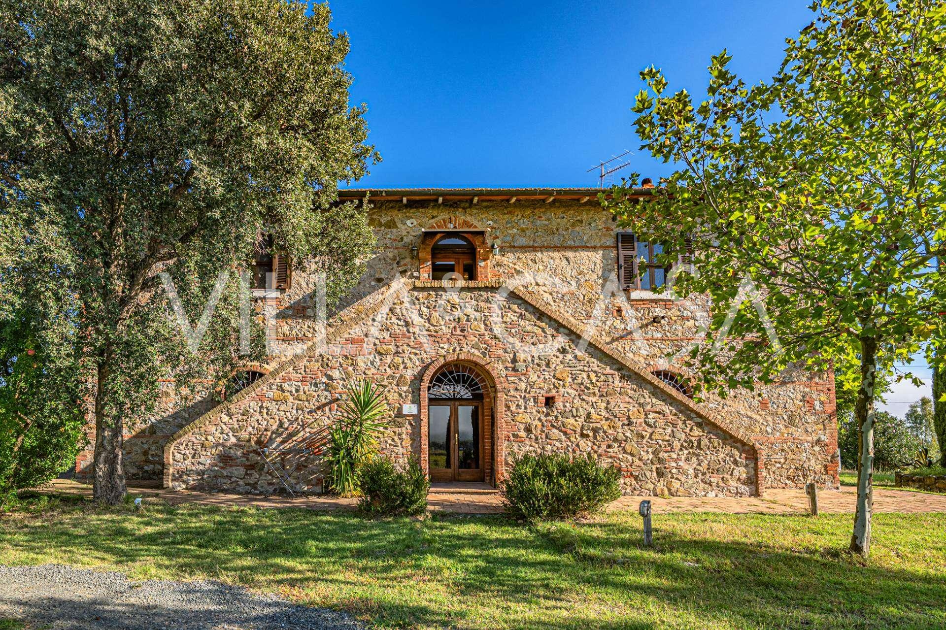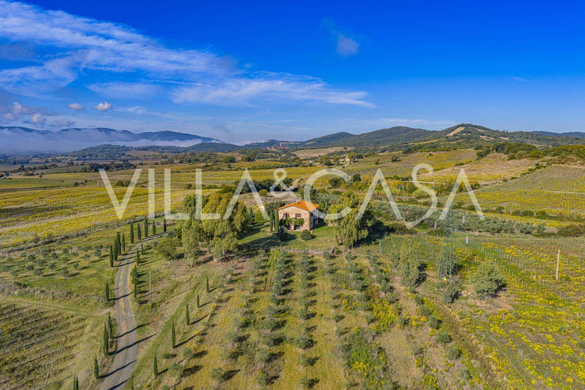 I det pittoreske området Maremma, på en høyde med imponerende utsikt over det toskanske landskapet mellom Bolgheri og Scansano, ligger en elegant herregård fra slutten av 1800-tallet, som kombinerer historie, natur og ekte italiensk sjarm.
