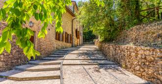 Den arkitektoniske planen, som har bevart ånden fra middelalderske bosetninger, danner et pittoresk ensemble: steingårdsplasser, buede loggiaer, terrasser med utsikt over dalen, gamle trapper og mystiske smug som fører til fantastiske utsikter og bortgjemte steder.