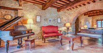 Skjult blant åsene i den øvre Tiberdalen, er denne elegante renessanseborgoen, bygget rundt et gammelt militærtårn fra 1500-tallet og kunstferdig restaurert, nå en ekte oase av sjarm, komfort og italiensk kunst. Her lever historien harmonisk side om side med moderne komfort, hver stein ånder av århundrer, og hvert hjørne er fylt med lys og harmoni.