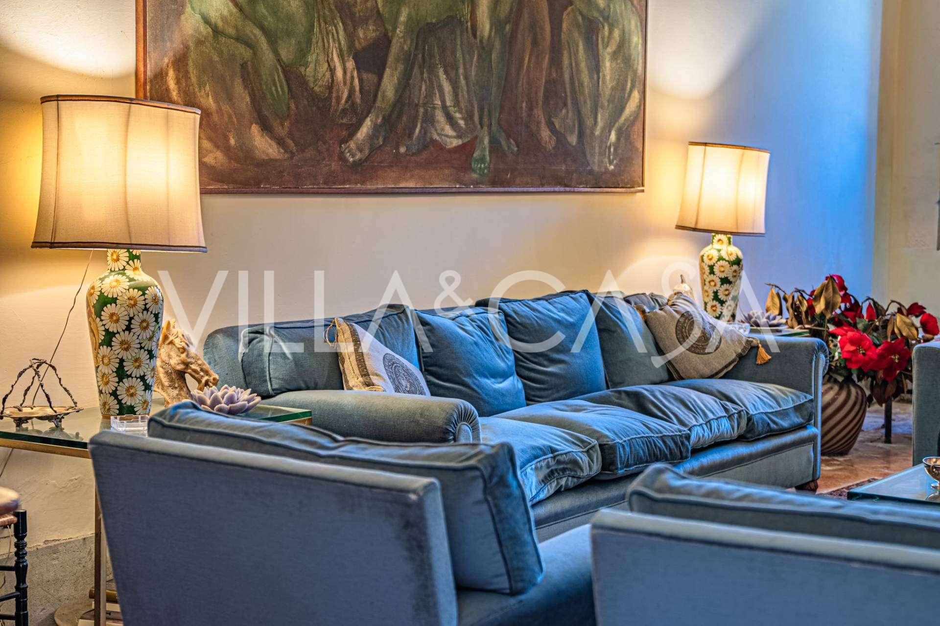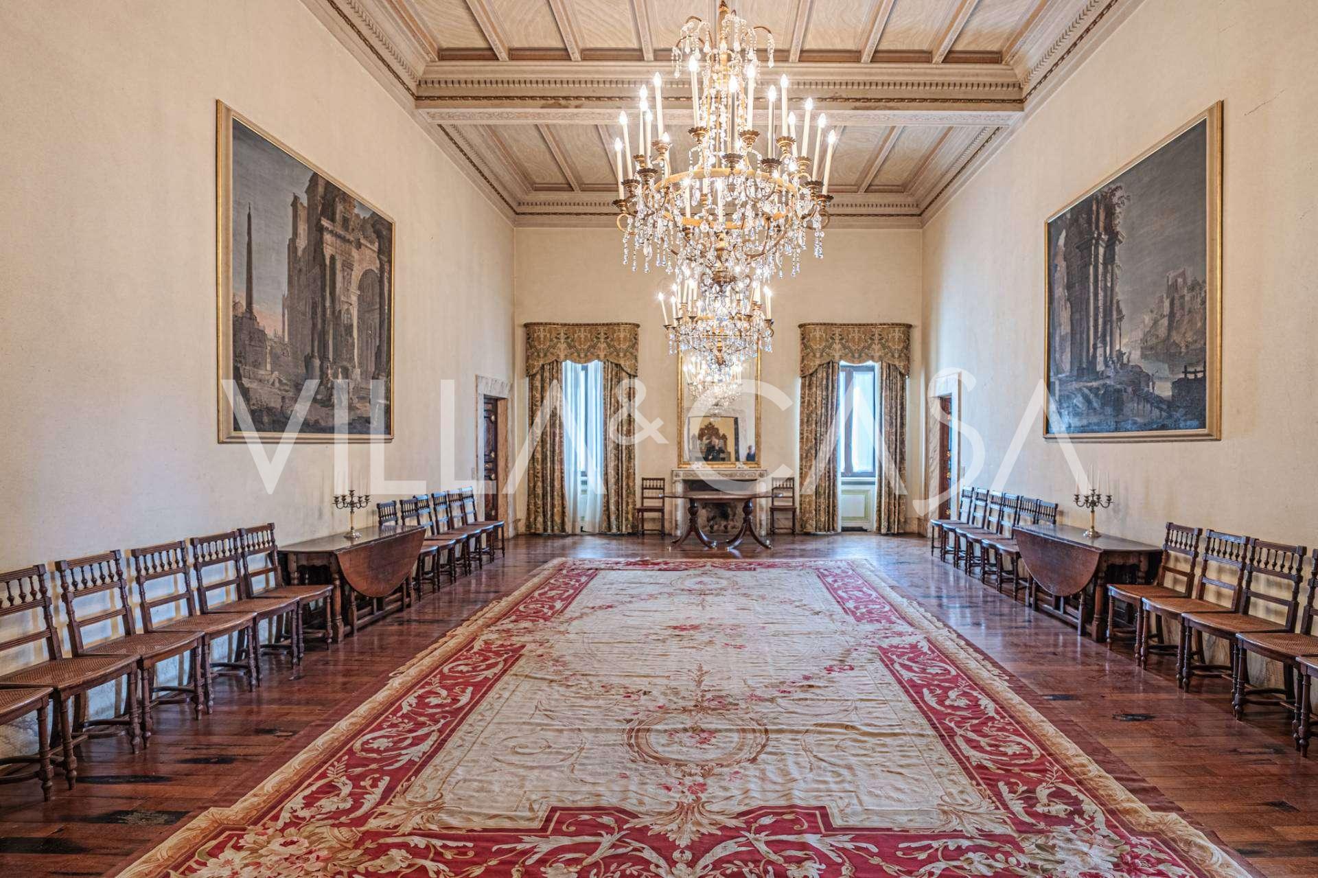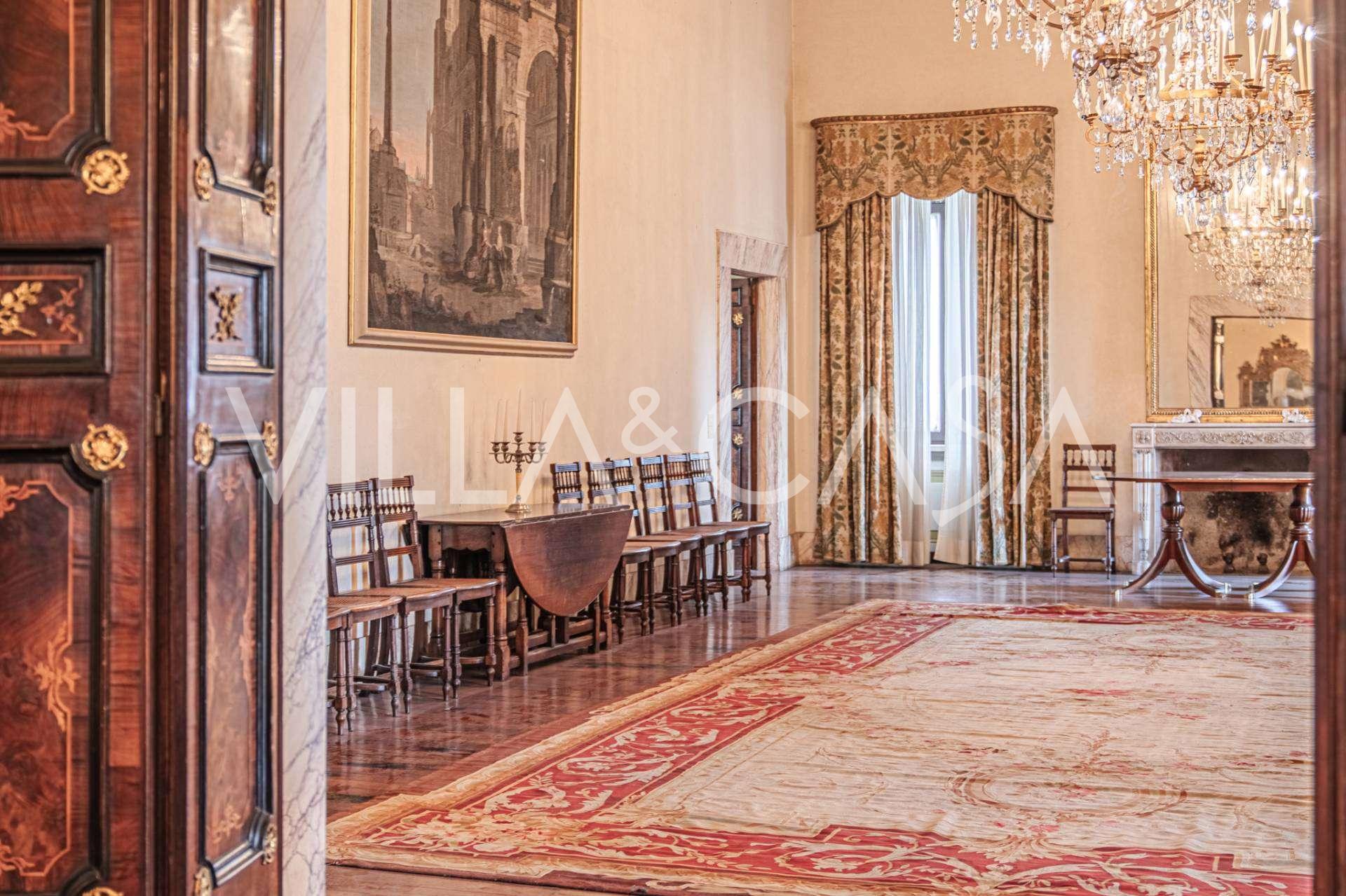 I første etasje finnes romslige salonger for mottakelser, et kontor, et soverom, tre bad, en utsøkt spisestue og et stort kjøkken som fortsetter til det nedre nivået, hvor det er en bankettsal, ideell for seremonielle arrangementer.