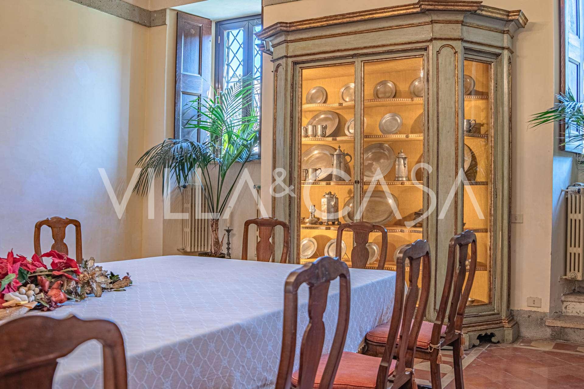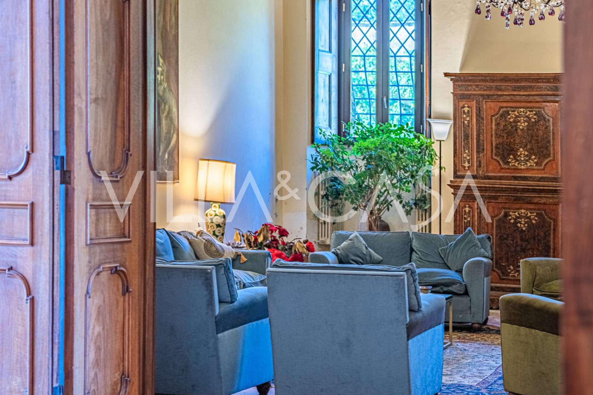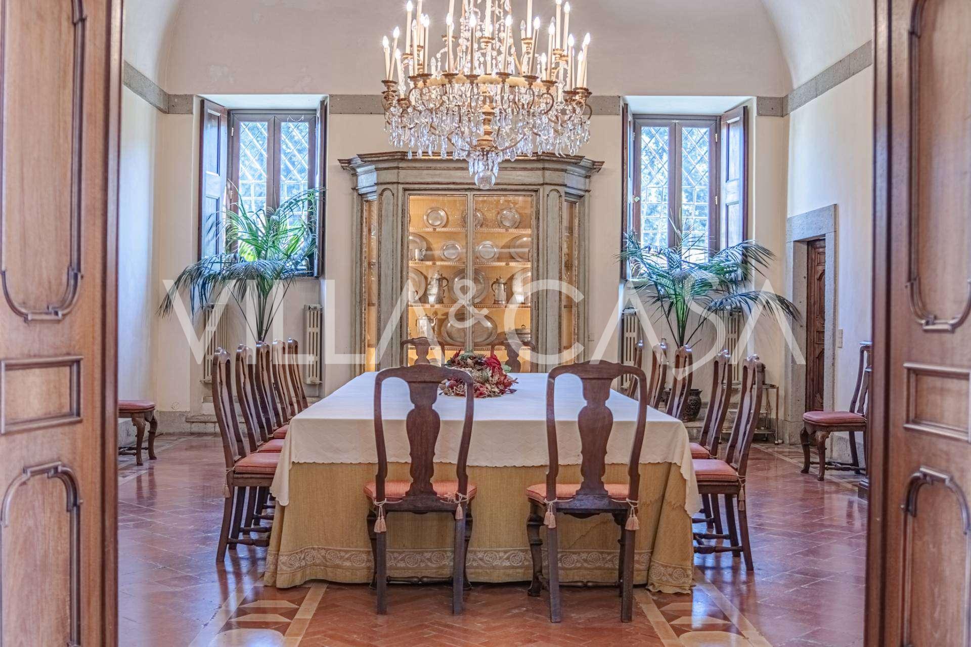 I første etasje finnes romslige salonger for mottakelser, et kontor, et soverom, tre bad, en utsøkt spisestue og et stort kjøkken som fortsetter til det nedre nivået, hvor det er en bankettsal, ideell for seremonielle arrangementer.