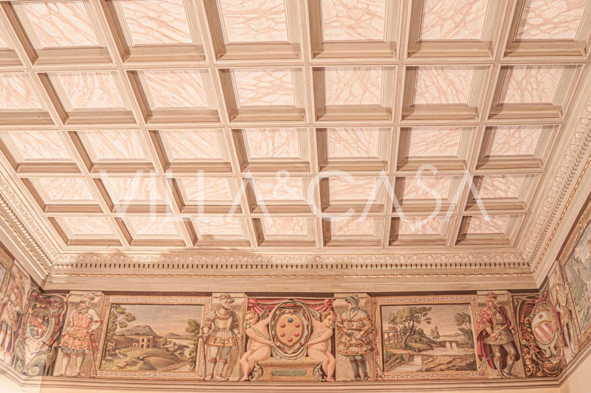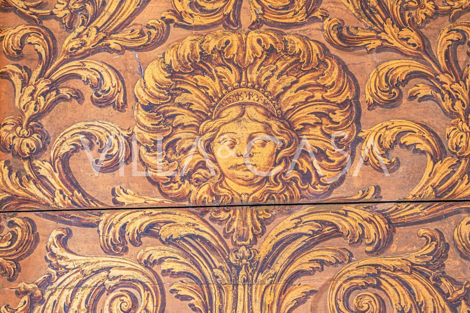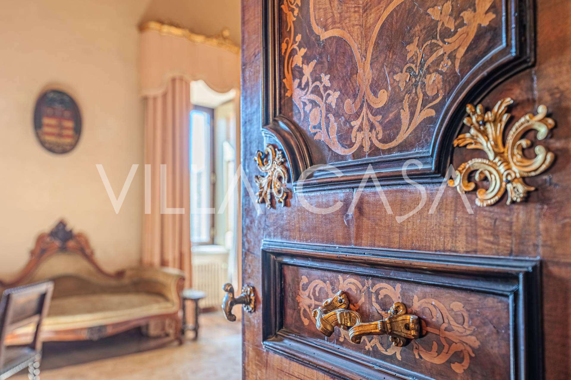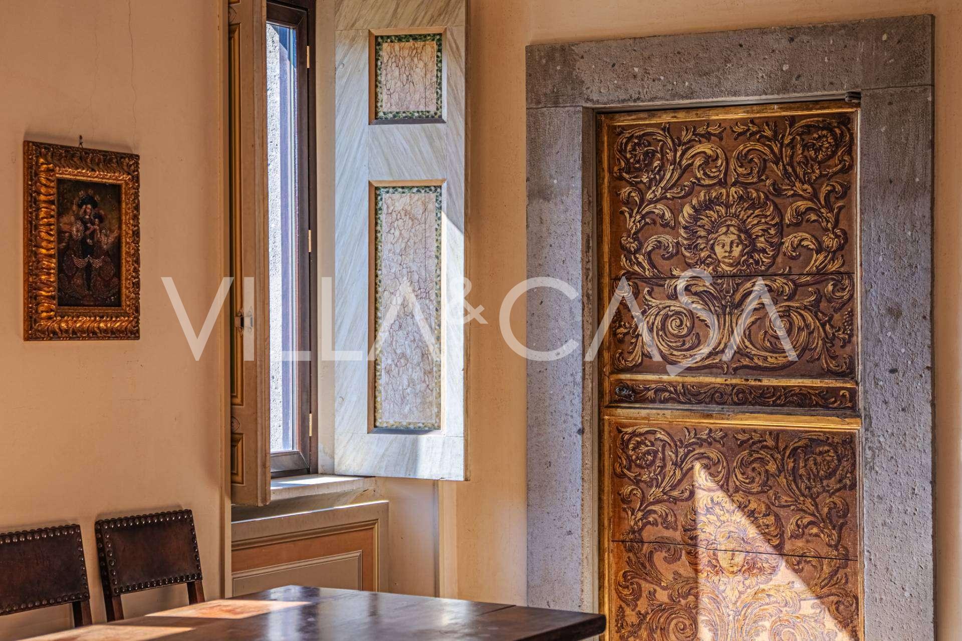 I andre etasje er det to storslåtte salonger med dekorerte tak, to soverom og to bad.