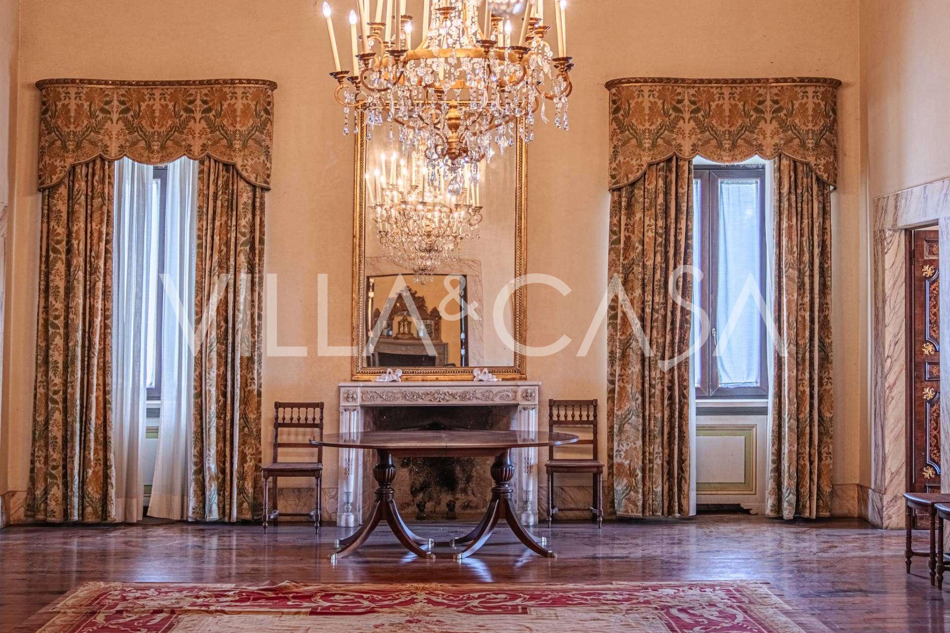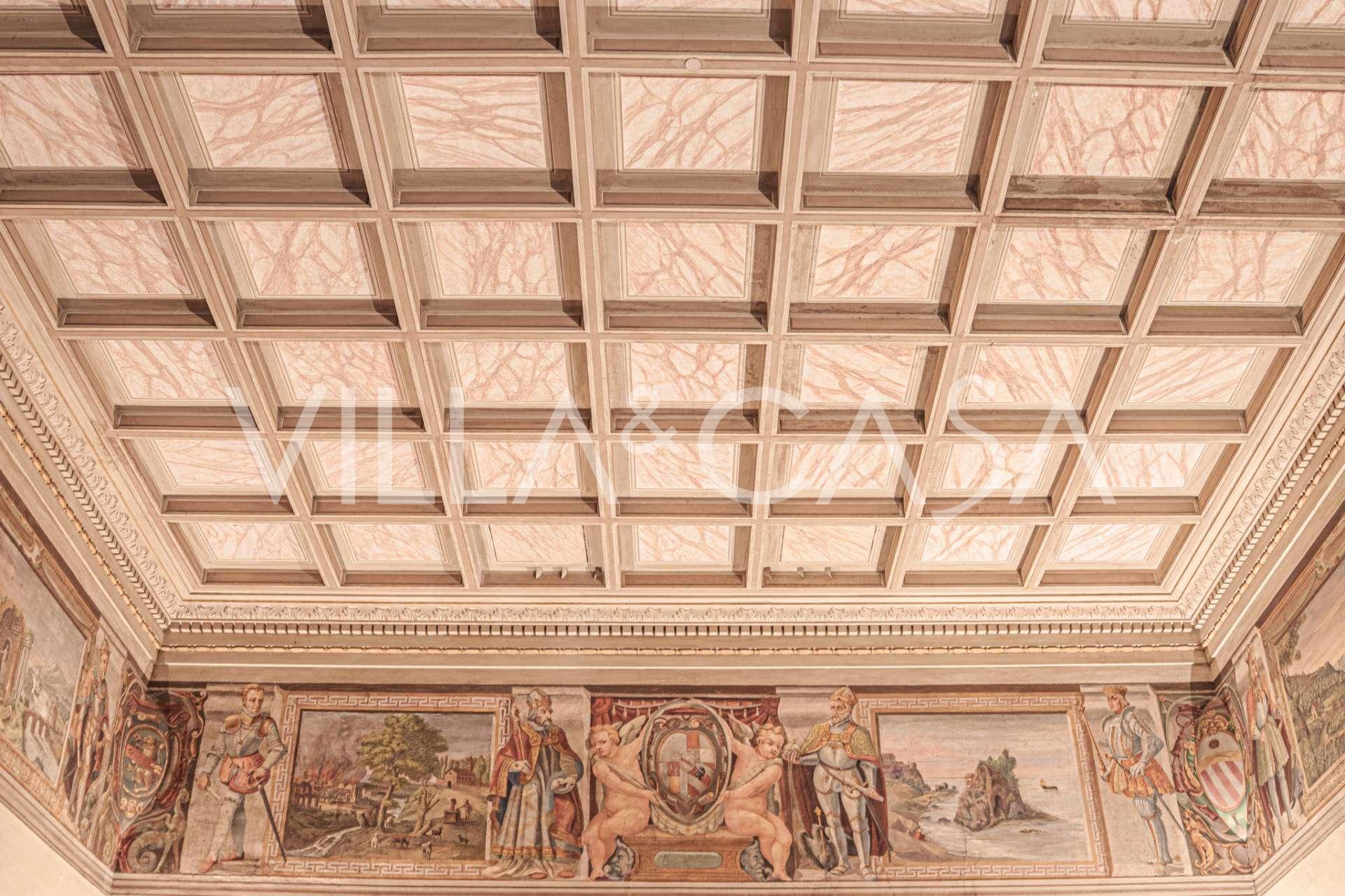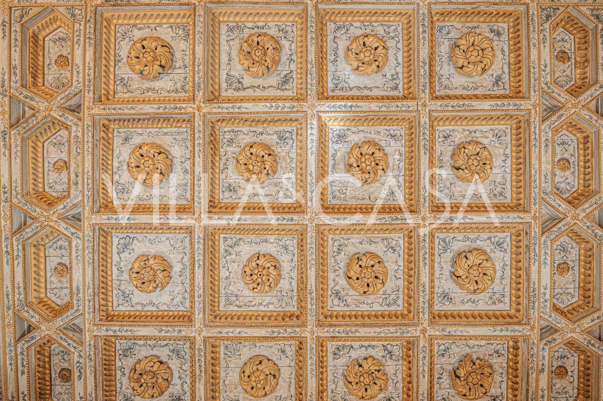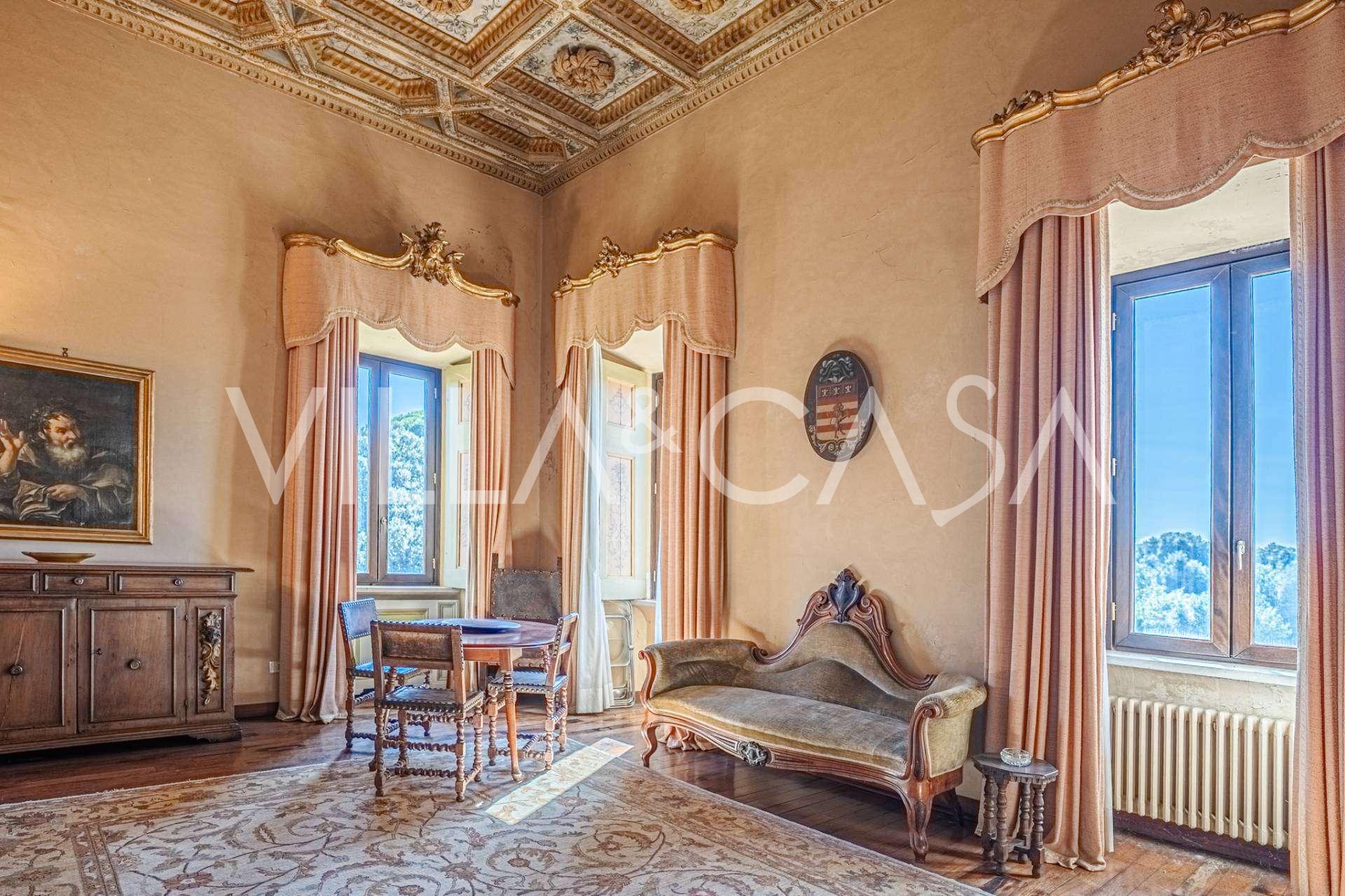 I andre etasje er det to storslåtte salonger med dekorerte tak, to soverom og to bad.
