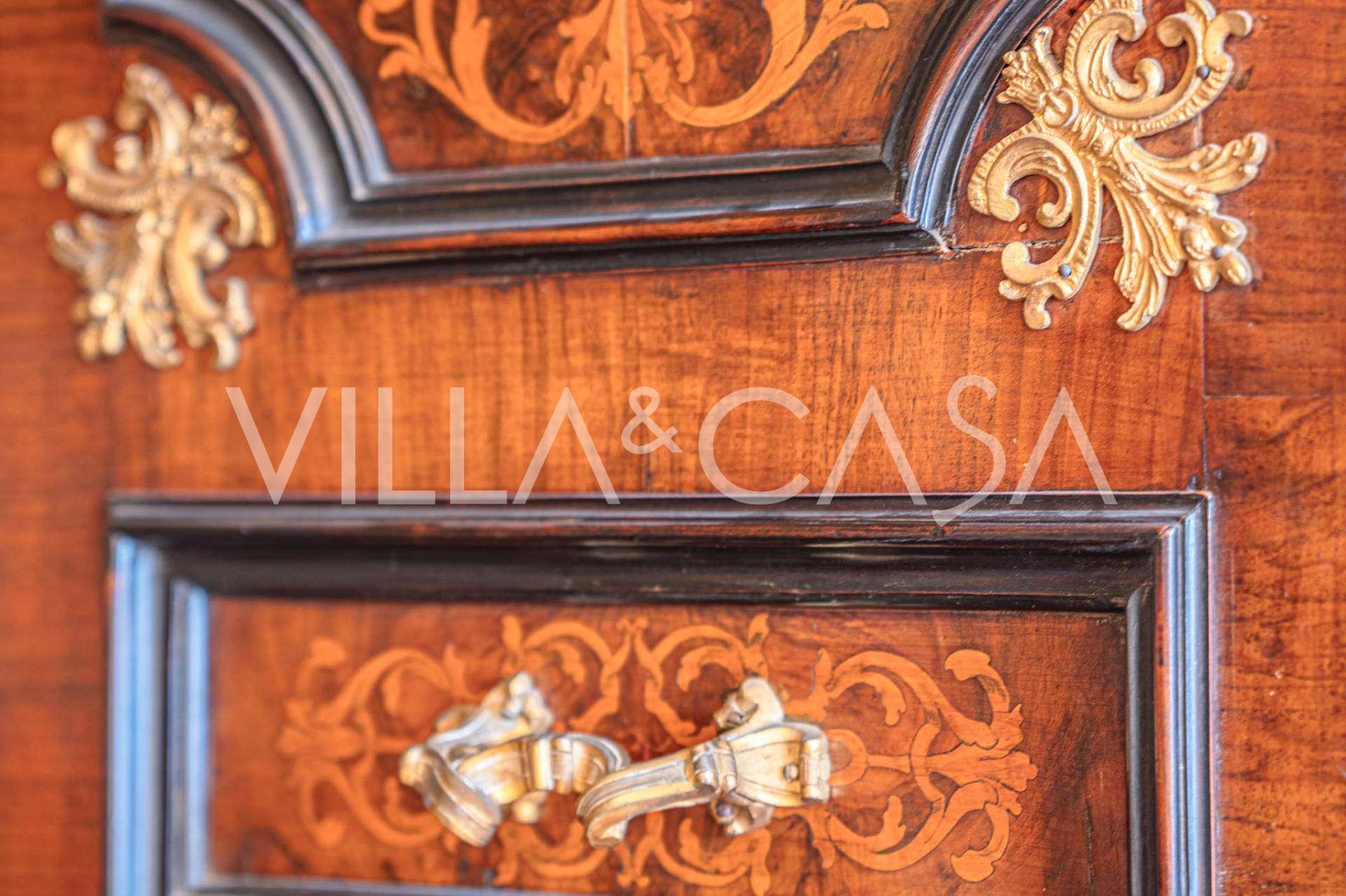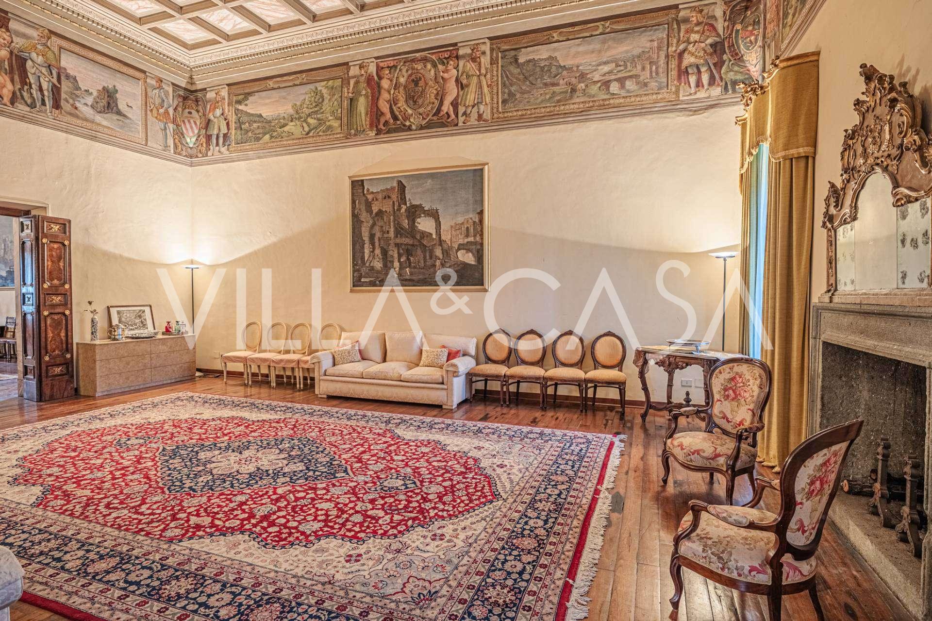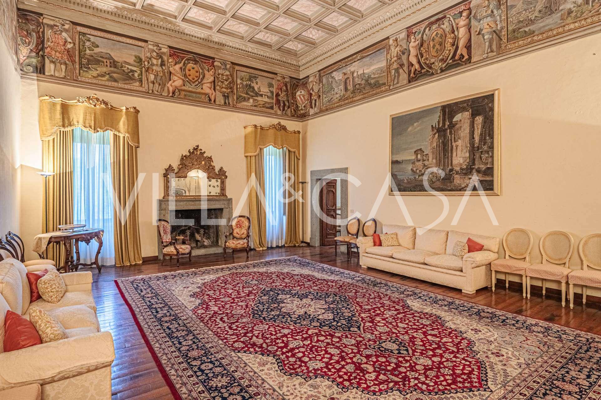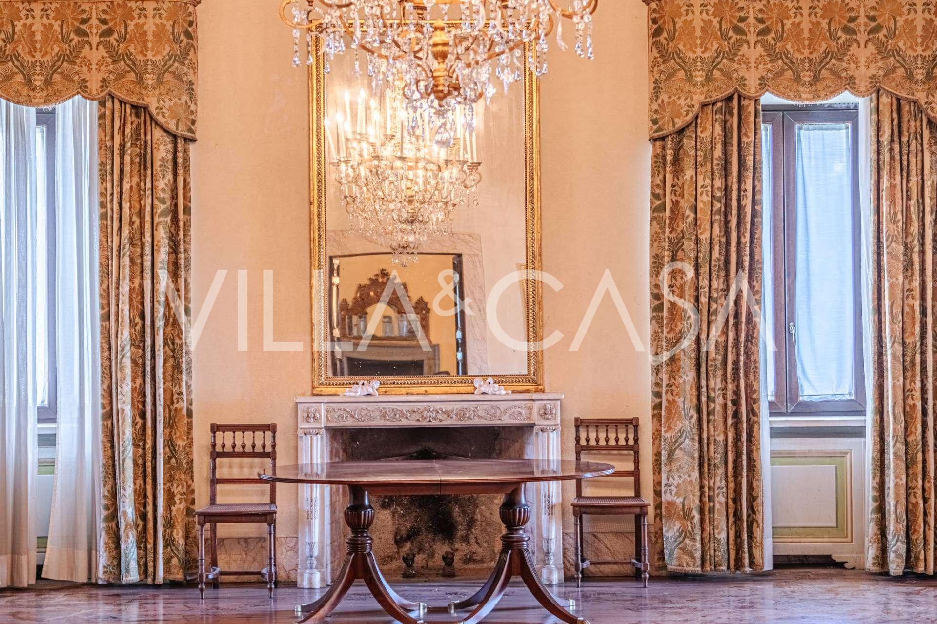 I andre etasje er det to storslåtte salonger med dekorerte tak, to soverom og to bad.