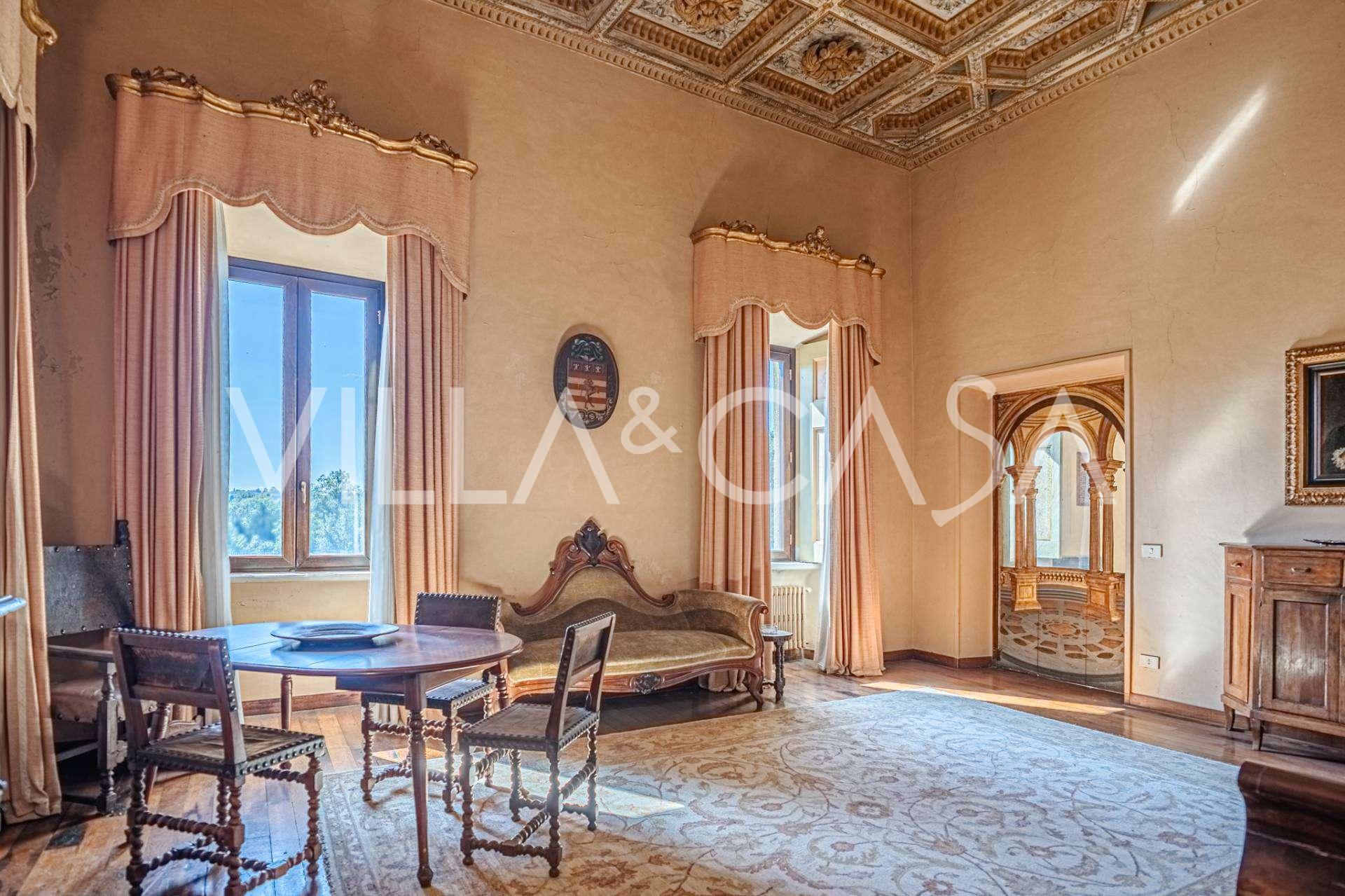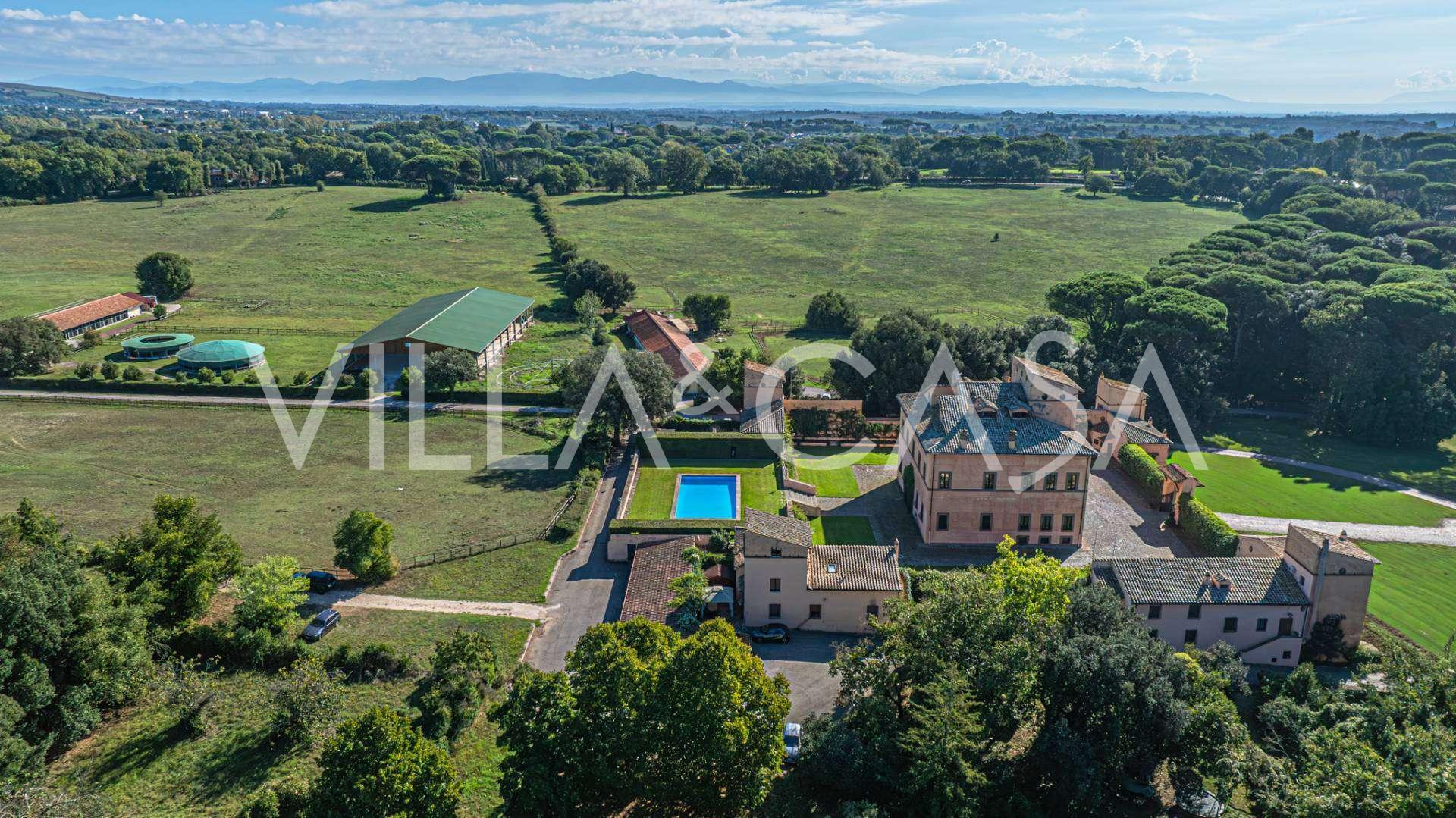 Slottet ligger bare tjue kilometer nord for Roma og er omgitt av tretti hektar velstelte enger og eldgamle skoger, som skaper en atmosfære av total tilbaketrukkethet og harmoni med naturen. Den legendariske veddeløpshesten Ribot ble født her. Ridefasilitetene er utstyrt etter de beste internasjonale standarder: to staller med henholdsvis tjuetre og tjuefem bokser, utstyrt med salrom, pleieområder for hester og komfortable leiligheter for personalet. På området finnes en innendørs ridehall, en innendørs karusell, innendørs manesje og store beiteområder for hesteoppdrett, ideelle for trening og konkurranser. Slottet grenser til en av Europas mest prestisjefylte golfklubber og har sin egen helikopterplass. De gamle etruskiske grottene på eiendommen gir stedet en spesiell sjarm og historisk verdi.