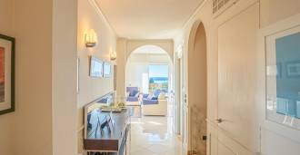 Entré; Stue med havutsikt og utgang til terrasse; Kjøkken med tilgang til terrasse; Tre soverom, hvert med utgang til terrasse; Tre bad; Vaskerom; Terrasse som omgir hele penthousen.