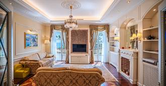 Klimakomfort sikres av moderne klimaanlegg fra Mitsubishi Electric med oppdeling i klimasoner. Sanitærutstyr fra Villeroy & Boch og håndkletørkere fra Margaroli gir baderommene en ekte spa-residens atmosfære. Belysning, elektriske og lydløsninger er implementert med nøye oppmerksomhet på detaljer for maksimal komfort. Gardiner av utvalgte sveitsiske stoffer kompletterer bildet av et elite og fullført rom.
