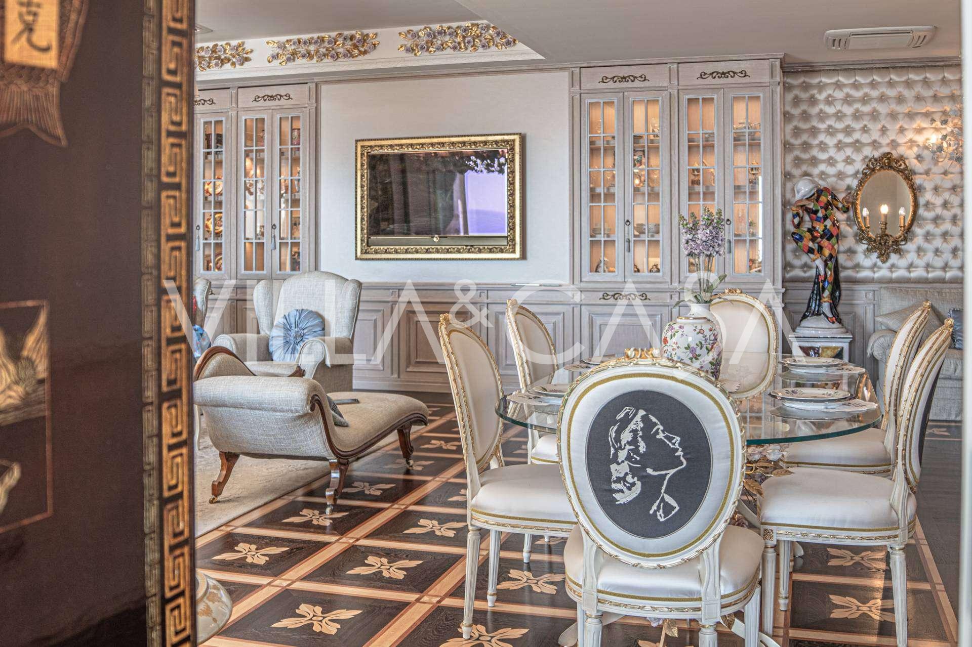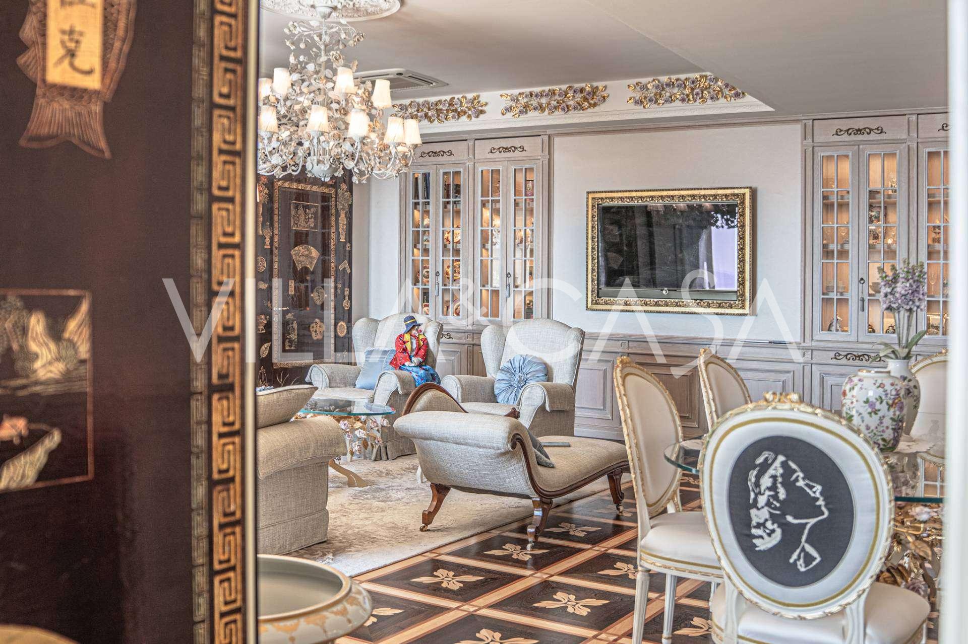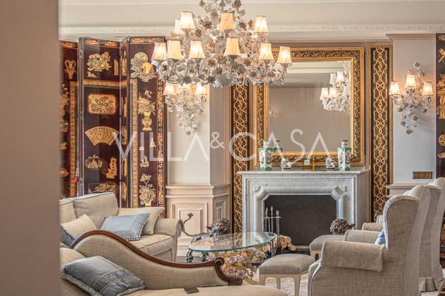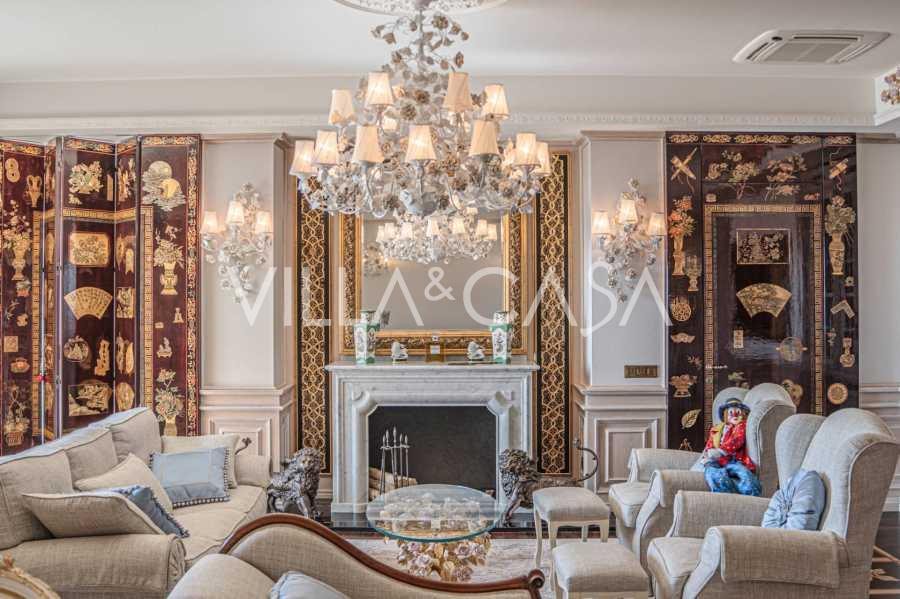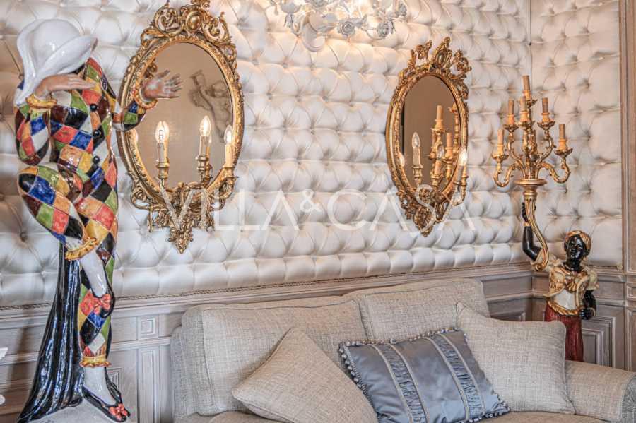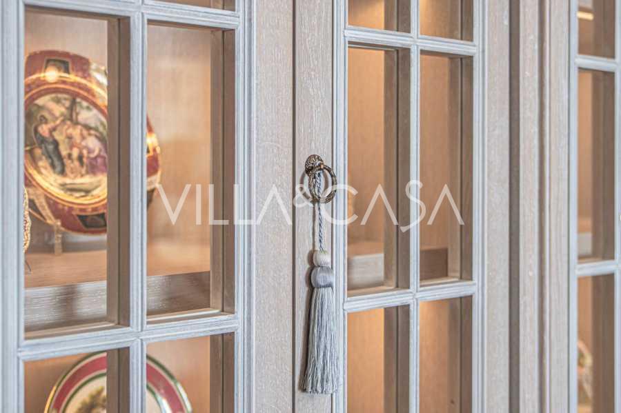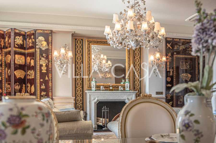 Innredningen er utført med eksepsjonell oppmerksomhet på detaljer: parkett i stuen, varm parkett i soverommene, prestisjefylt keramikk på badene, lakkerte treluker og vinduer med dobbeltglass, lysekroner og lamper fra Villari, garderober fra Franco Martinello, dører fra et kunstverksted i Paris, silketapet, silketepper i salongen og soverommet som sikrer stillhet og komfort. Moderne oppvarmings- og klimaanleggssystemer garanterer komfort til enhver årstid.