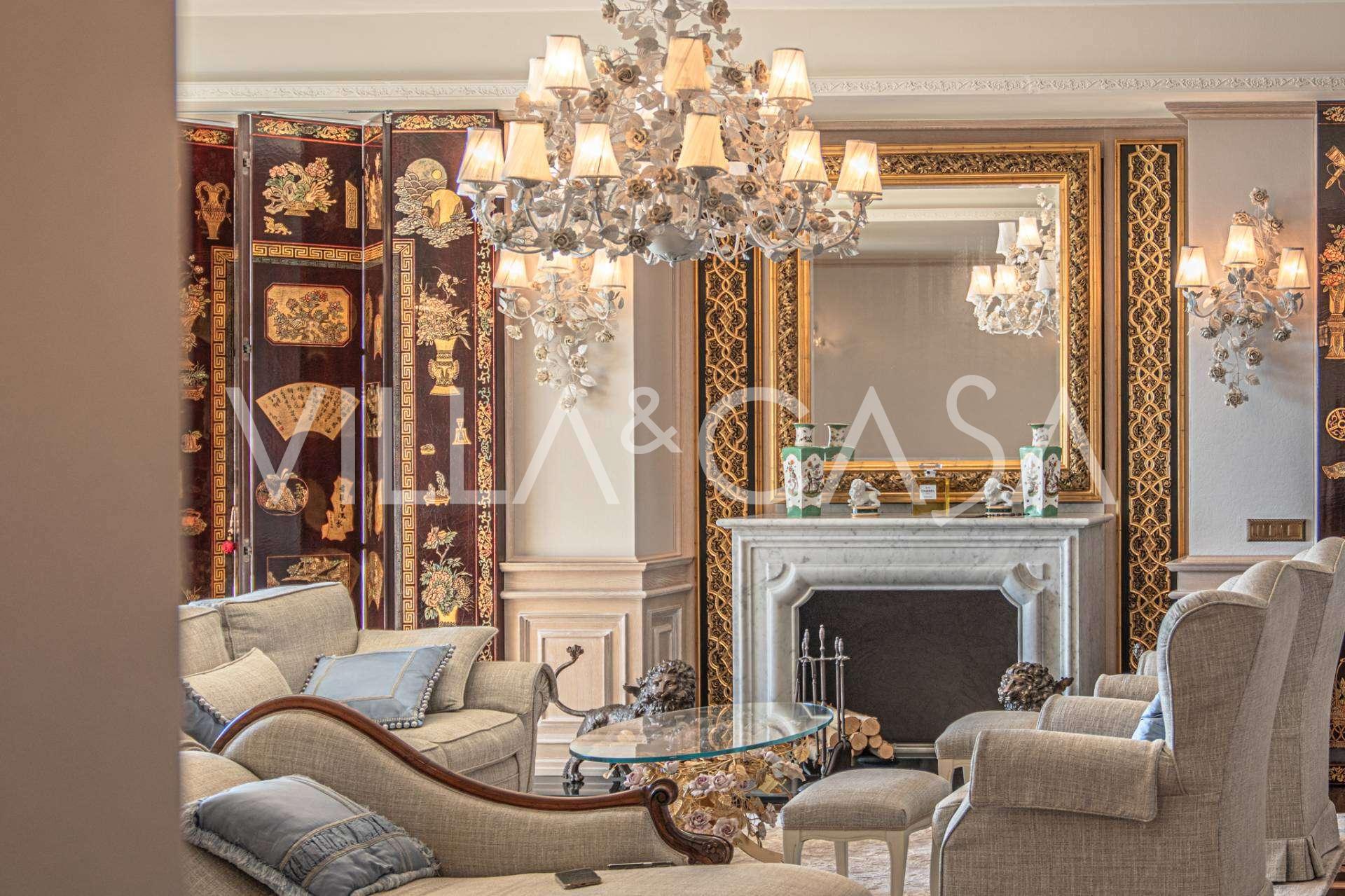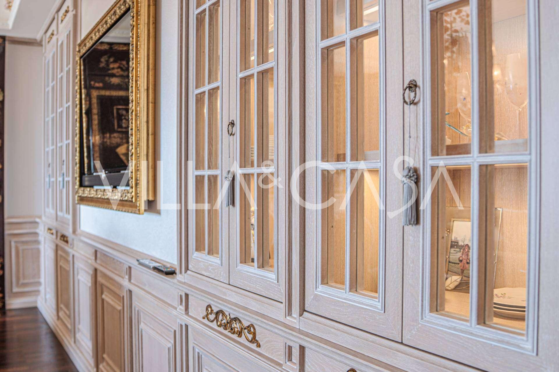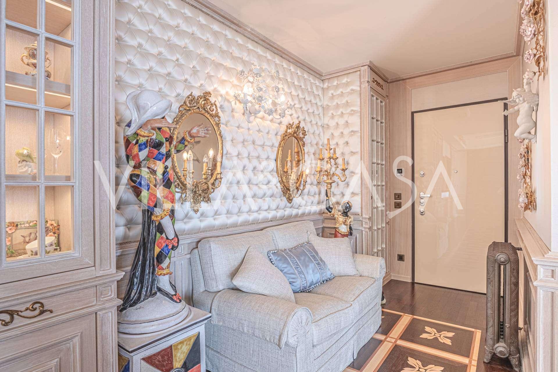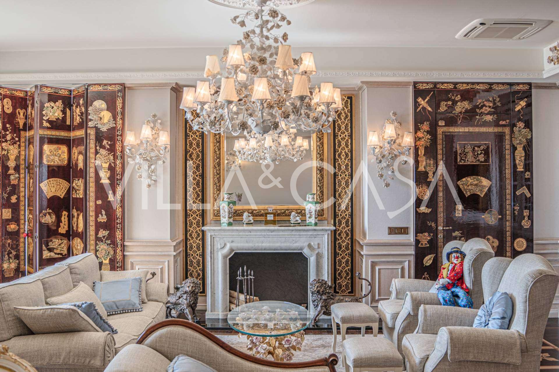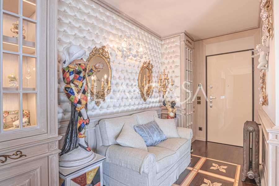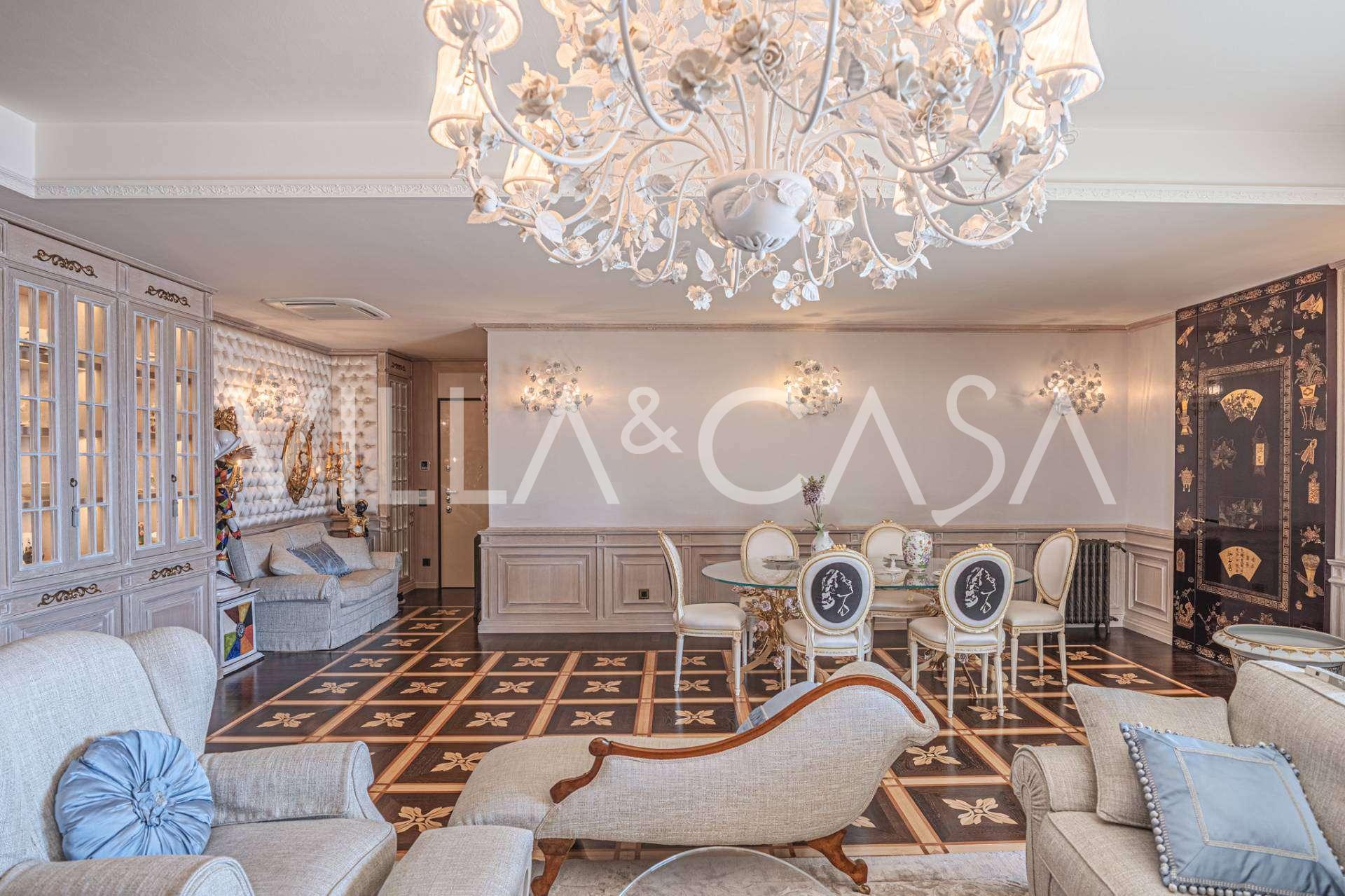 Innredningen er utført med eksepsjonell oppmerksomhet på detaljer: parkett i stuen, varm parkett i soverommene, prestisjefylt keramikk på badene, lakkerte treluker og vinduer med dobbeltglass, lysekroner og lamper fra Villari, garderober fra Franco Martinello, dører fra et kunstverksted i Paris, silketapet, silketepper i salongen og soverommet som sikrer stillhet og komfort. Moderne oppvarmings- og klimaanleggssystemer garanterer komfort til enhver årstid.