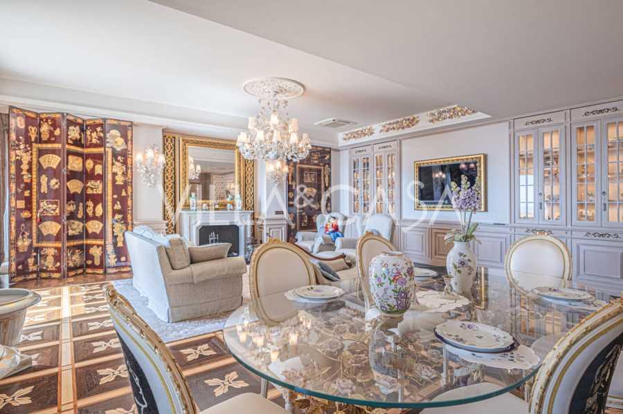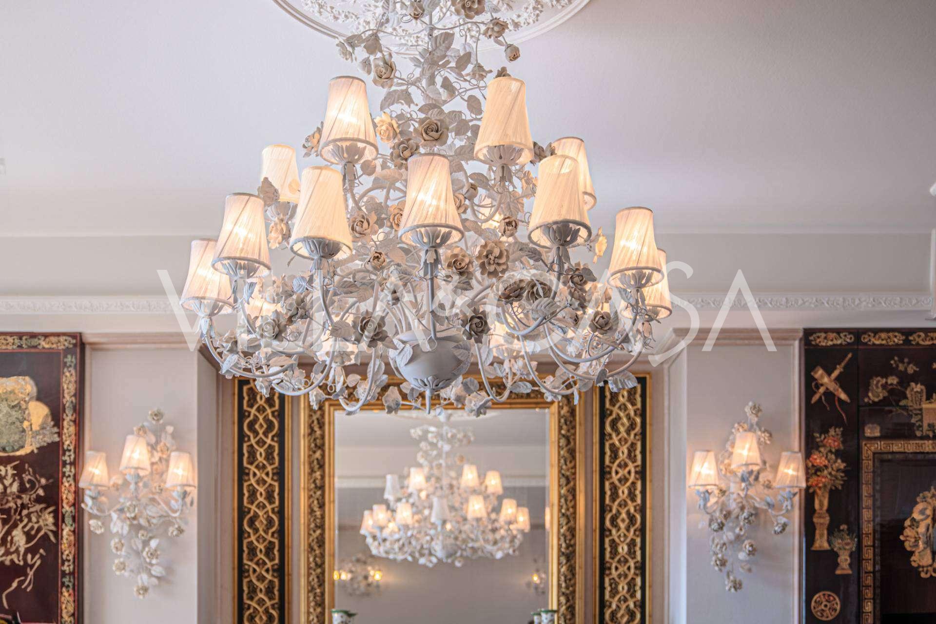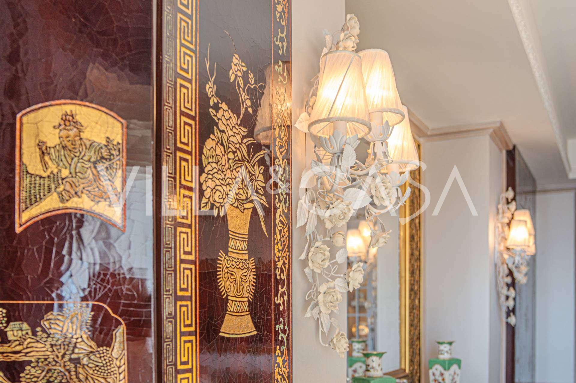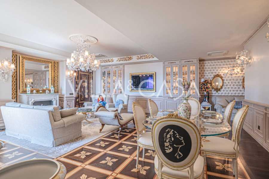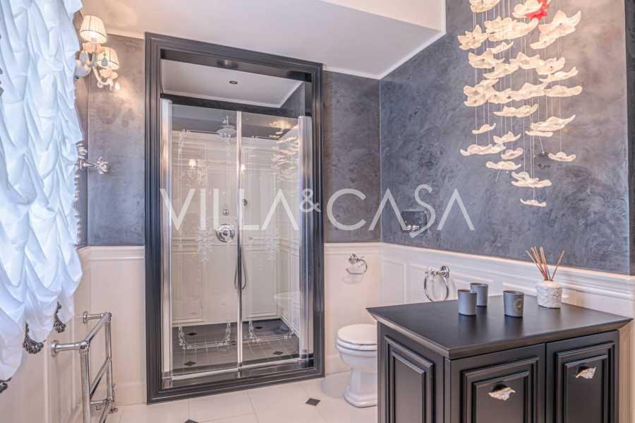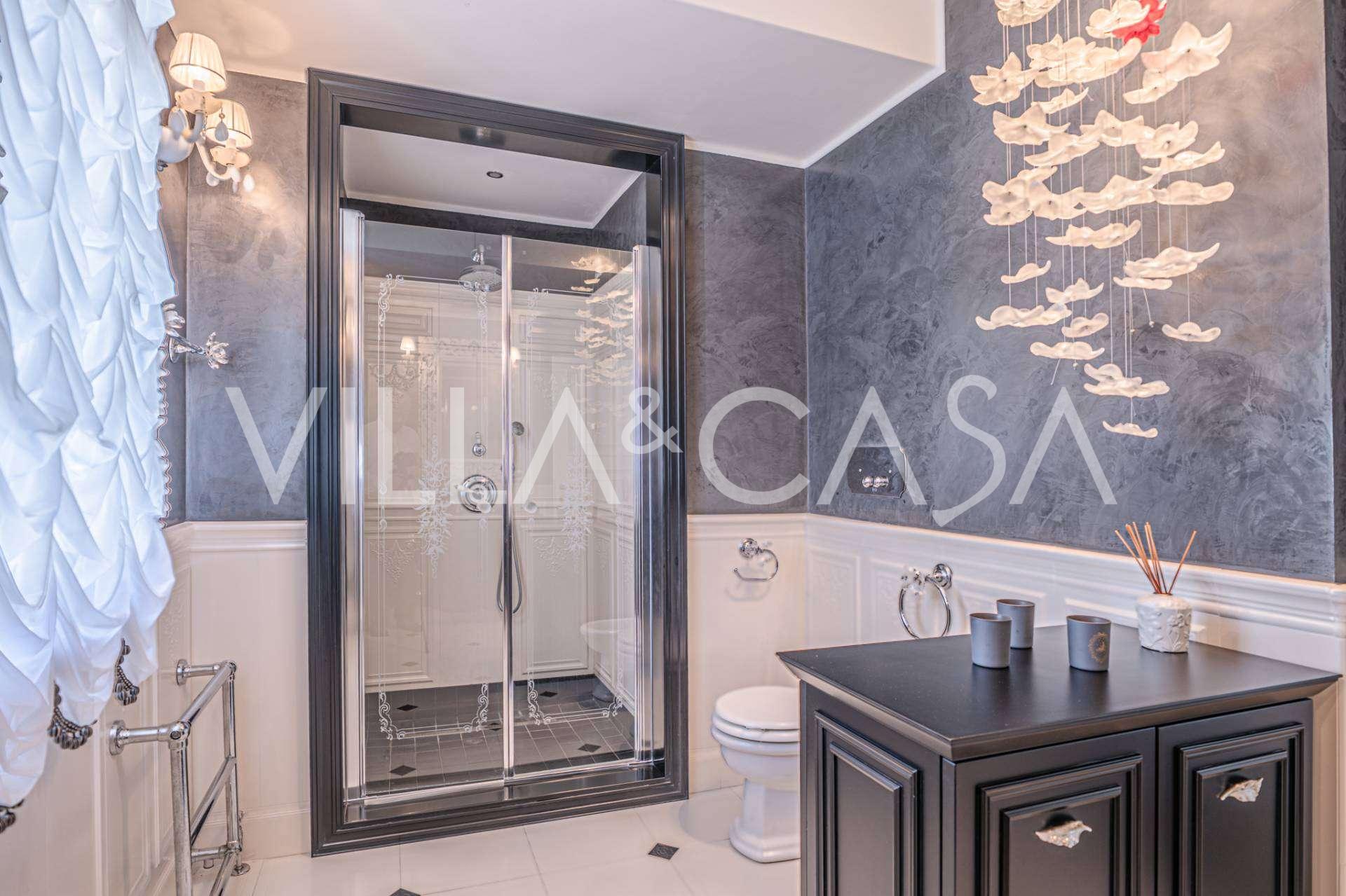 Innredningen er utført med eksepsjonell oppmerksomhet på detaljer: parkett i stuen, varm parkett i soverommene, prestisjefylt keramikk på badene, lakkerte treluker og vinduer med dobbeltglass, lysekroner og lamper fra Villari, garderober fra Franco Martinello, dører fra et kunstverksted i Paris, silketapet, silketepper i salongen og soverommet som sikrer stillhet og komfort. Moderne oppvarmings- og klimaanleggssystemer garanterer komfort til enhver årstid.