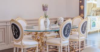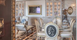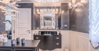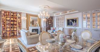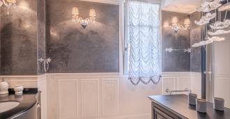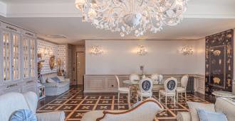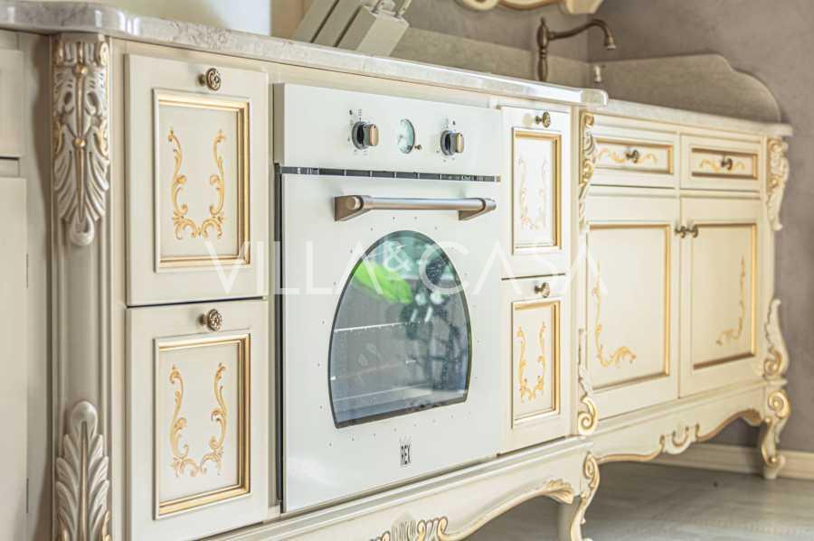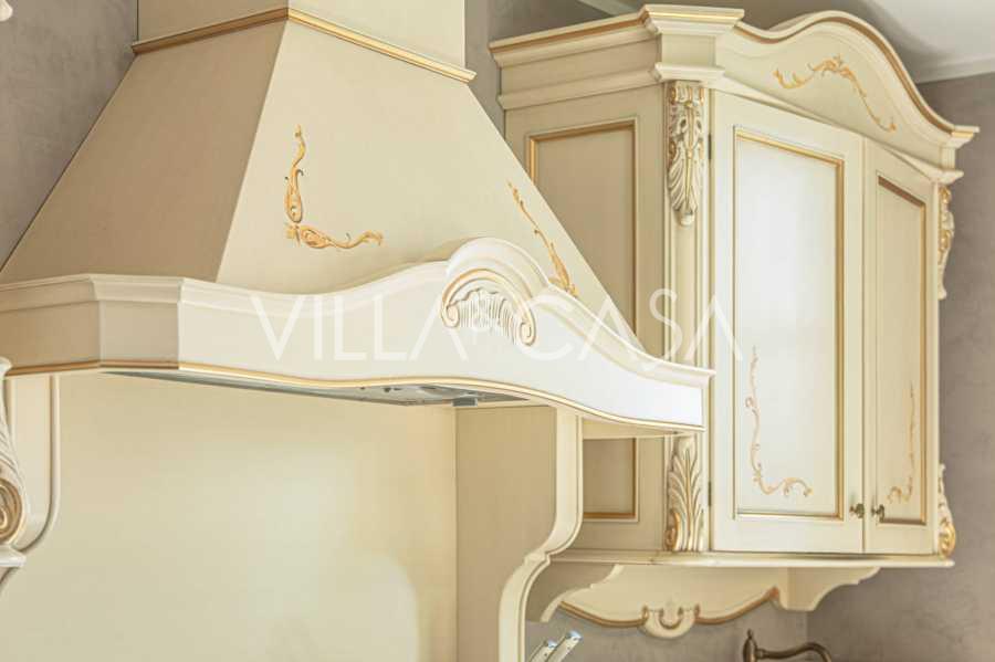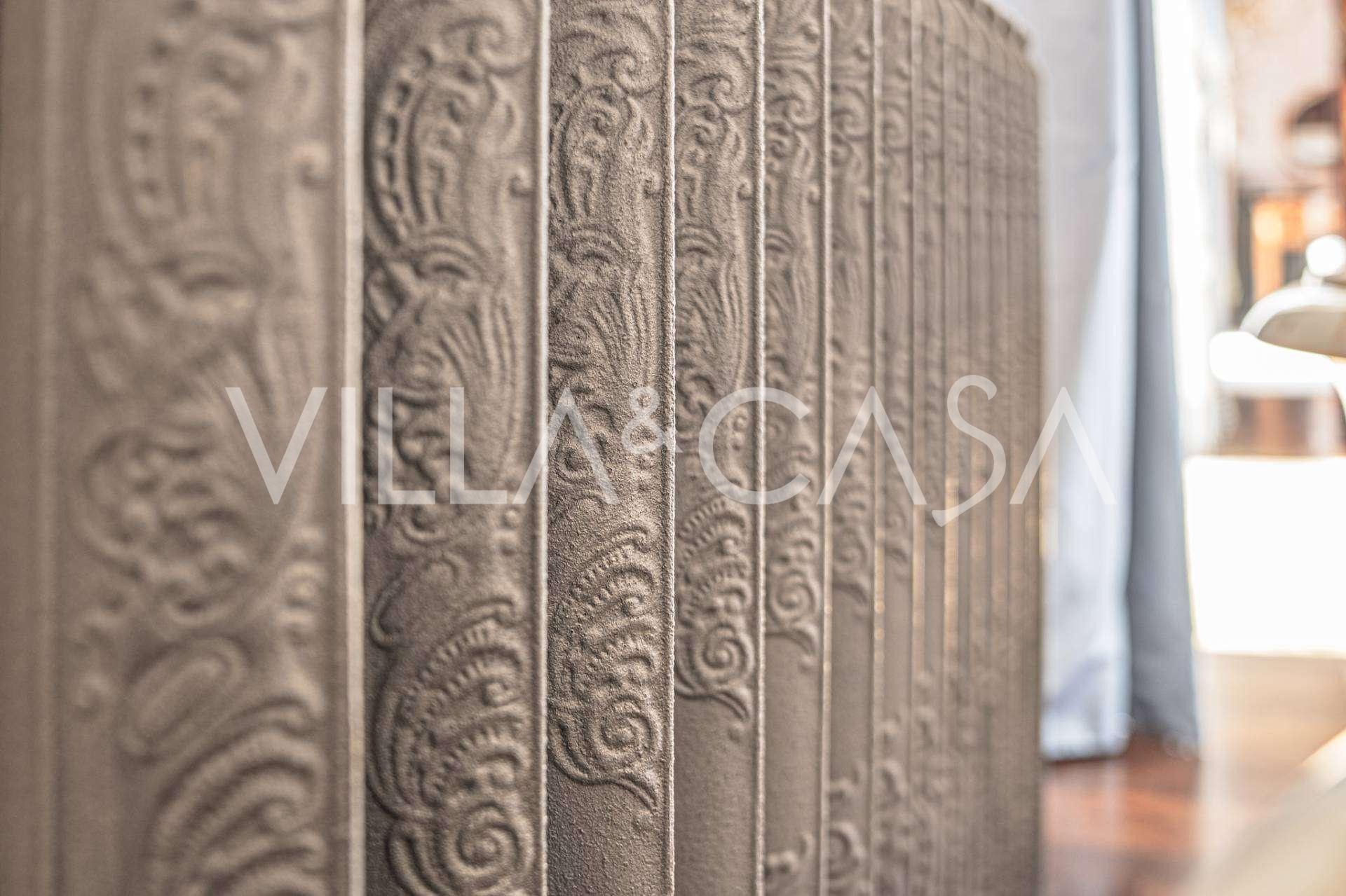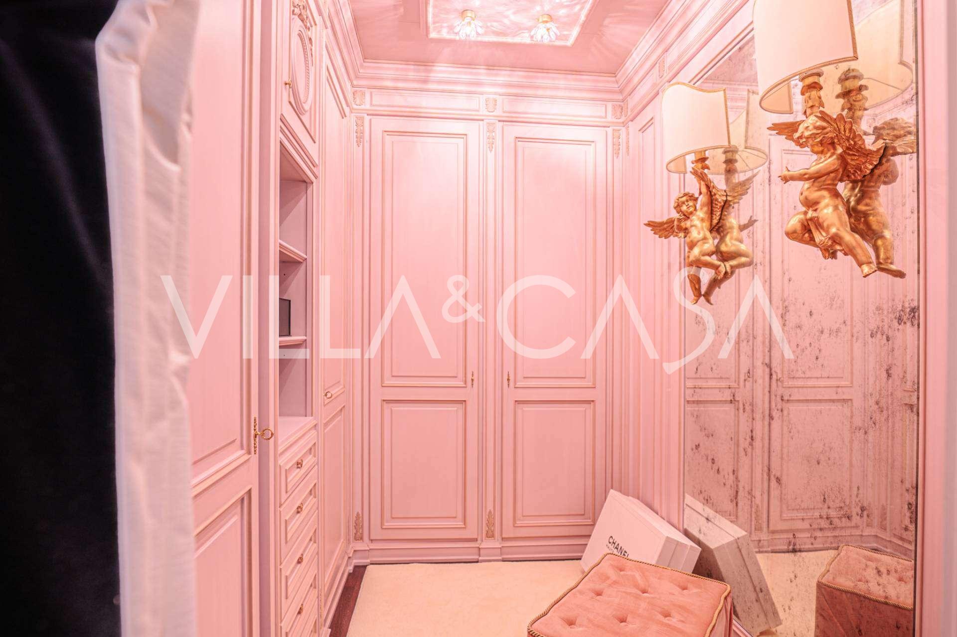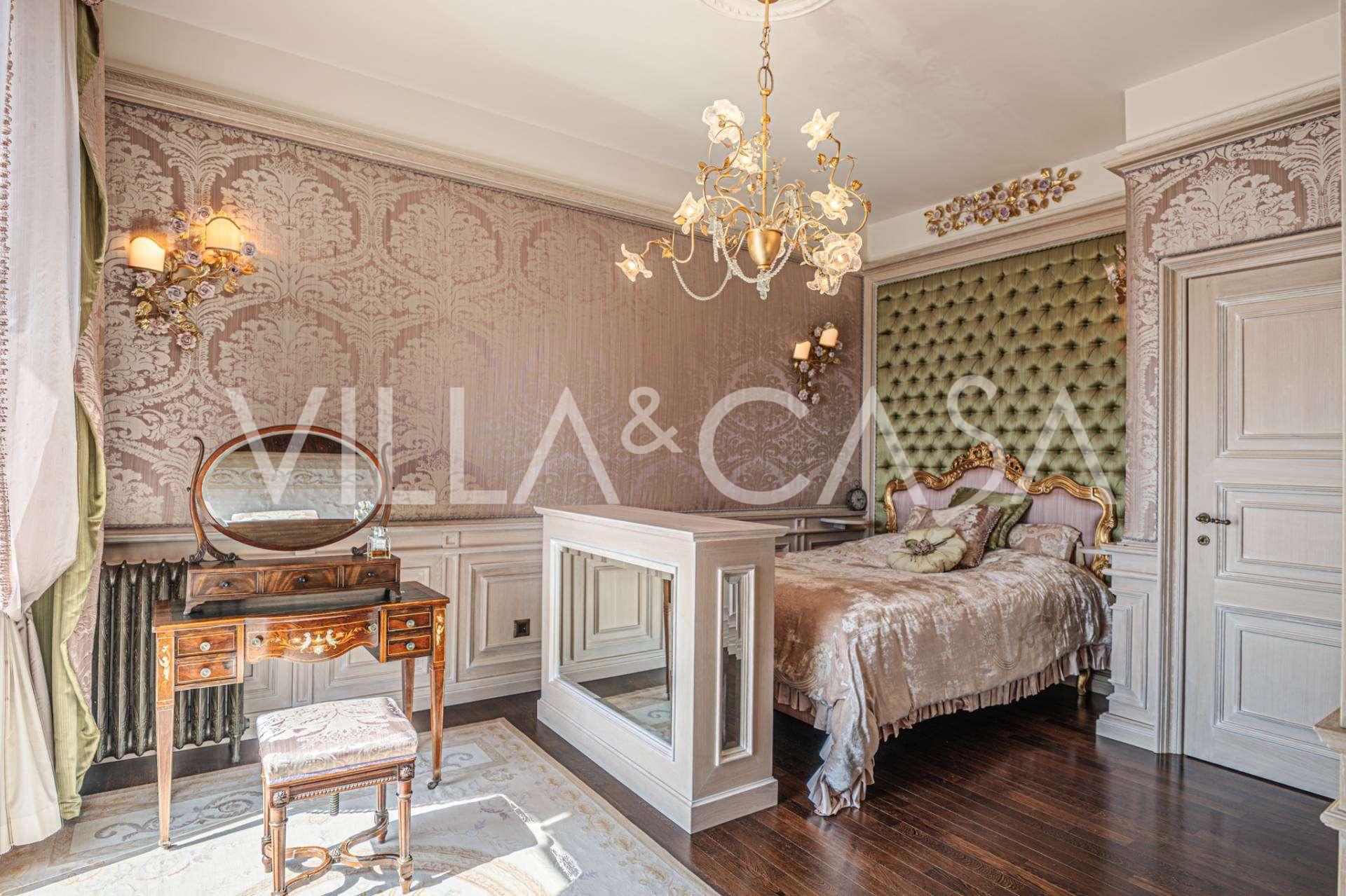 Innredningen er utført med eksepsjonell oppmerksomhet på detaljer: parkett i stuen, varm parkett i soverommene, prestisjefylt keramikk på badene, lakkerte treluker og vinduer med dobbeltglass, lysekroner og lamper fra Villari, garderober fra Franco Martinello, dører fra et kunstverksted i Paris, silketapet, silketepper i salongen og soverommet som sikrer stillhet og komfort. Moderne oppvarmings- og klimaanleggssystemer garanterer komfort til enhver årstid.