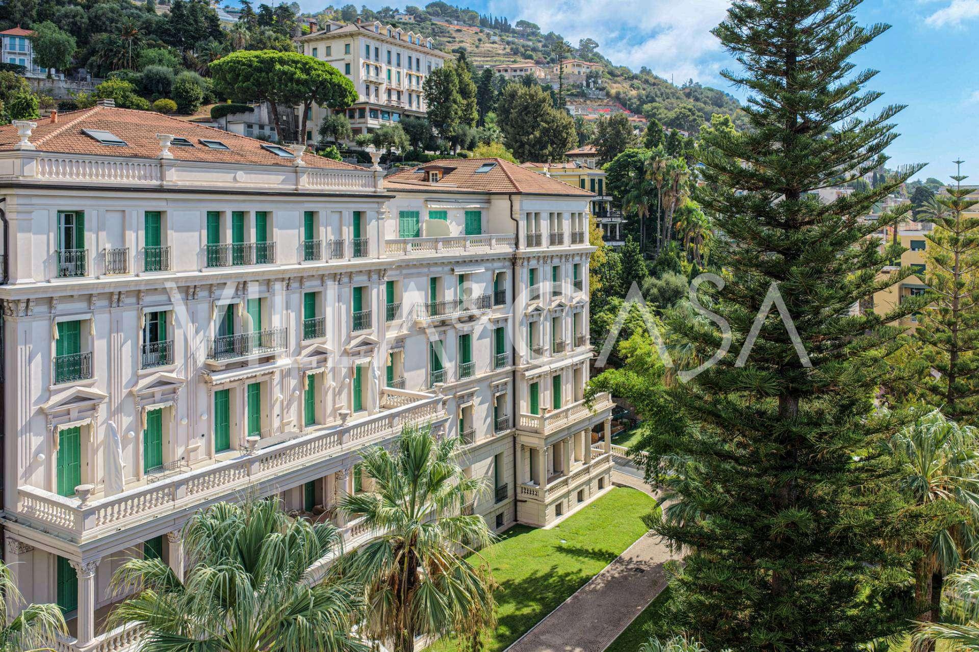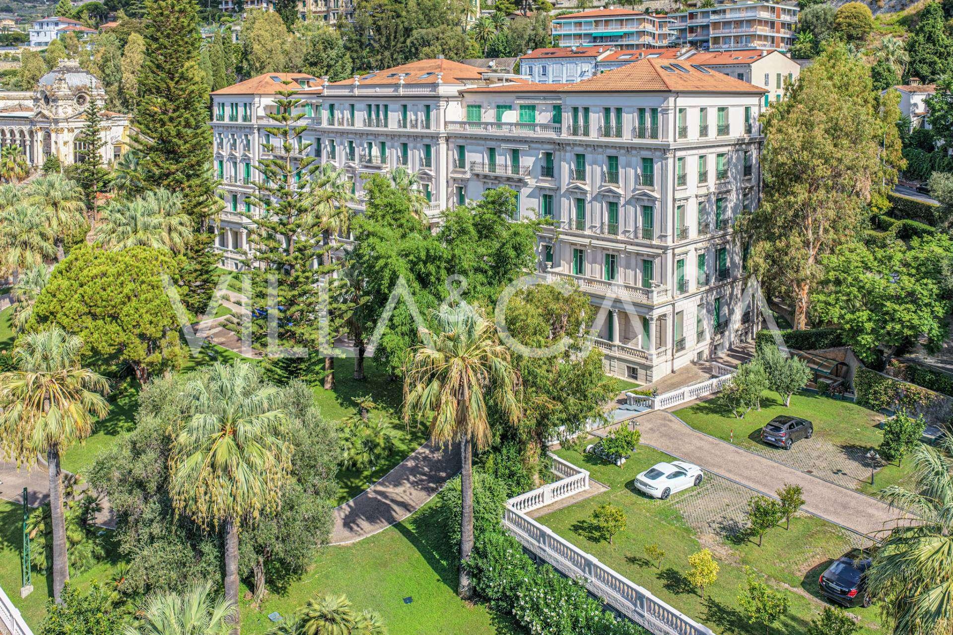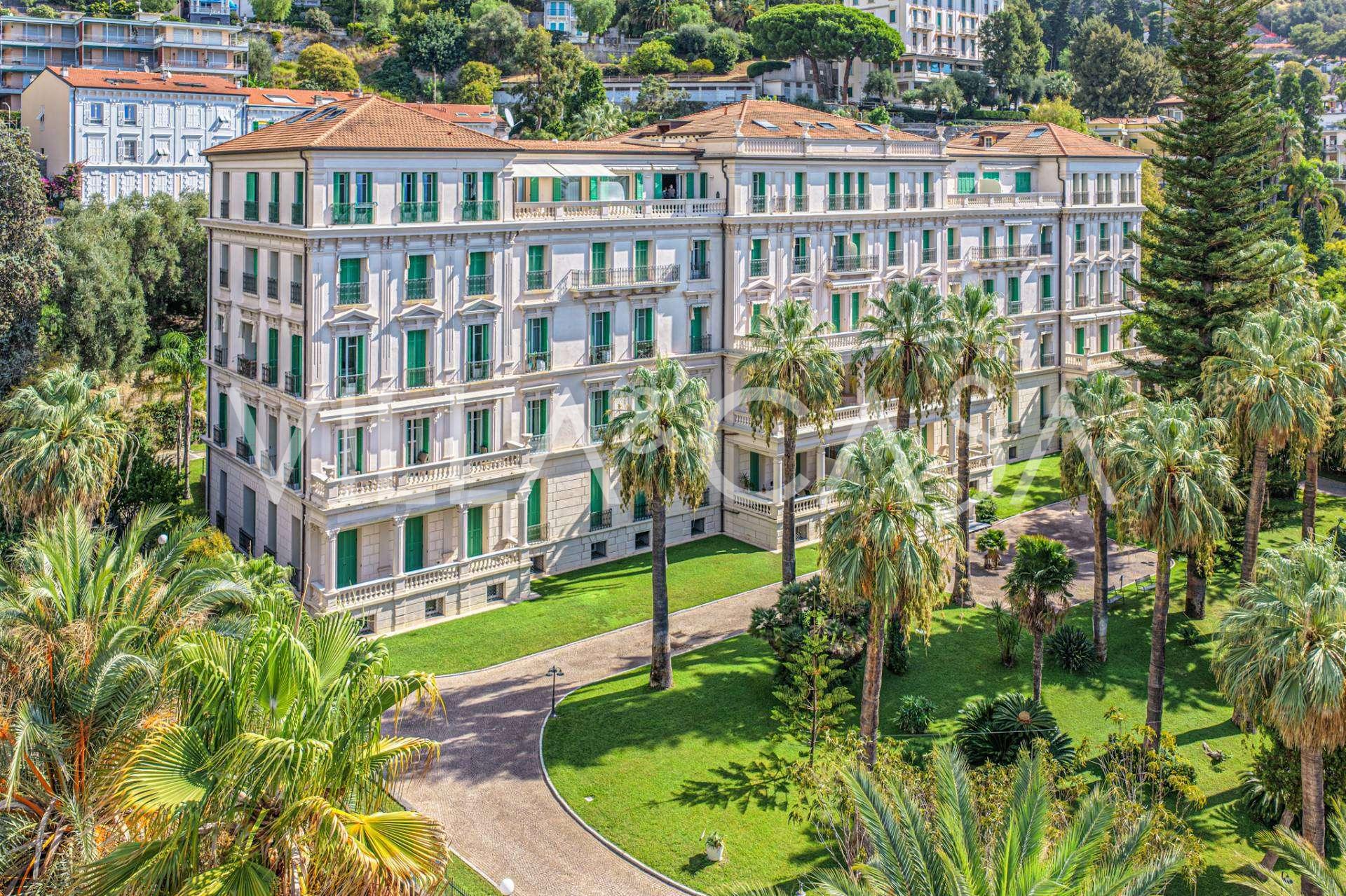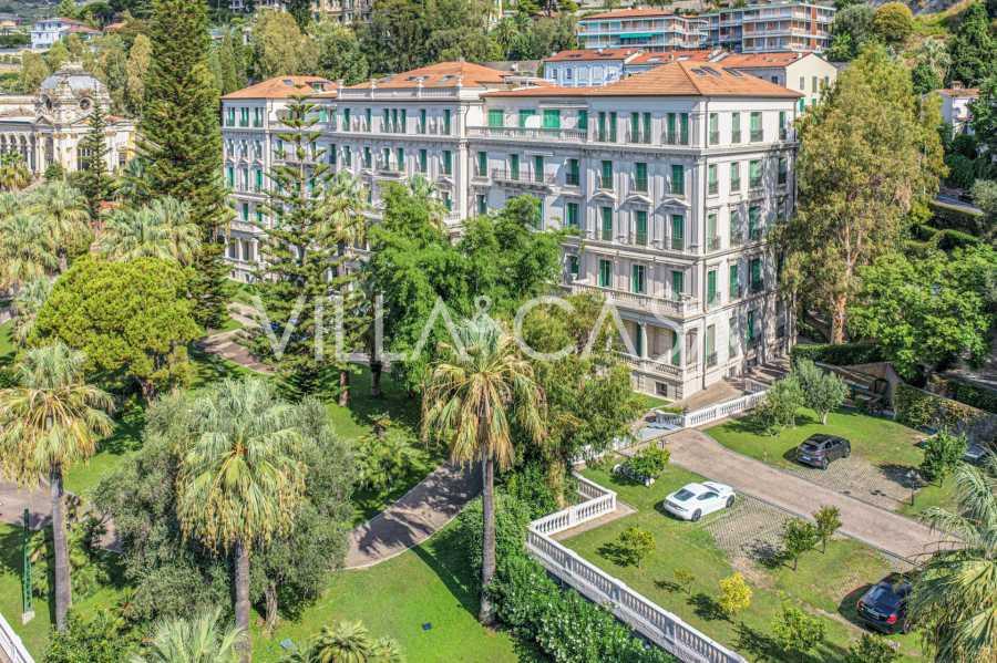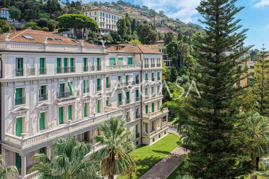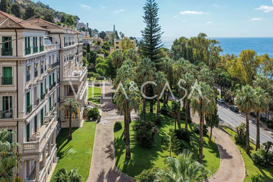 I hjertet av sjarmerende Ospedaletti, i det kjente boligkomplekset "REGINA", bygget på stedet til det tidligere "Grand Hotel de la Reine" og fullstendig renovert i 2007, tilbys en unik penthouse på 205 m2, som er et symbol på upåklagelig stil og komfort.
