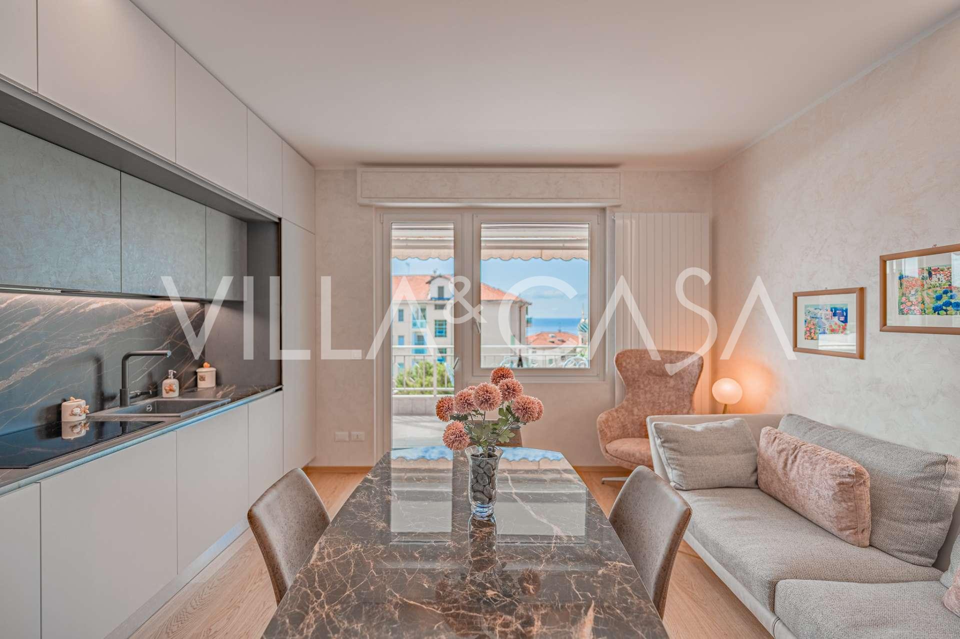 Denne leiligheten er en sjelden mulighet til å anskaffe en eksklusiv eiendom i det mest prestisjefylte området av Sanremo, som kombinerer komfort, stil og havutsikt.