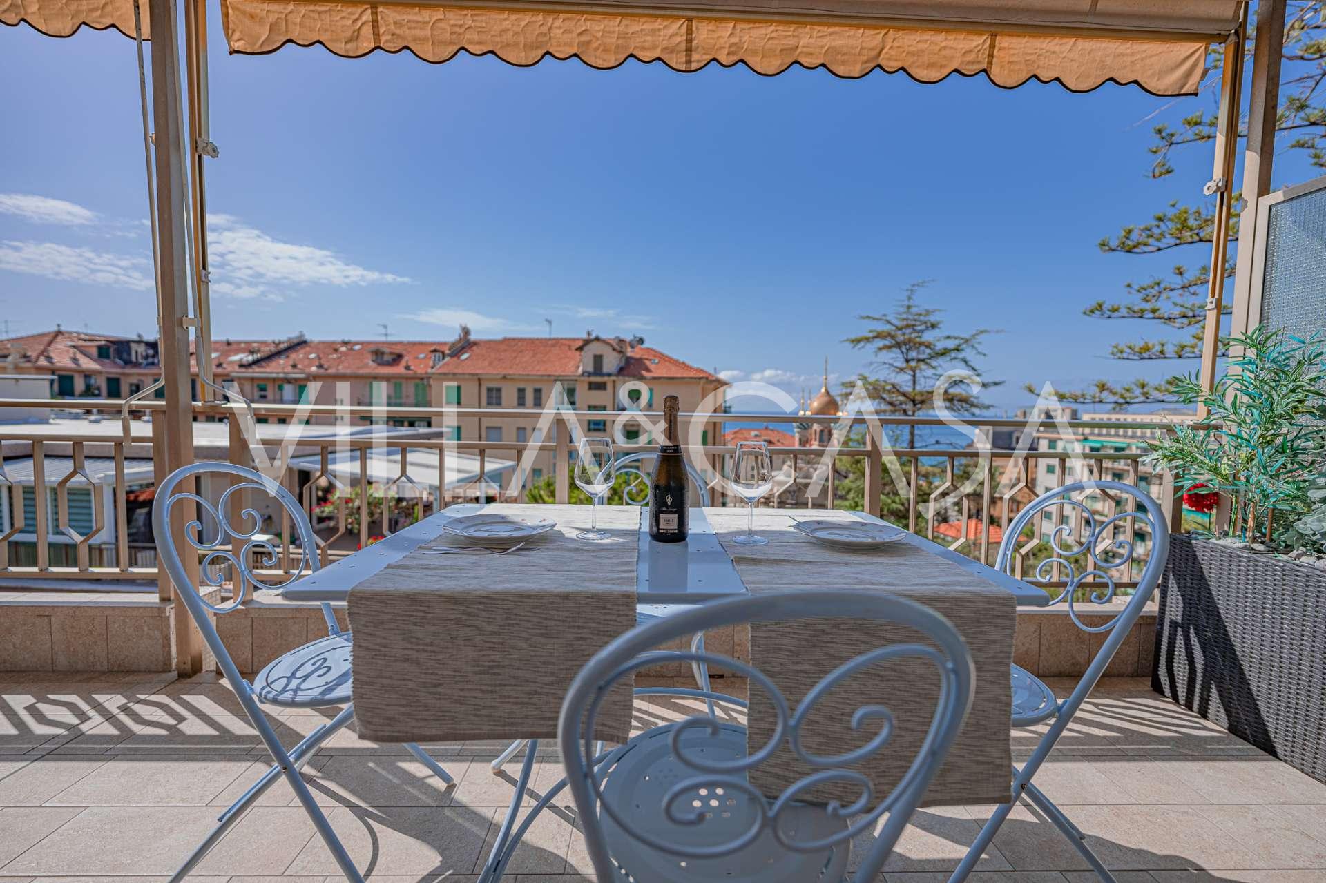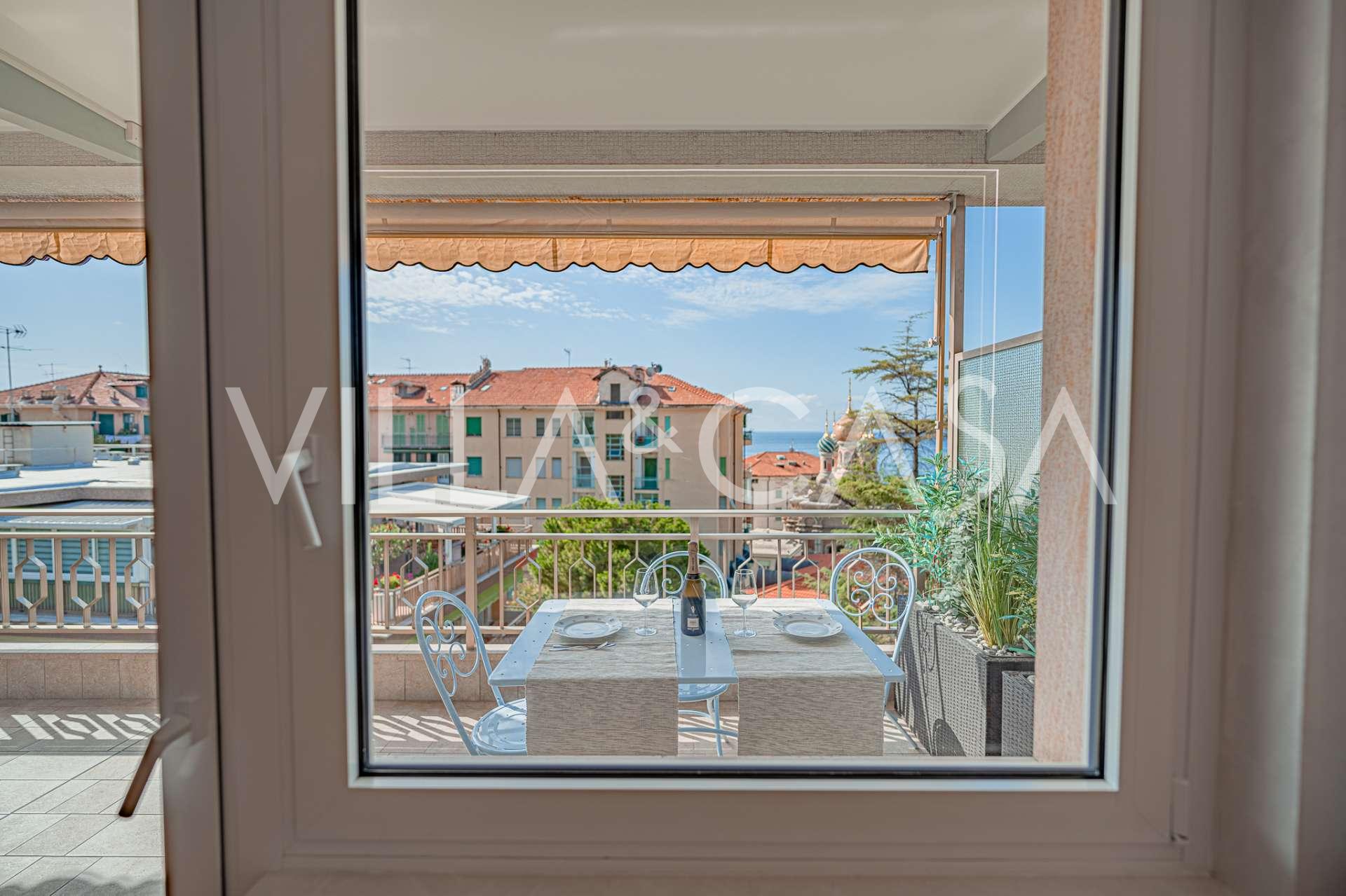 I hjertet av Sanremo, nær den kjente russisk-ortodokse kirken og det eksklusive kasinoet, tilbys en eksklusiv fireroms leilighet på 104 m² med fantastisk havutsikt.