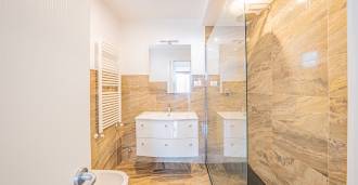 Leiligheten er fullstendig renovert med bruk av kvalitetsmaterialer: elektrisitet og vannforsyning er oppdatert, moderne vinduer og dører er installert. Fasaden og avløpssystemet er nylig totalrenovert, noe som garanterer et langvarig komfortabelt opphold.
