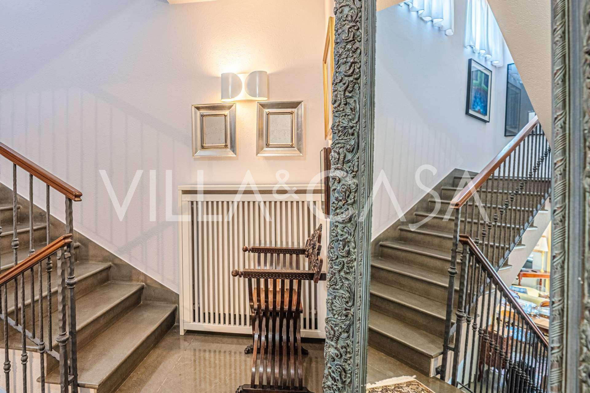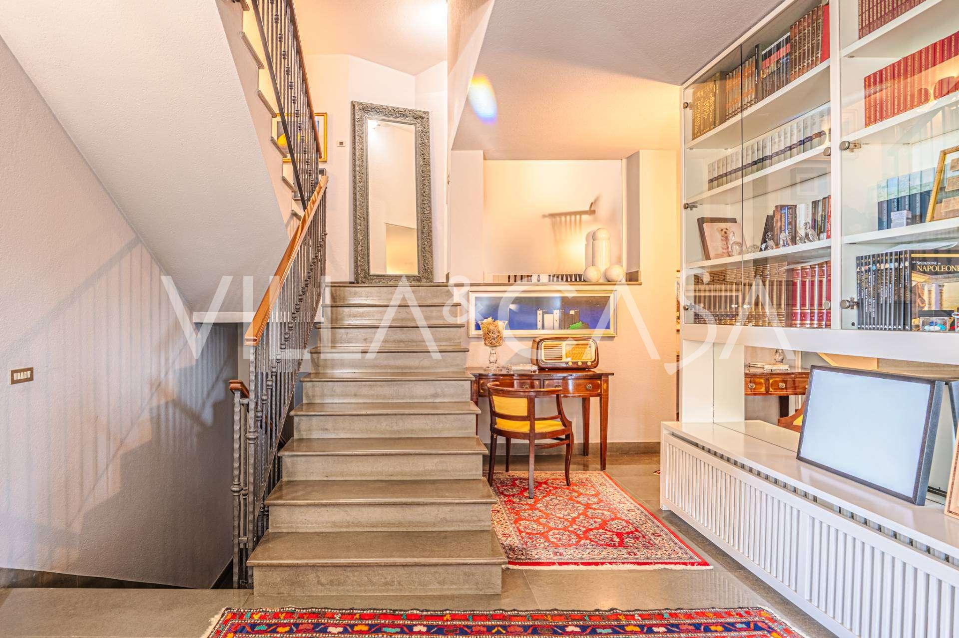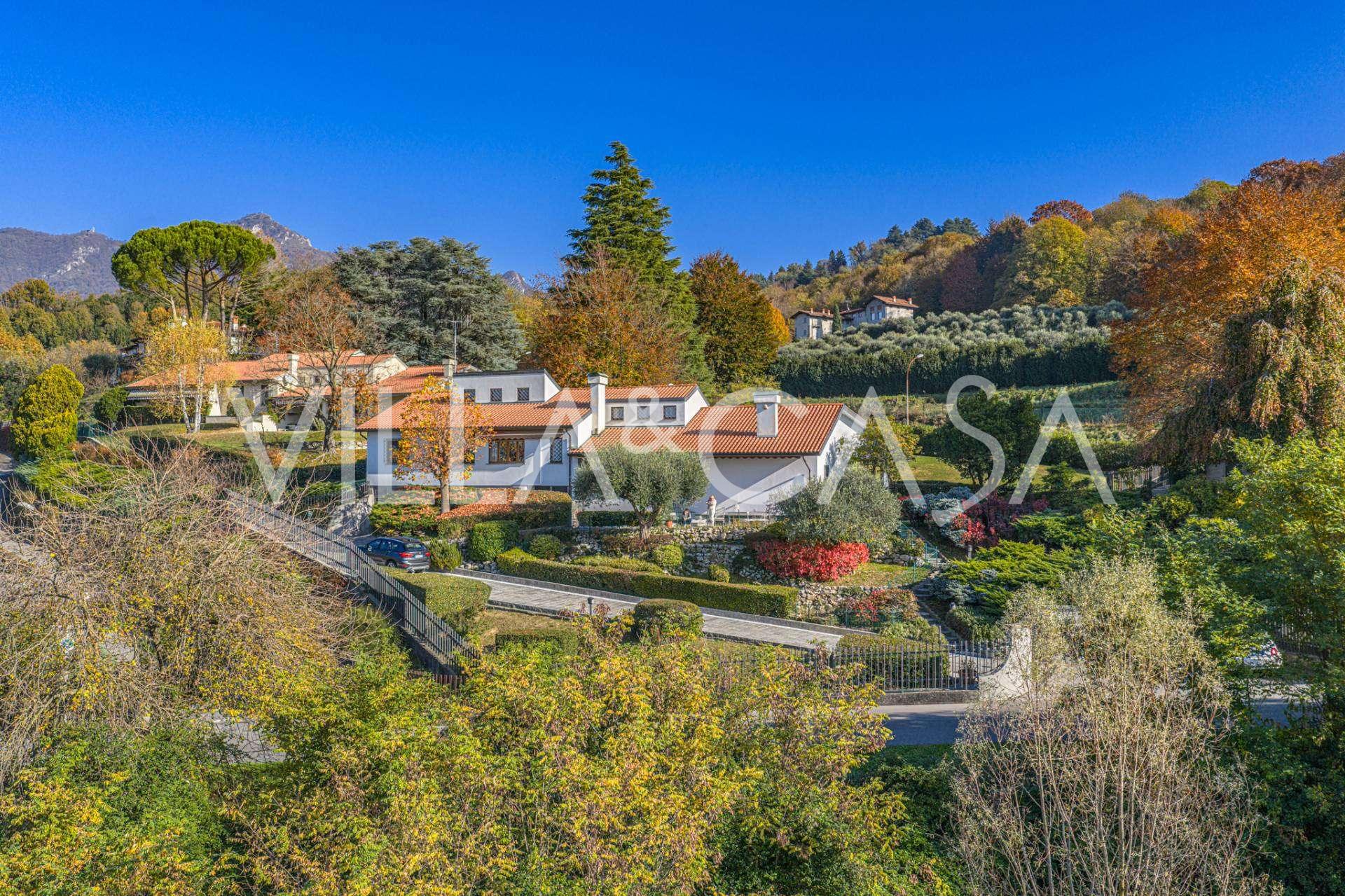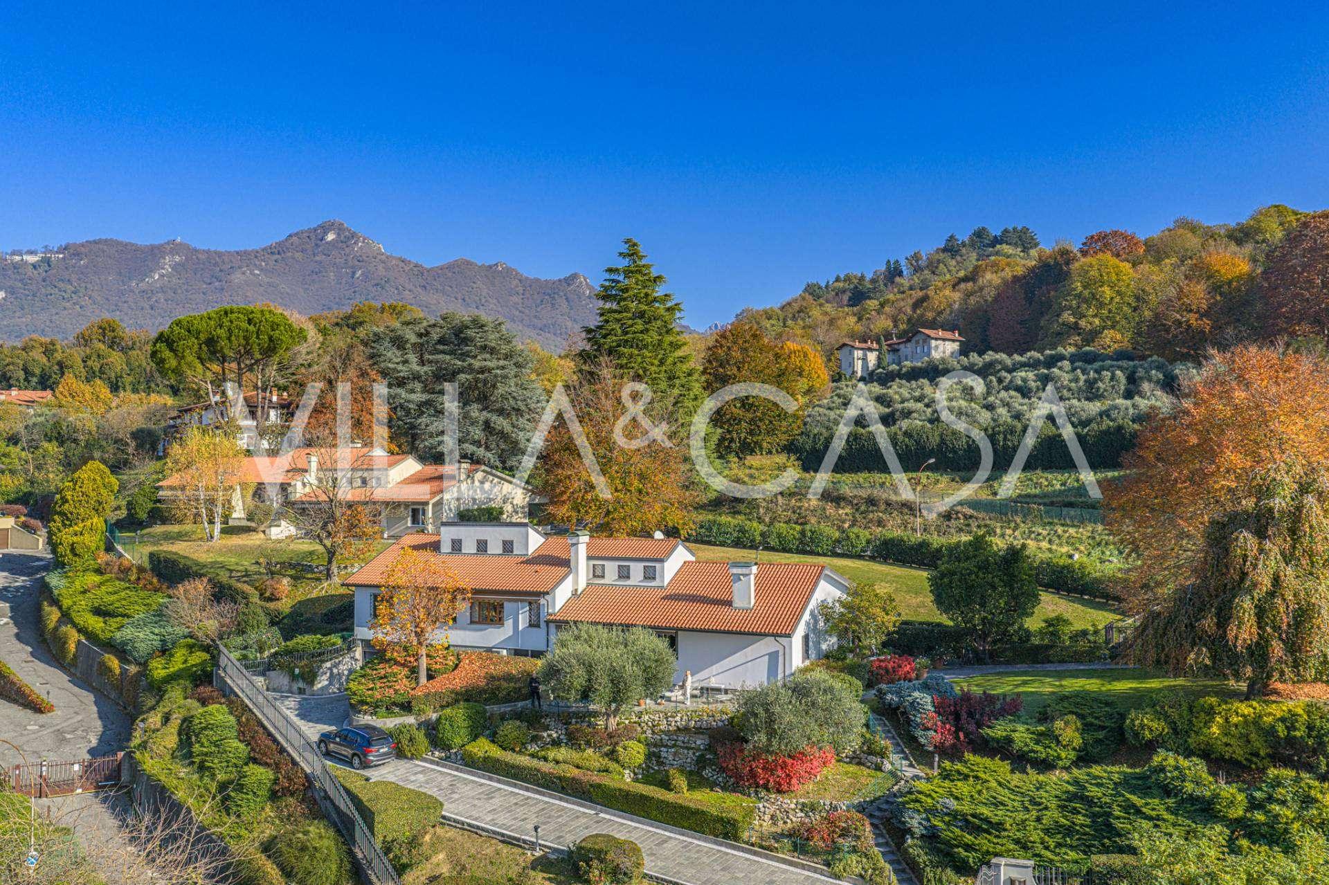 I det pittoreske området Galbiate, innen gangavstand til innsjøen, ligger en unik villa på 606 m², omgitt av en velstelt hage på 2500 m², med imponerende utsikt over innsjøen og Alpene.