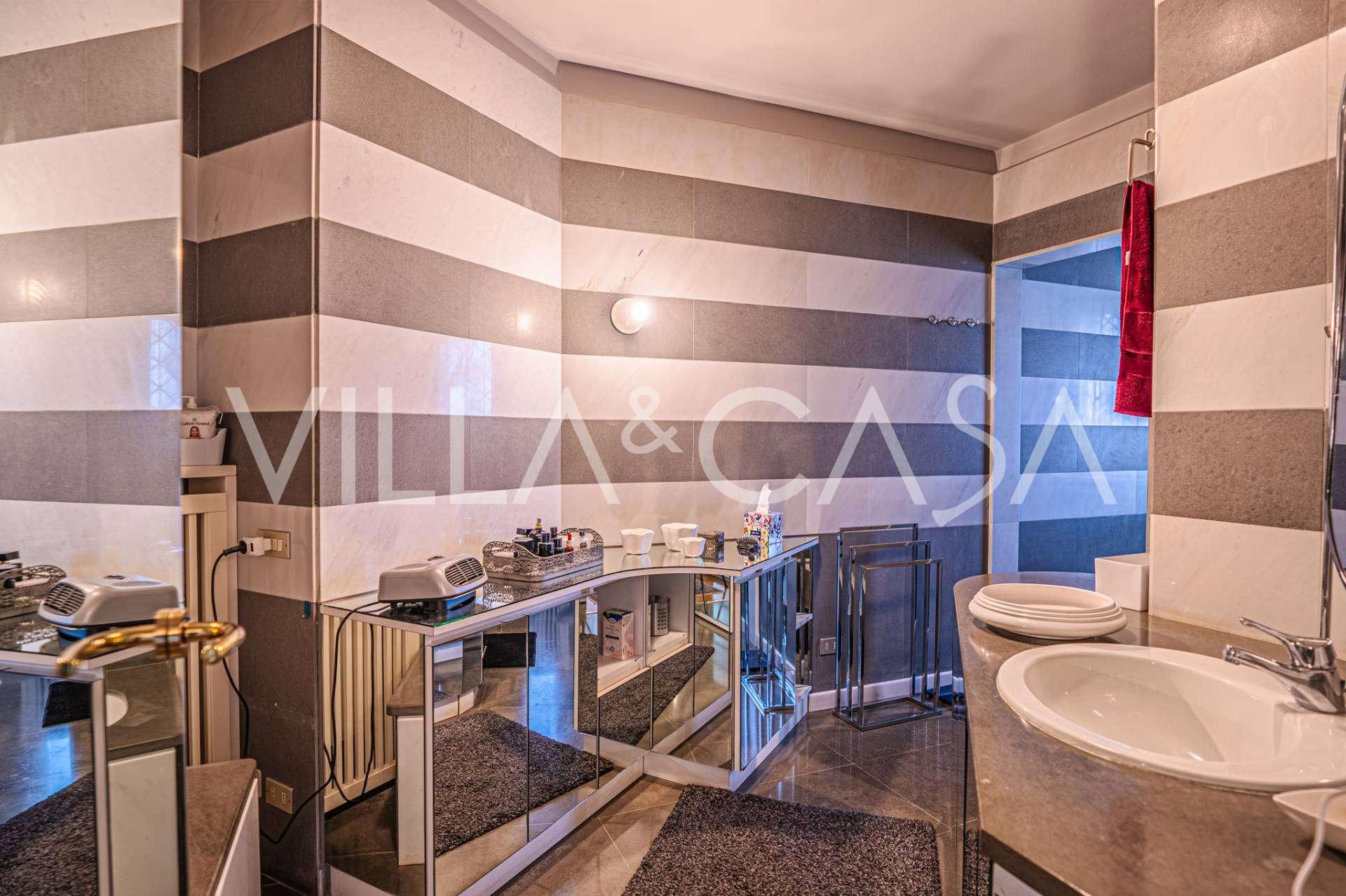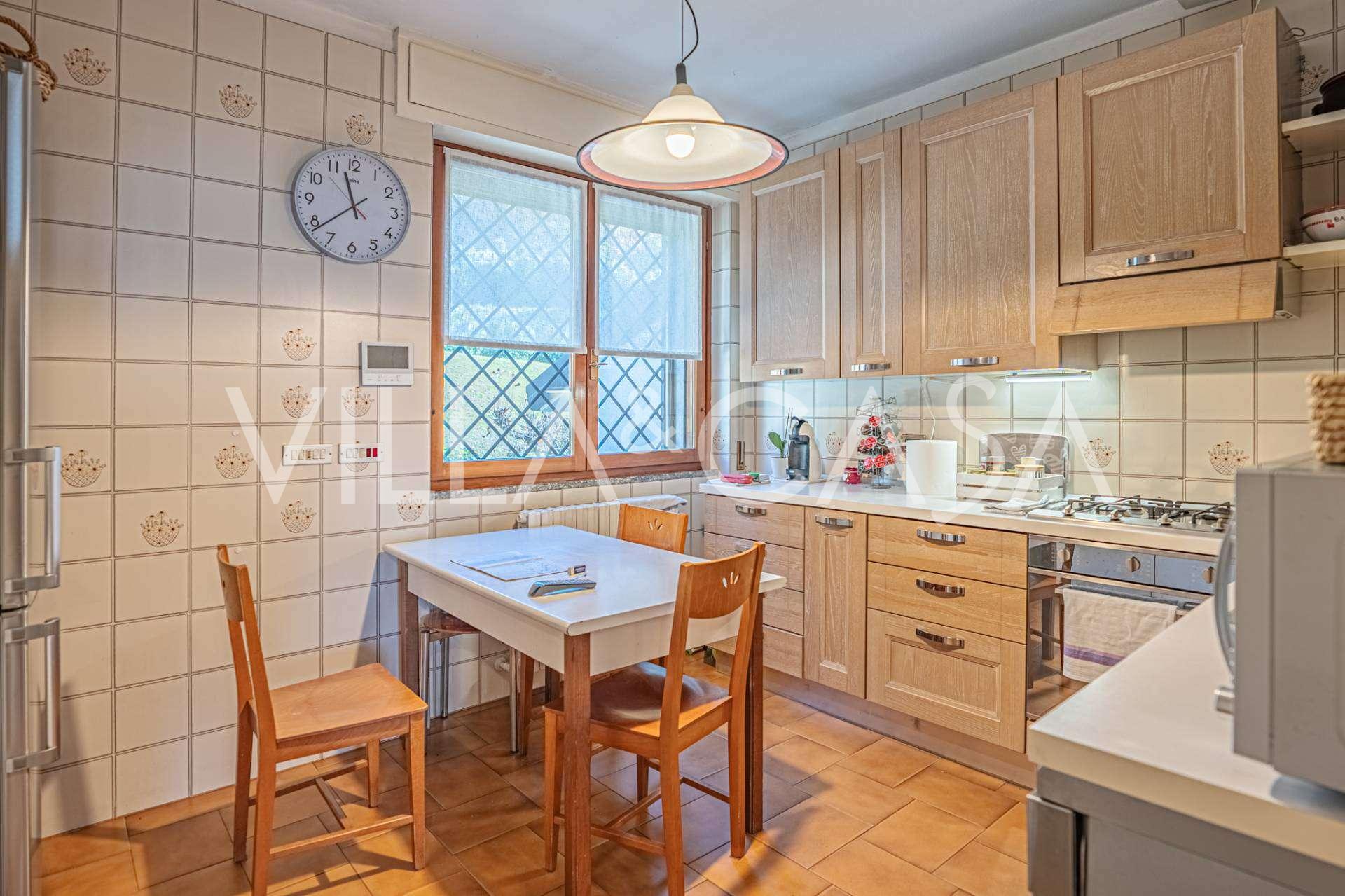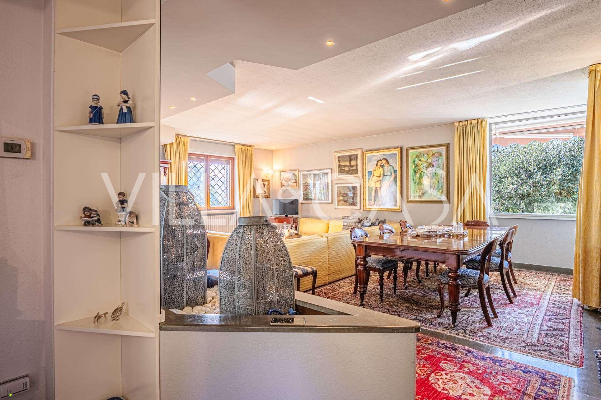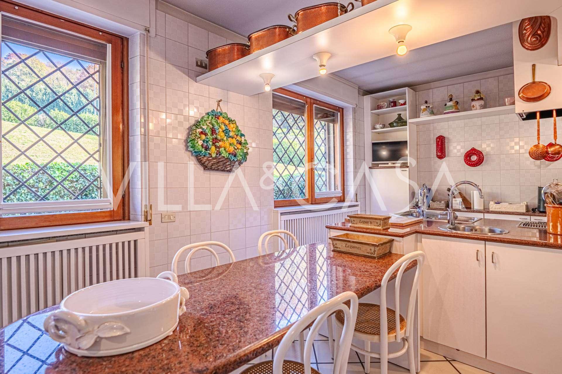 I det pittoreske området Galbiate, innen gangavstand til innsjøen, ligger en unik villa på 606 m², omgitt av en velstelt hage på 2500 m², med imponerende utsikt over innsjøen og Alpene.