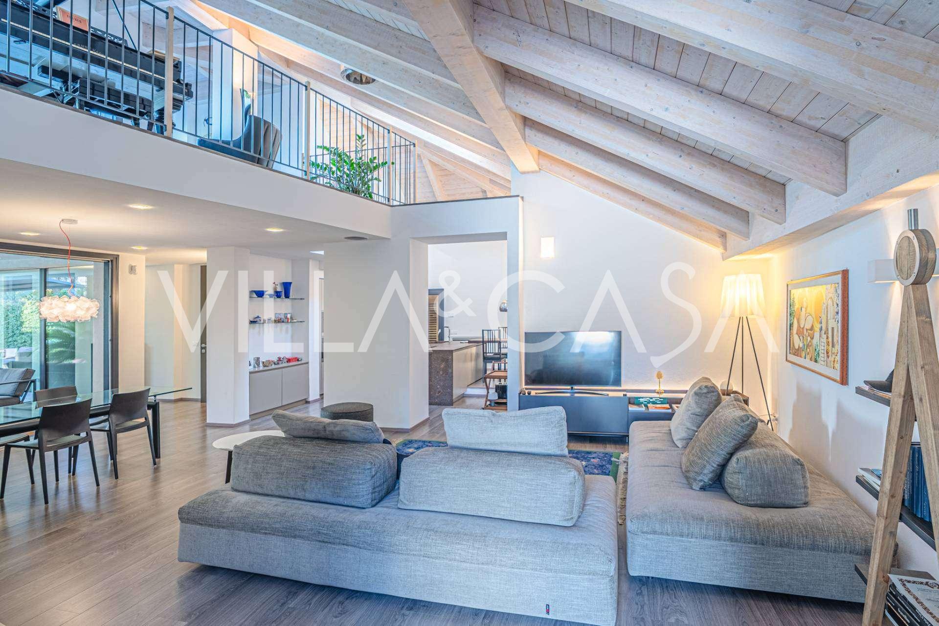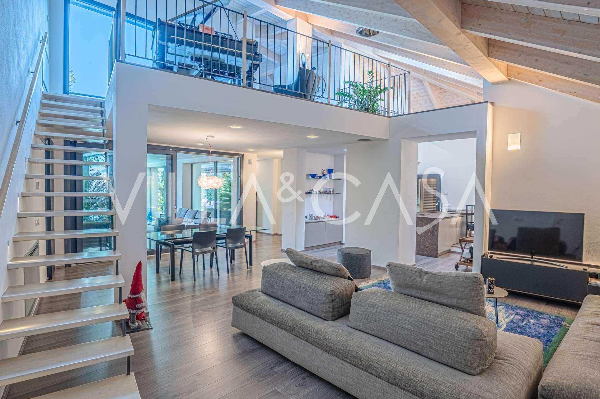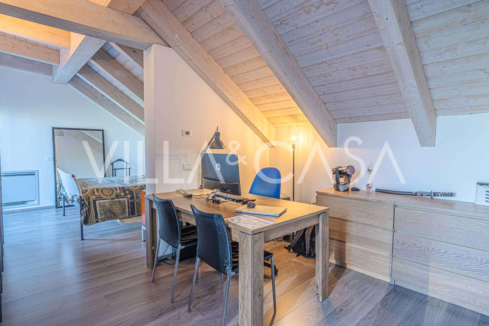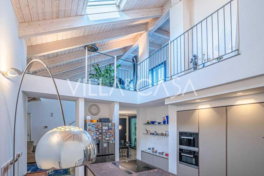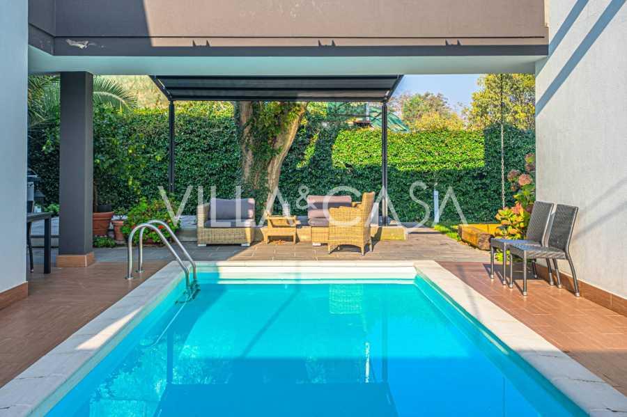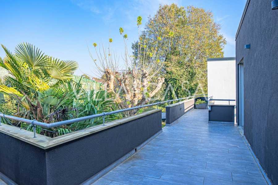 I hjertet av Ferrara, omgitt av velstelt grøntområder, selges et moderne hus bygget i 2014, med et totalt areal på rundt 360 m². Det er delt inn i to autonome deler: hovedhuset og et separat gjestehus. Begge delene er forbundet med en romslig felles terrasse i andre etasje, som skaper en helhetlig harmonisk plass og åpner opp for utsikt over hagen og rekreasjonsområdet.