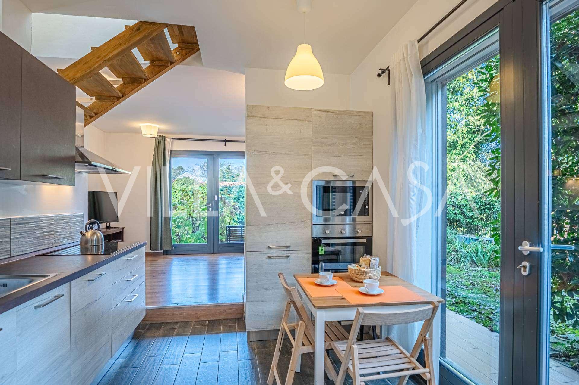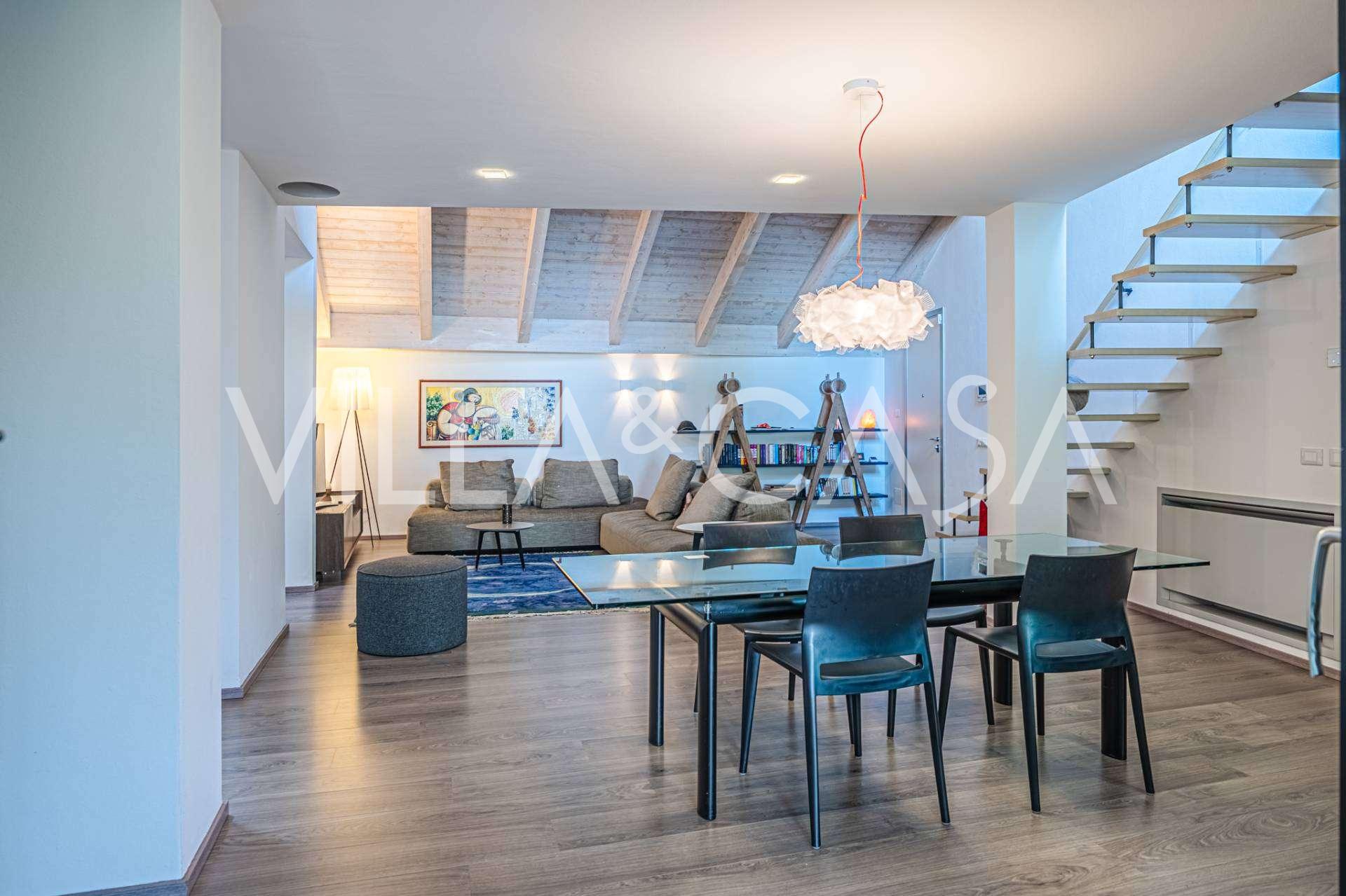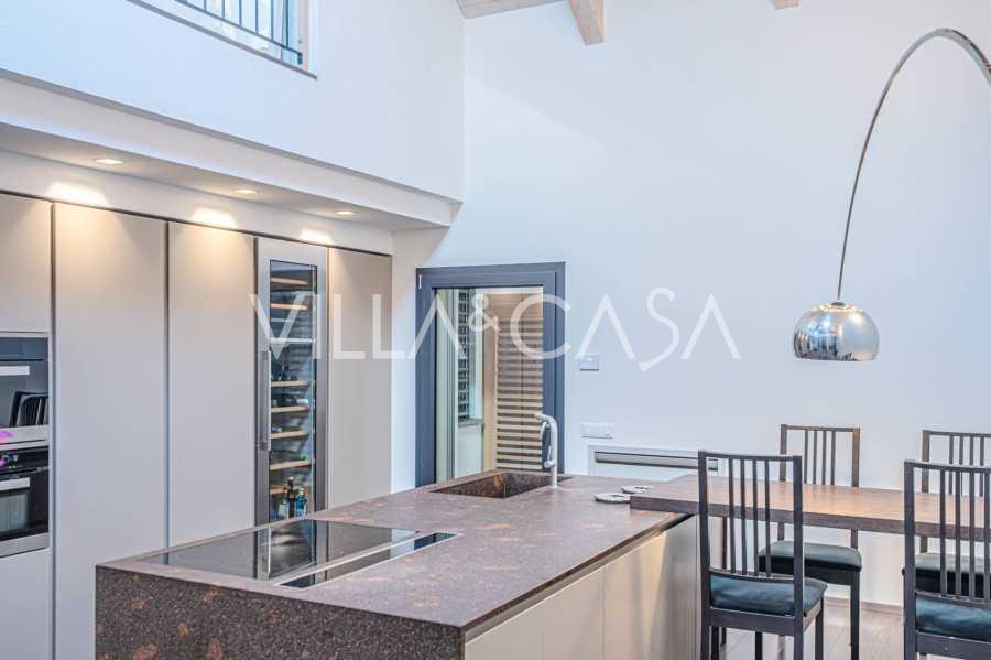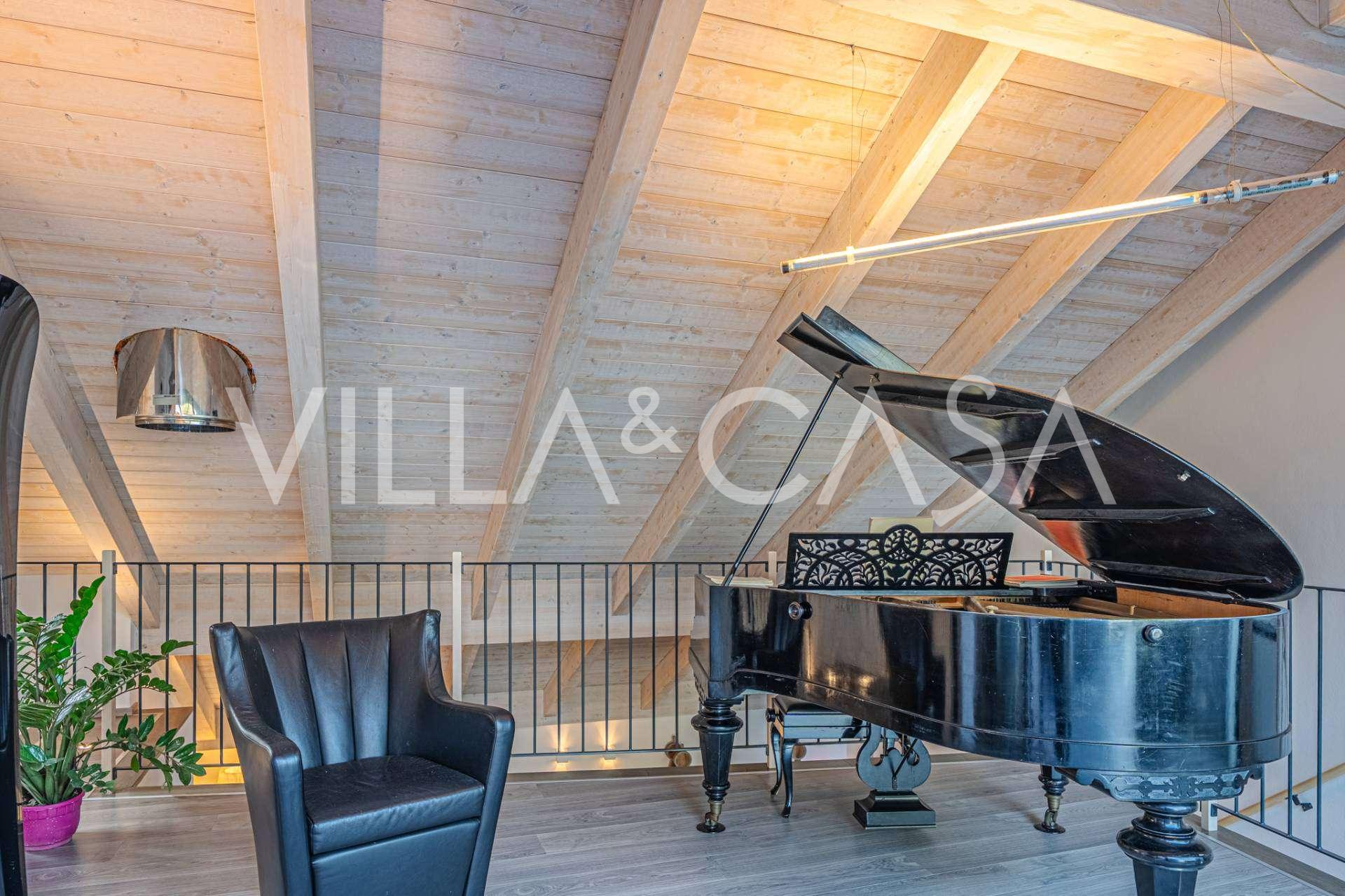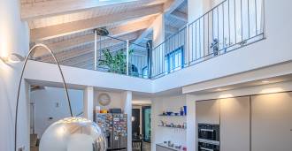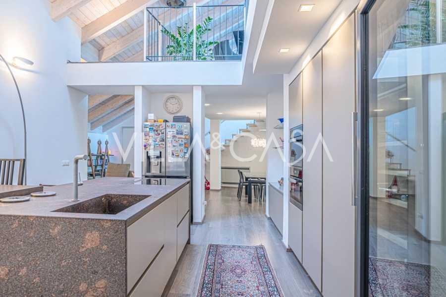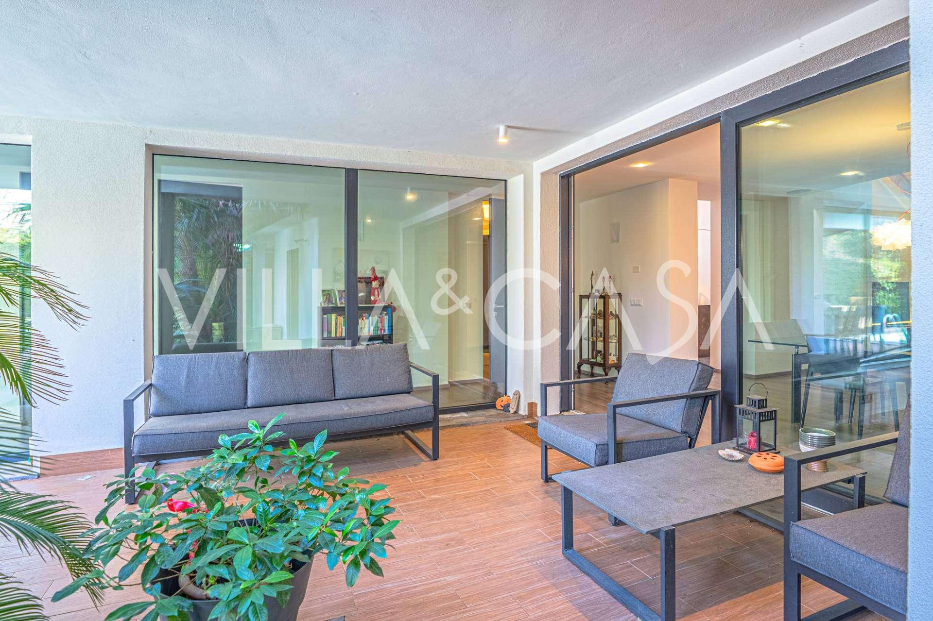 I hjertet av Ferrara, omgitt av velstelt grøntområder, selges et moderne hus bygget i 2014, med et totalt areal på rundt 360 m². Det er delt inn i to autonome deler: hovedhuset og et separat gjestehus. Begge delene er forbundet med en romslig felles terrasse i andre etasje, som skaper en helhetlig harmonisk plass og åpner opp for utsikt over hagen og rekreasjonsområdet.