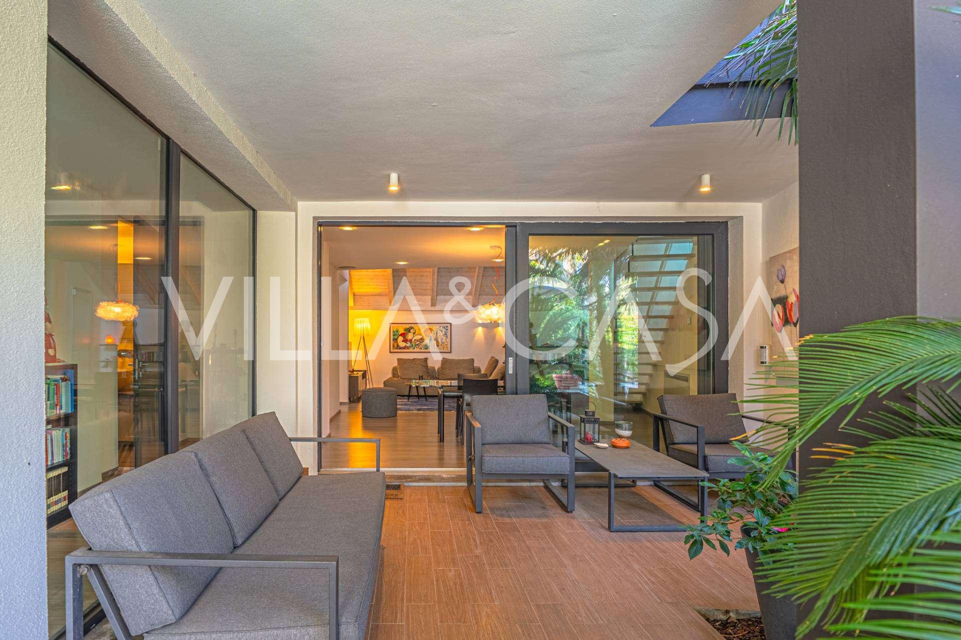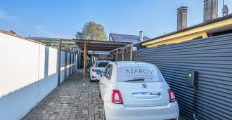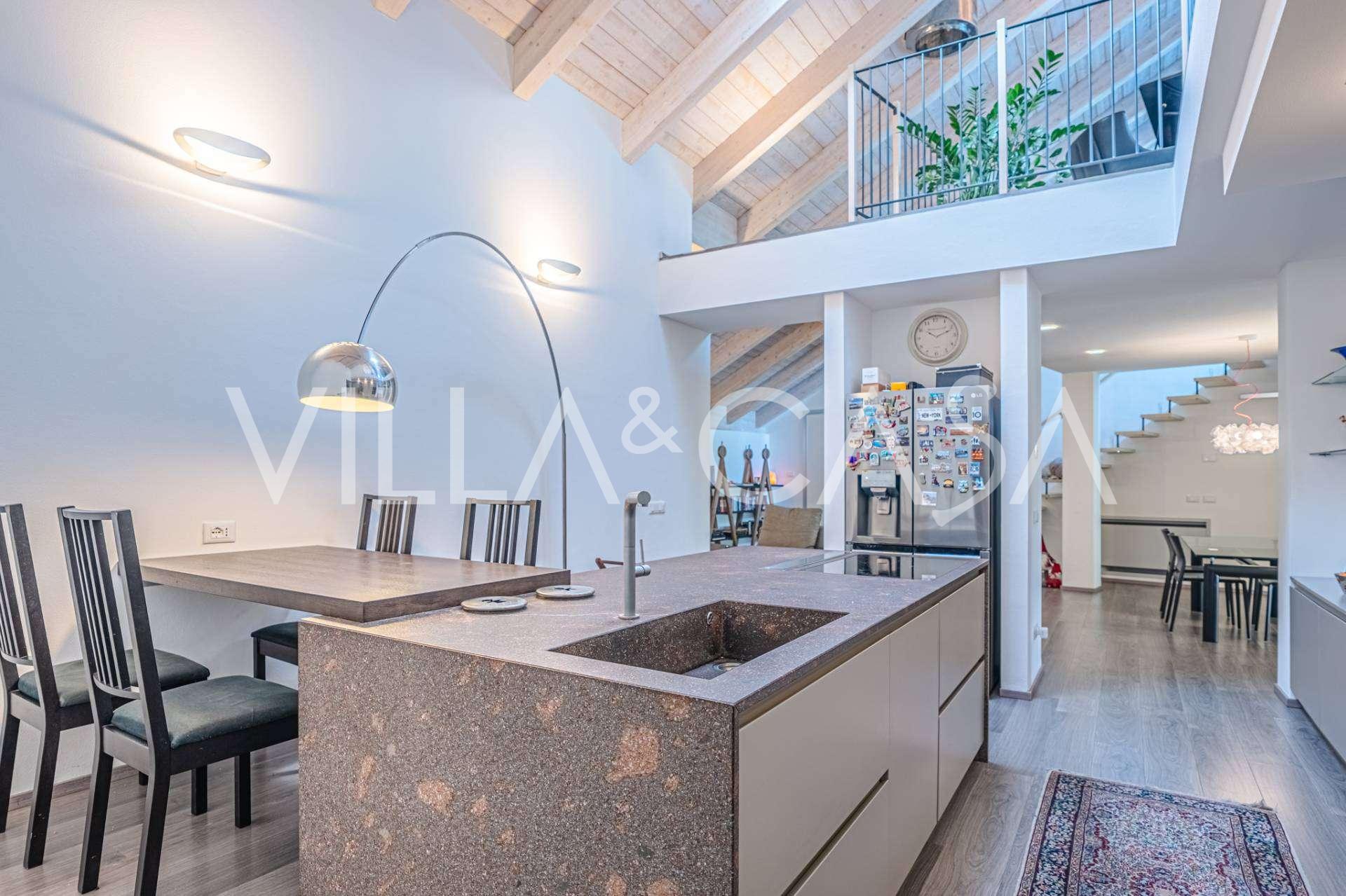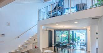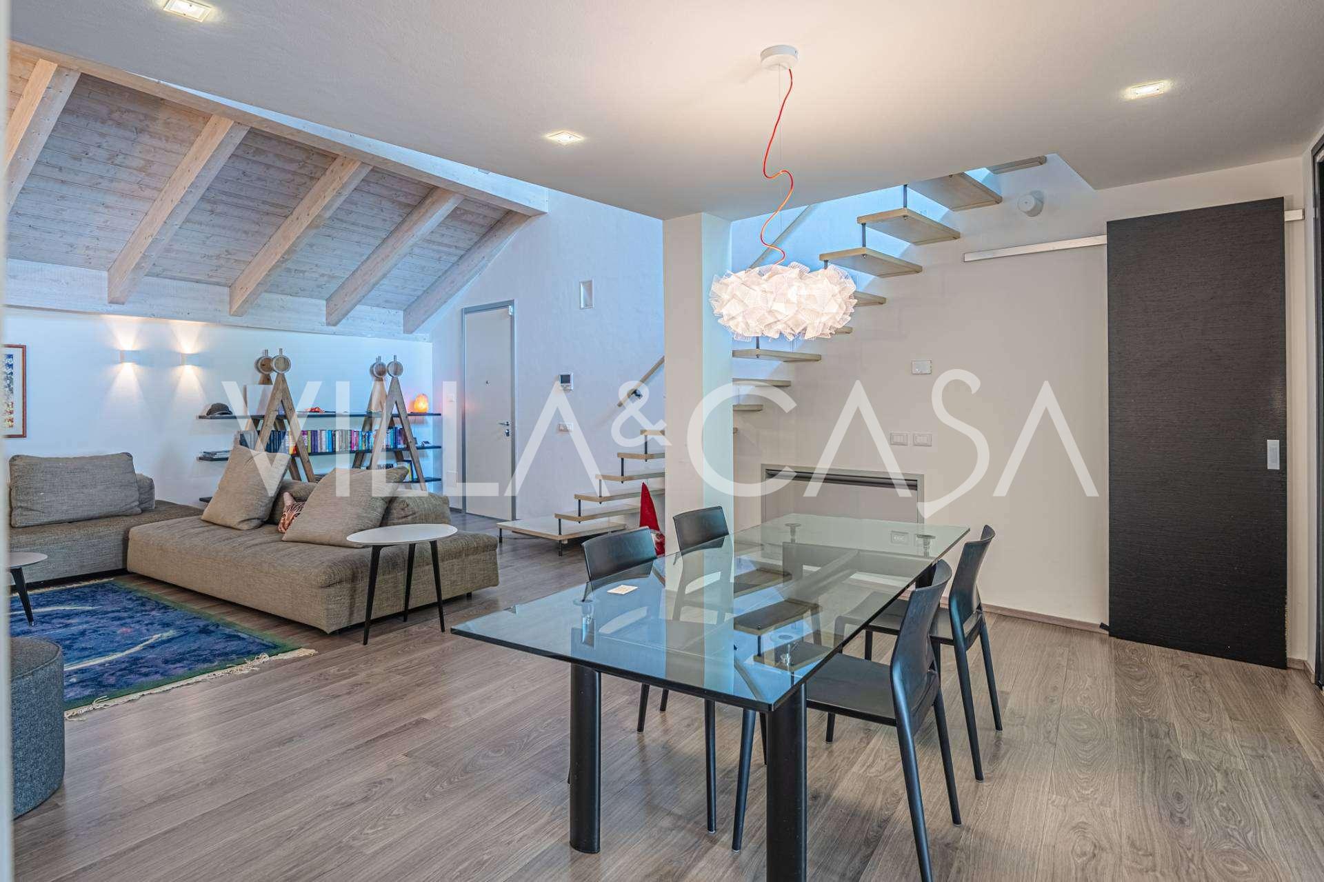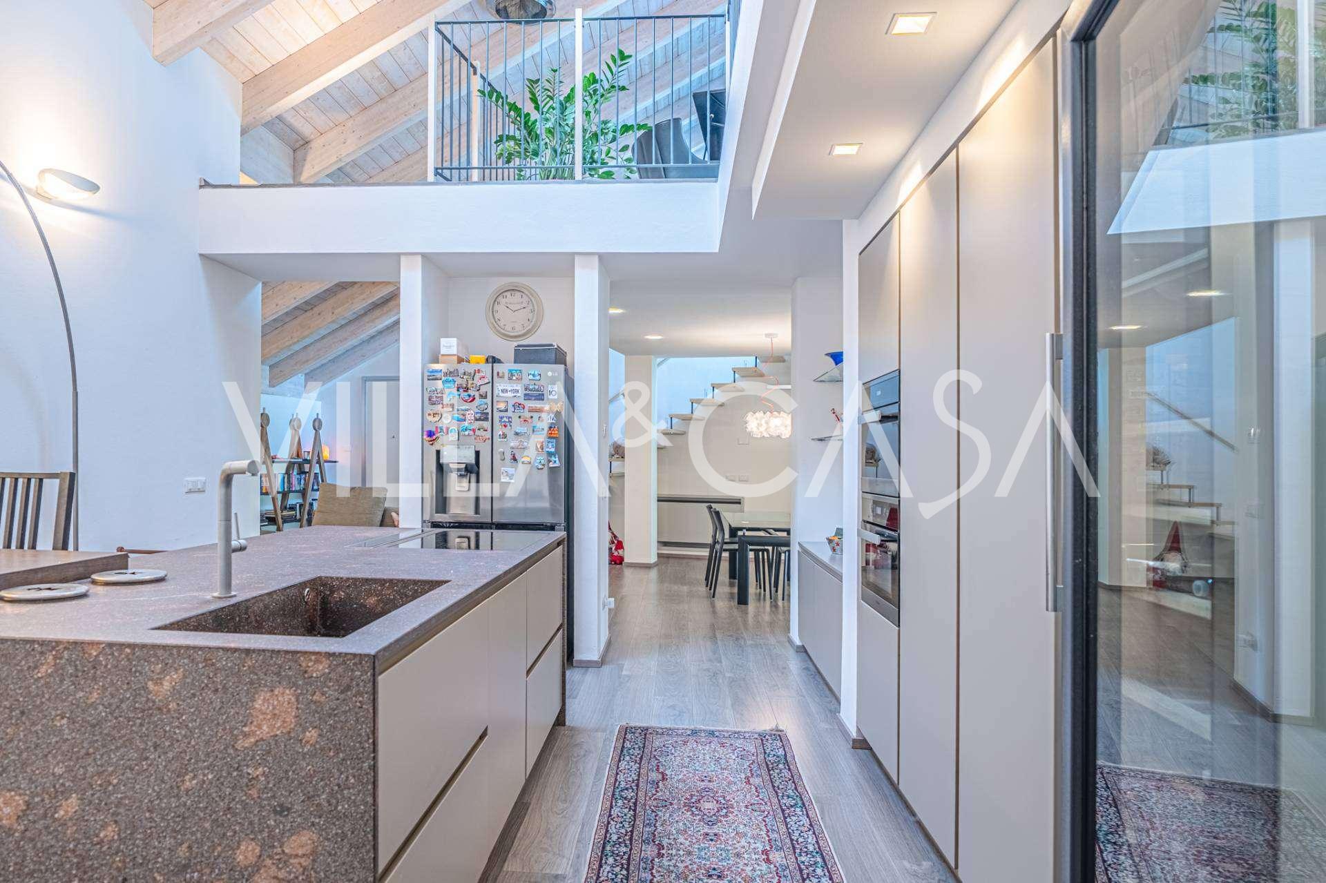 I hjertet av Ferrara, omgitt av velstelt grøntområder, selges et moderne hus bygget i 2014, med et totalt areal på rundt 360 m². Det er delt inn i to autonome deler: hovedhuset og et separat gjestehus. Begge delene er forbundet med en romslig felles terrasse i andre etasje, som skaper en helhetlig harmonisk plass og åpner opp for utsikt over hagen og rekreasjonsområdet.