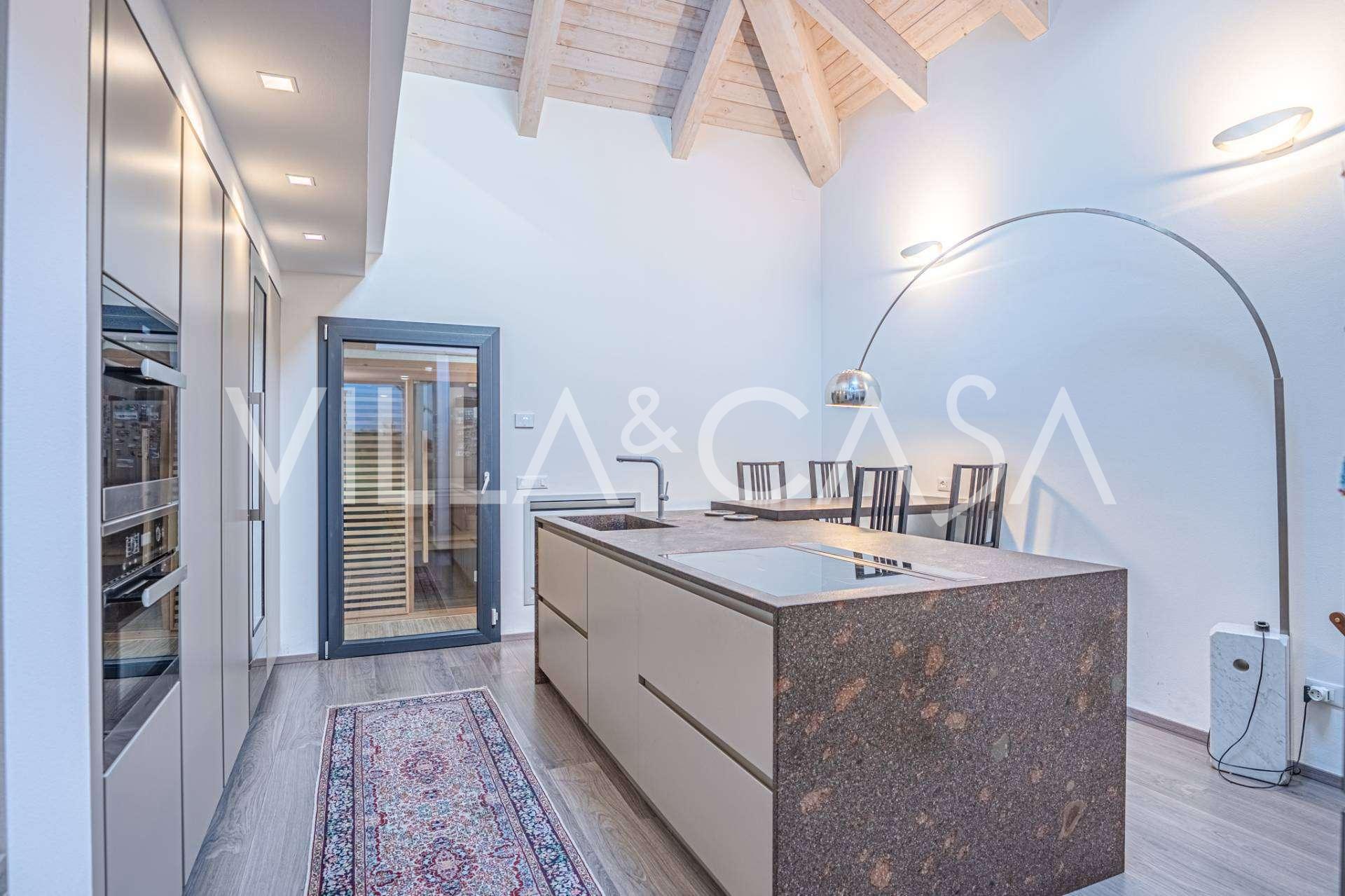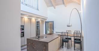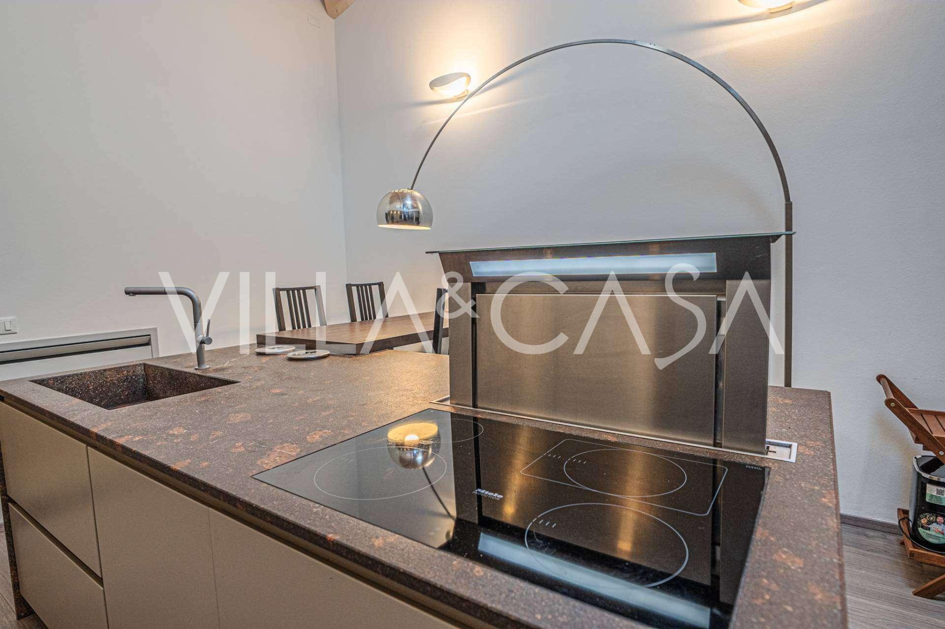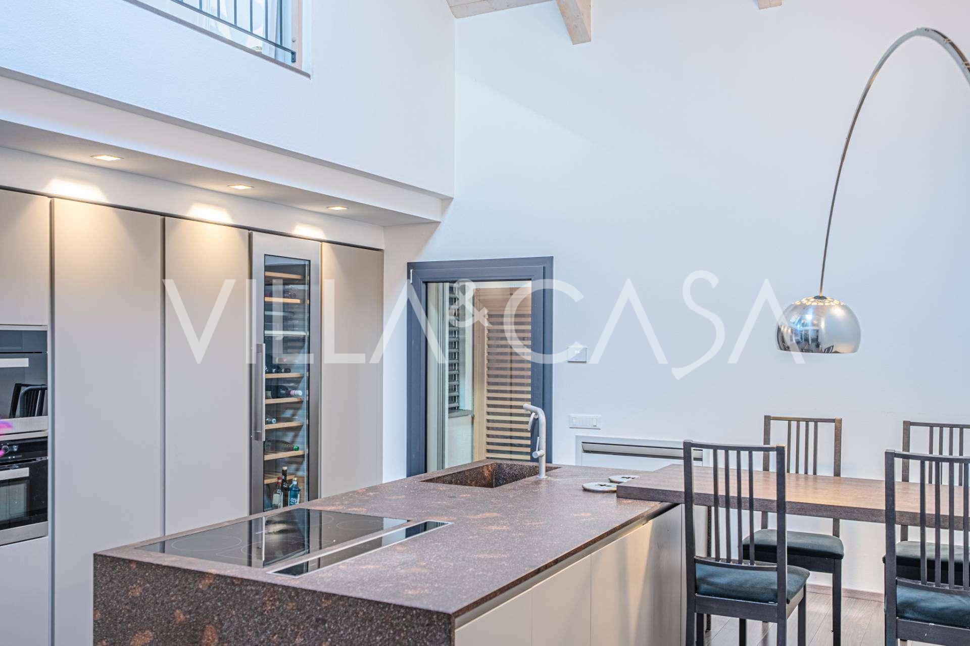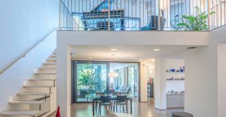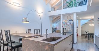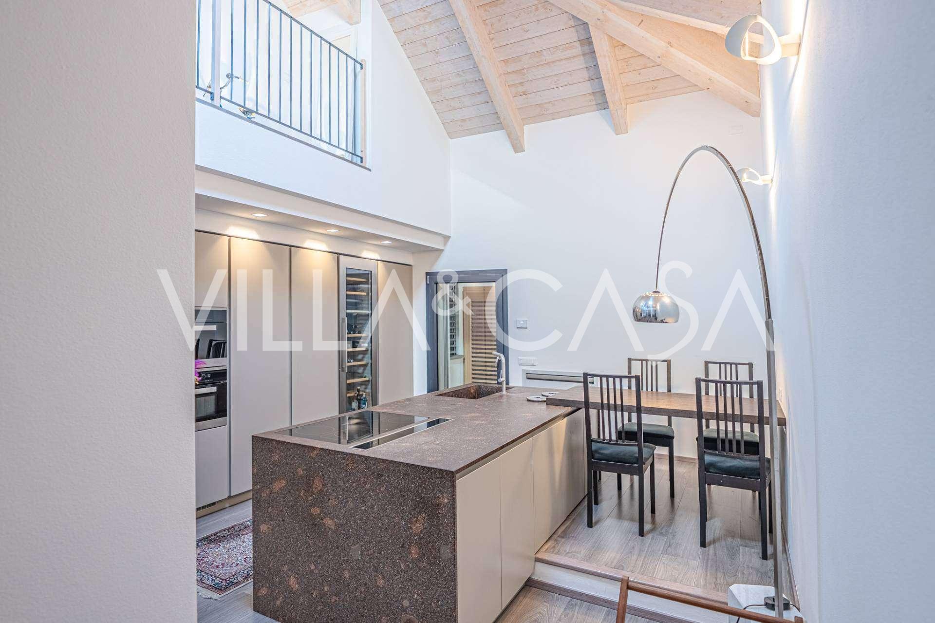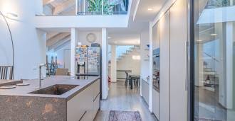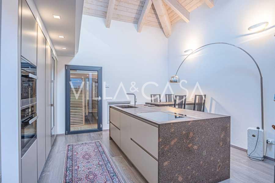 I hjertet av Ferrara, omgitt av velstelt grøntområder, selges et moderne hus bygget i 2014, med et totalt areal på rundt 360 m². Det er delt inn i to autonome deler: hovedhuset og et separat gjestehus. Begge delene er forbundet med en romslig felles terrasse i andre etasje, som skaper en helhetlig harmonisk plass og åpner opp for utsikt over hagen og rekreasjonsområdet.