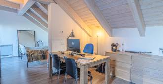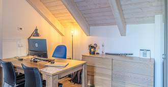 Andre etasje: Romslig soverom med direkte utgang til terrassen, kontor (eller ekstra soverom etter ønske).