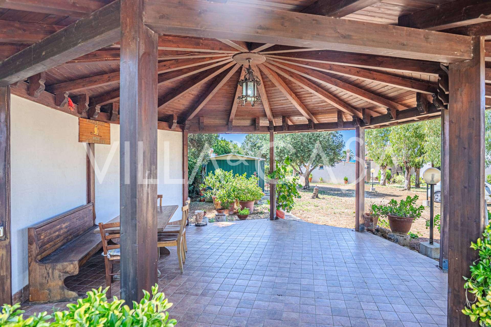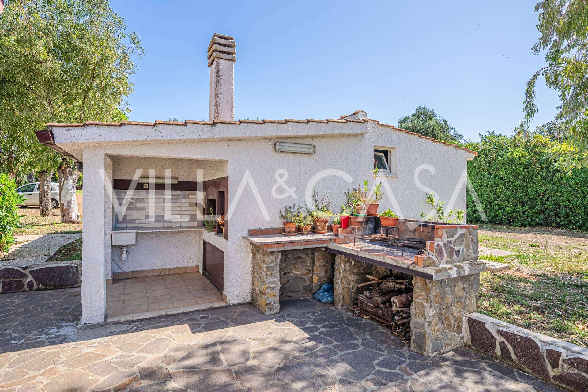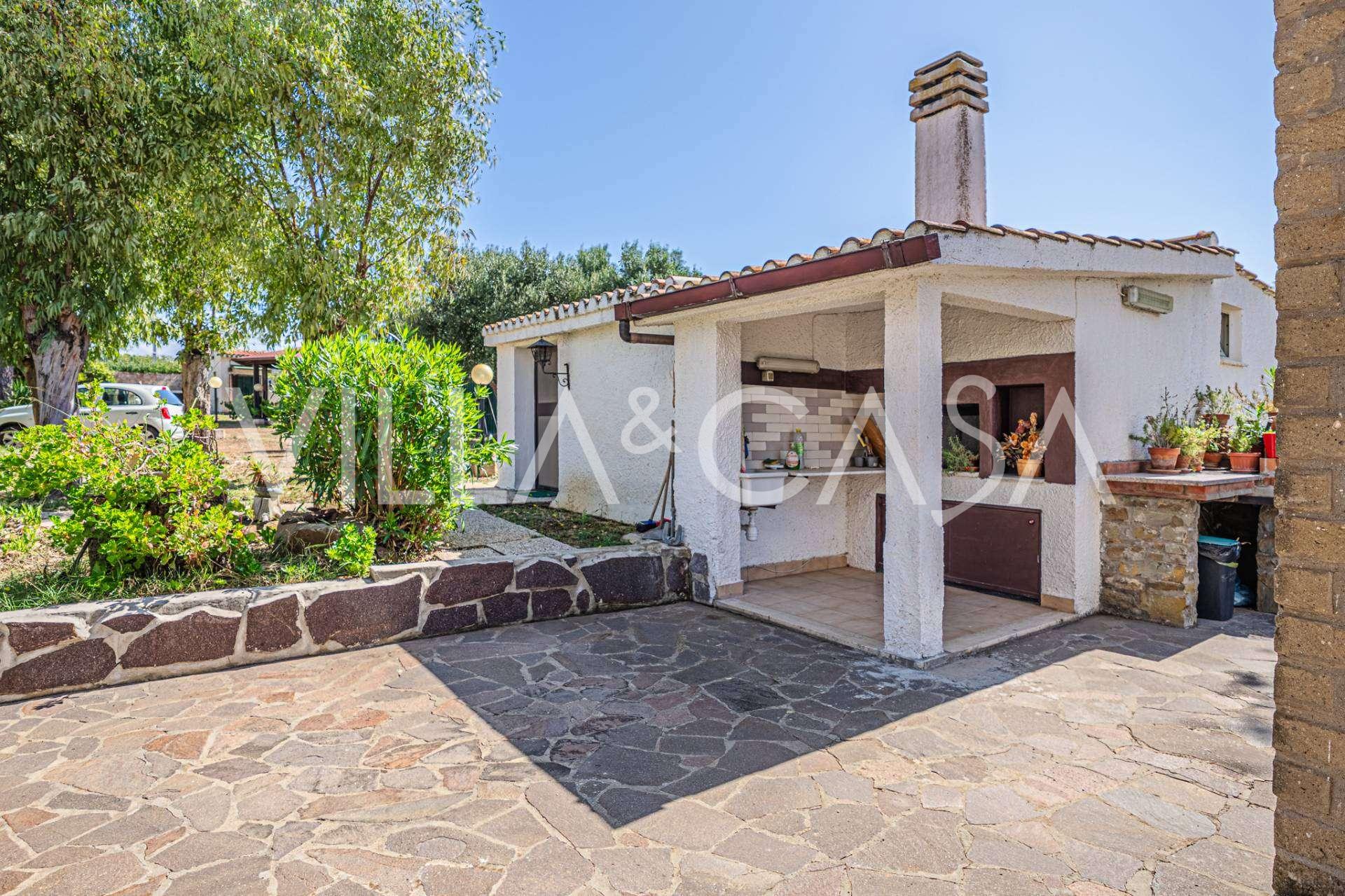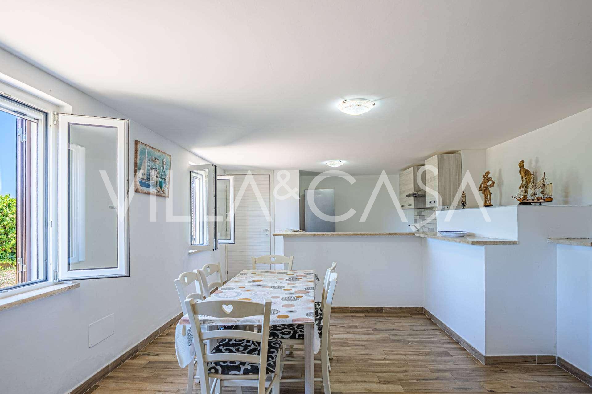 Residensen kompletteres av hjelpebygg: en egen bygning med baderom, minikjøkken, vedovn, vaskerom og bod, samt en uavhengig leilighet på ca. 24 kvm med eget soverom, baderom og minikjøkken. Den prydes av en trepaviljong på ca. 100 kvm med tak, som gir en pittoresk utsikt over havet. Leiligheten kjennetegnes av privatliv og utmerket solforhold, har to innkjørsler med automatiske porter, er i upåklagelig stand, fullt møblert og utstyrt med klimaanlegg og solcelleanlegg.