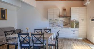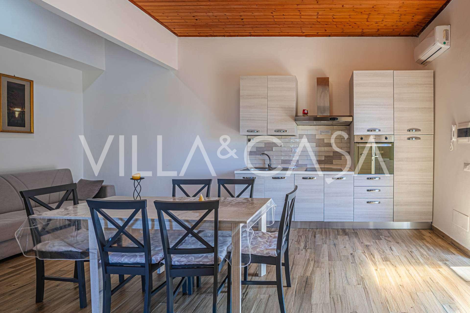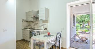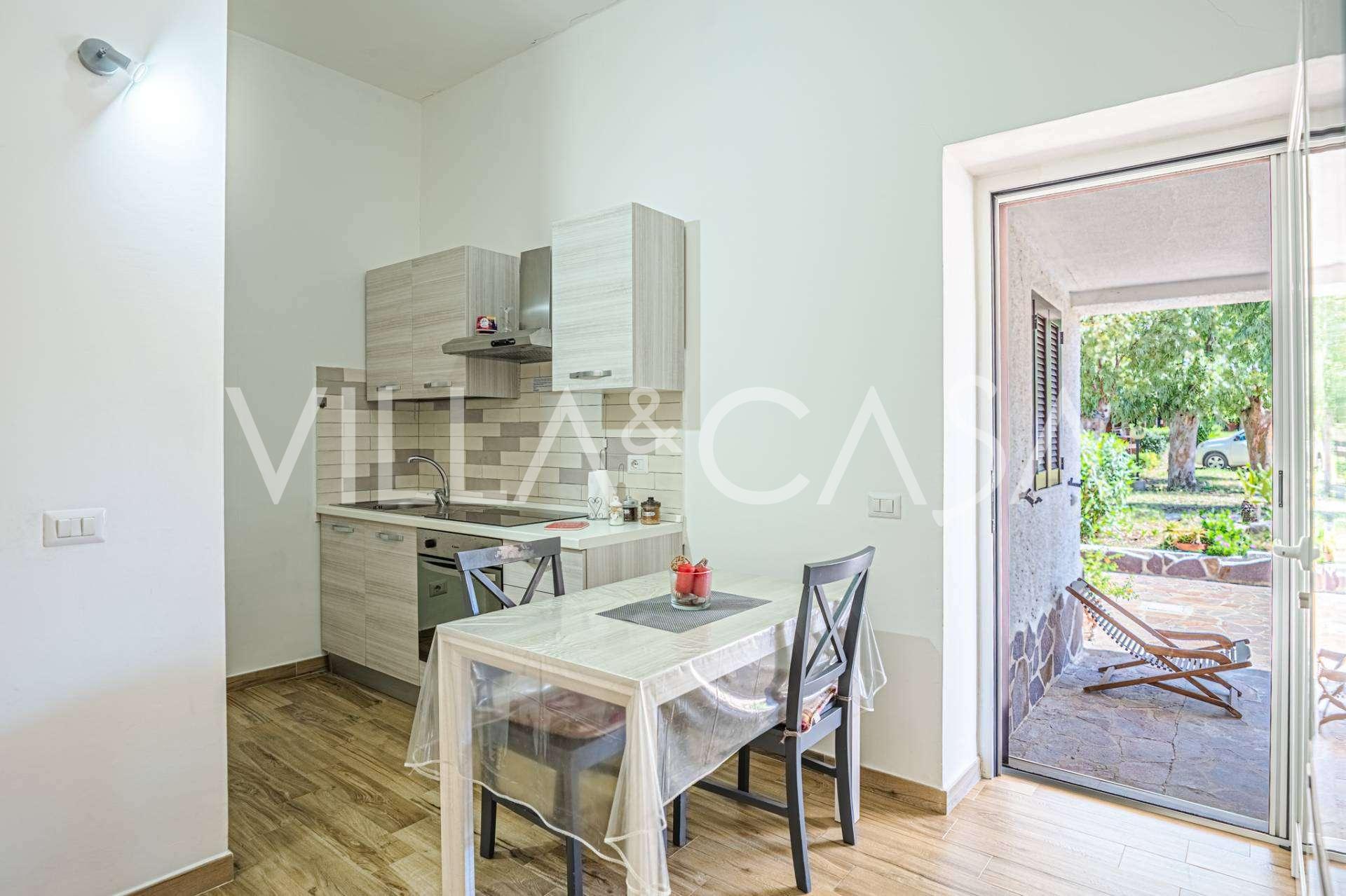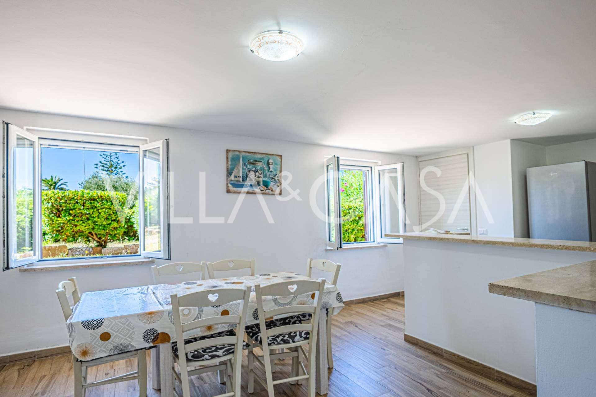 Residensen kompletteres av hjelpebygg: en egen bygning med baderom, minikjøkken, vedovn, vaskerom og bod, samt en uavhengig leilighet på ca. 24 kvm med eget soverom, baderom og minikjøkken. Den prydes av en trepaviljong på ca. 100 kvm med tak, som gir en pittoresk utsikt over havet. Leiligheten kjennetegnes av privatliv og utmerket solforhold, har to innkjørsler med automatiske porter, er i upåklagelig stand, fullt møblert og utstyrt med klimaanlegg og solcelleanlegg.