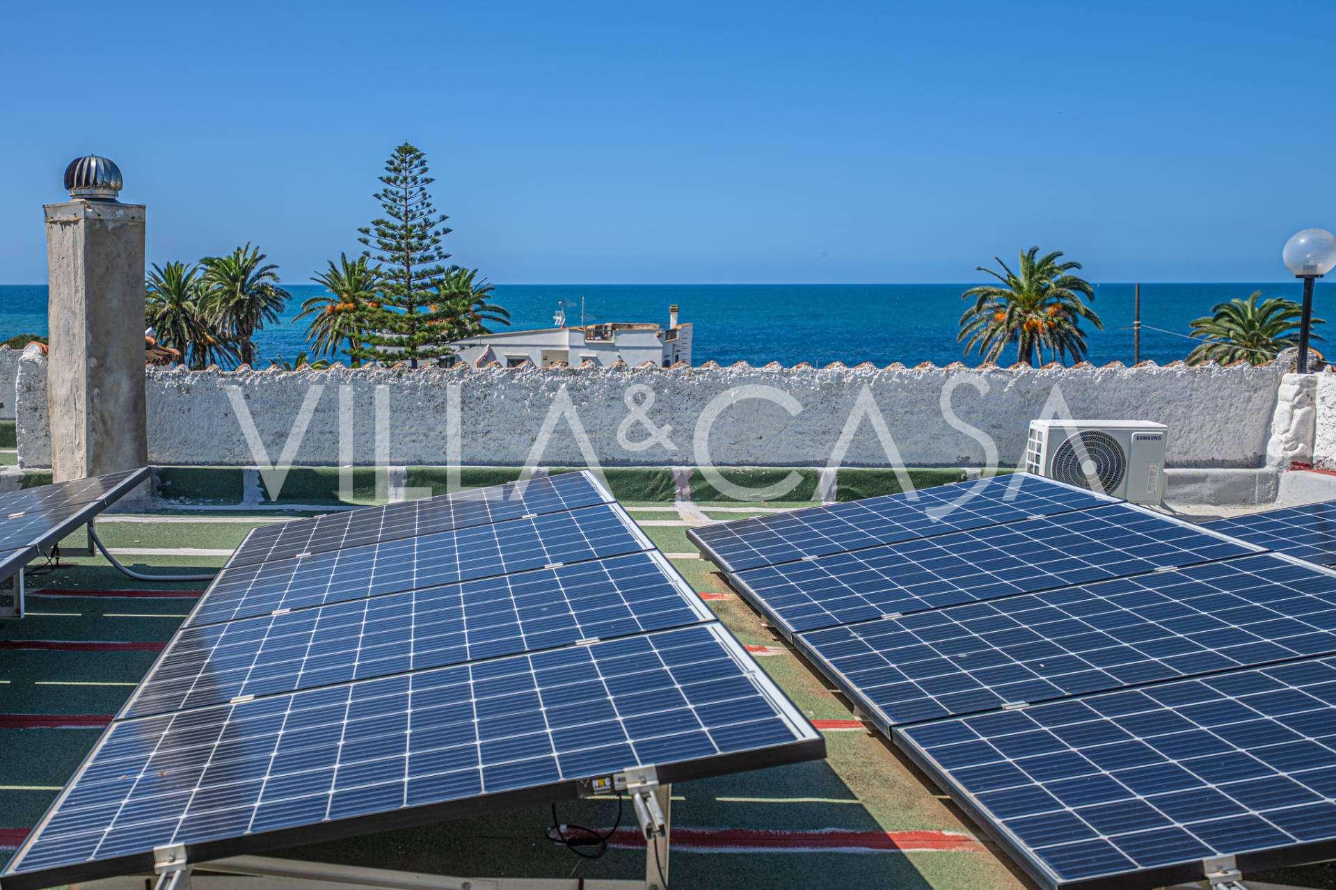 Villaen ble fullstendig restaurert med spesiell oppmerksomhet på komfort og bærekraftige teknologier. Et moderne solcelleanlegg gir produksjon av ren fornybar energi, noe som understreker eiendommens høye energieffektivitet.