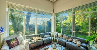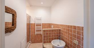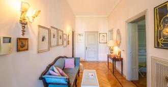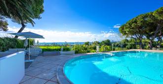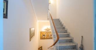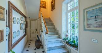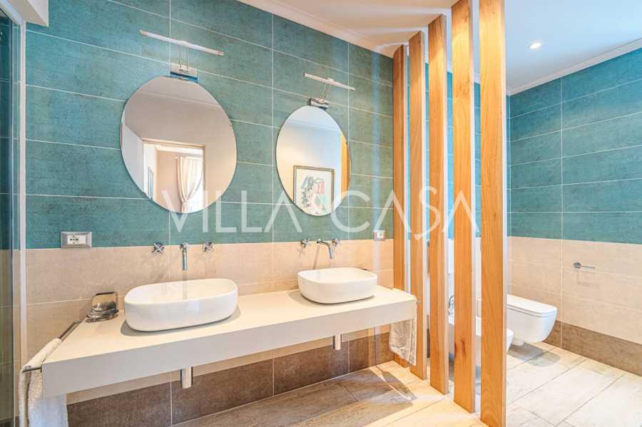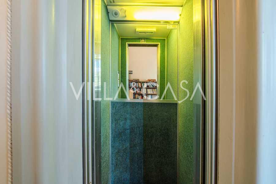 Første nivå: inngang, romslig korridor, heis, stor sal med peis med utgang til parken og stranden, stue med panoramavinduer, takhøyde på 3,5 meter, soverom med utgang til parken og en overbygd terrasse, bad med badekar, separat kjøkken.