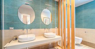 Andre nivå: 4 soverom, 4 bad. Romslig terrasse med havutsikt, to av soverommene har også utgang til terrassen med havutsikt.