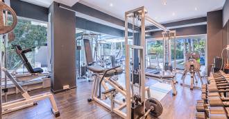 På første nivå finner man også et kontor med utgang til hagen, et gjestebad og en fullverdig avslapnings- og velværeområde: et innendørs oppvarmet basseng med panoramavinduer, et spa-område med tyrkisk bad og solarium, samt et treningsrom.