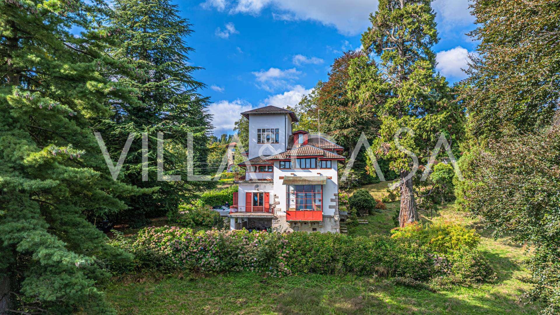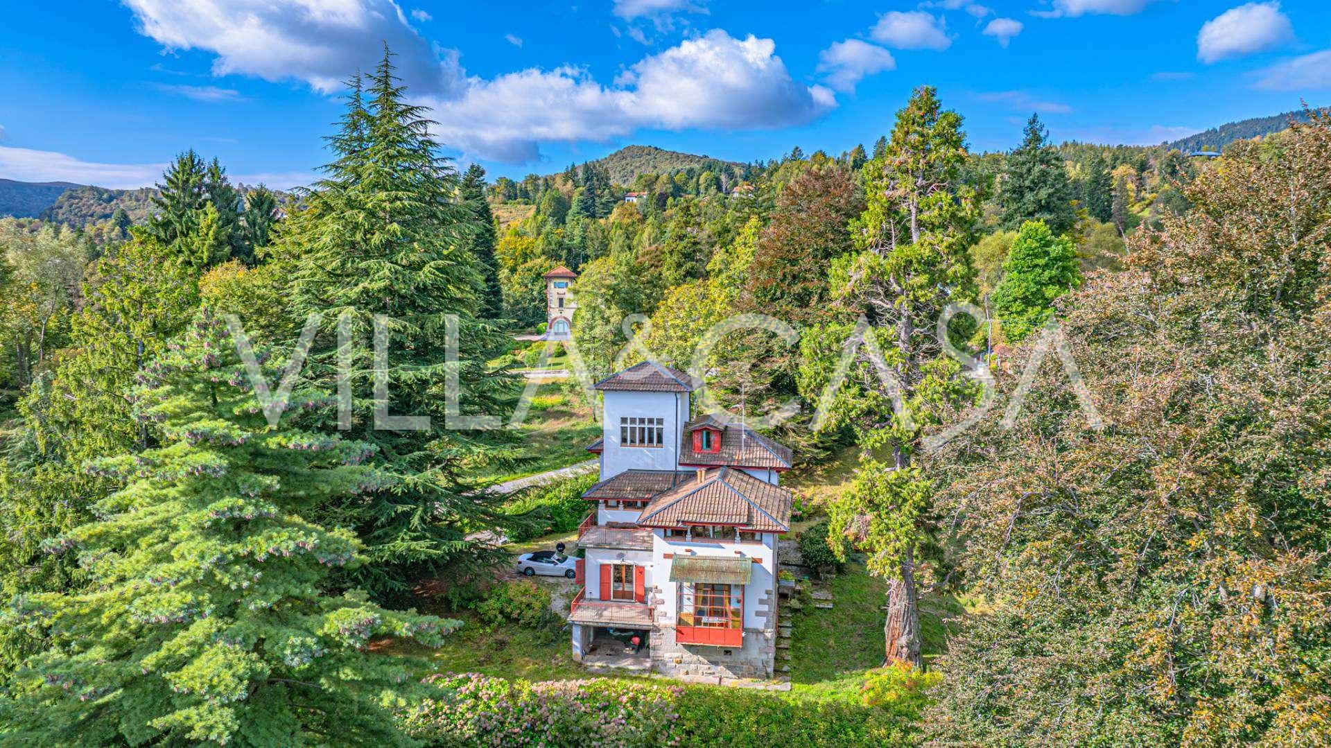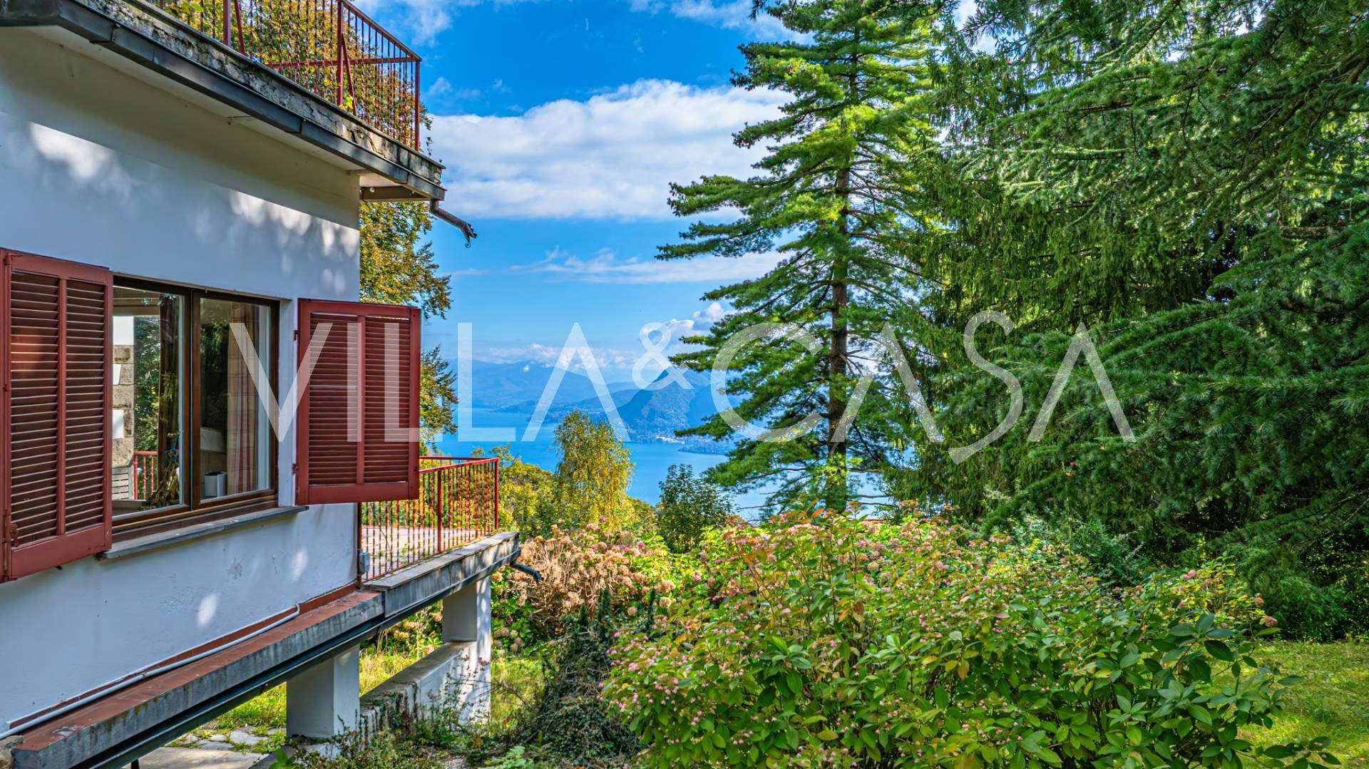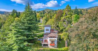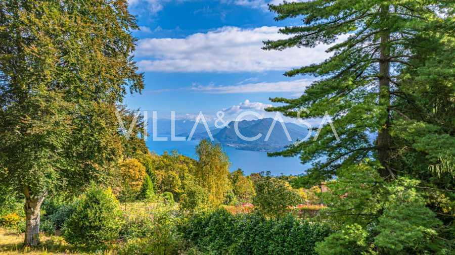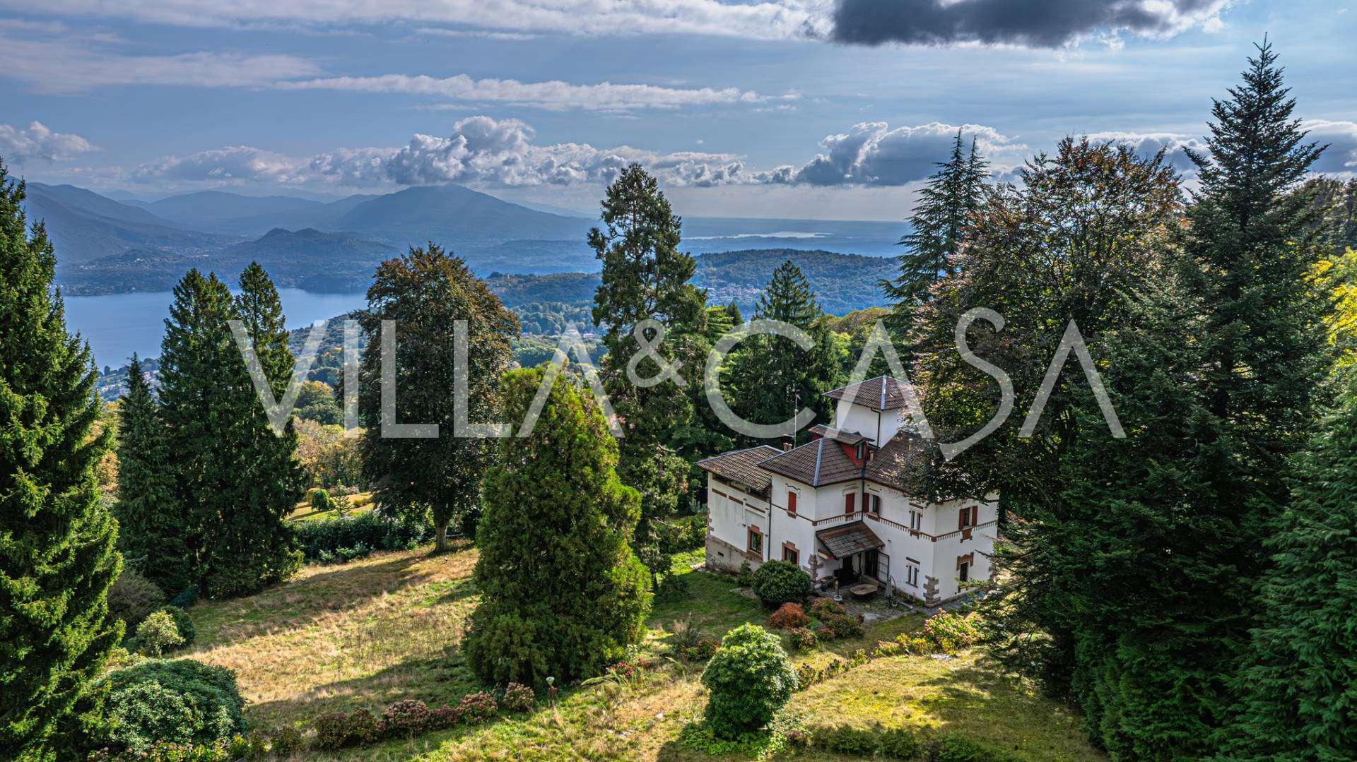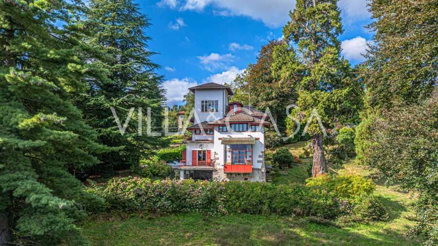 På eiendommen, som har en velstelt park på rundt 6000 m² som skråner ned mot vannet, står en elegant villa omgitt av århundregamle trær som majestetiske sequoiaer, libanonseder, samt en rik samling av asaleaer, rhododendroner og hortensiaer. Eiendommen inkluderer hovedhuset og et sjarmerende gjestehus (dependance) i alpin chalet-stil.