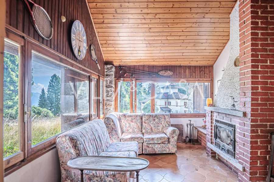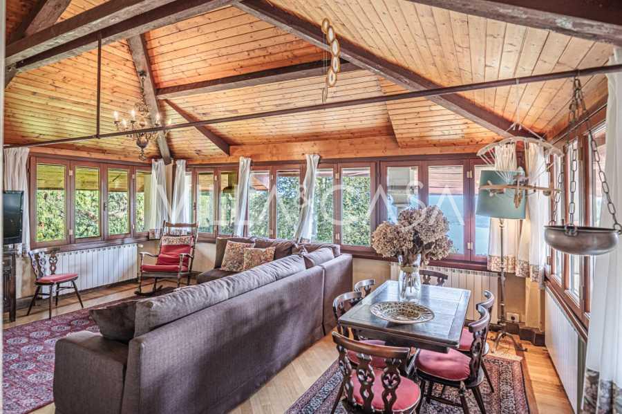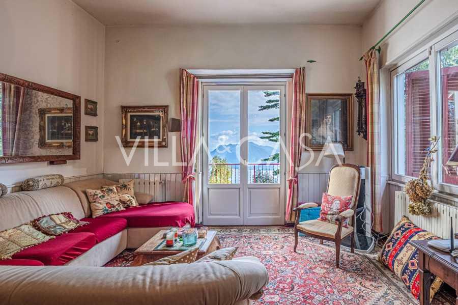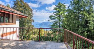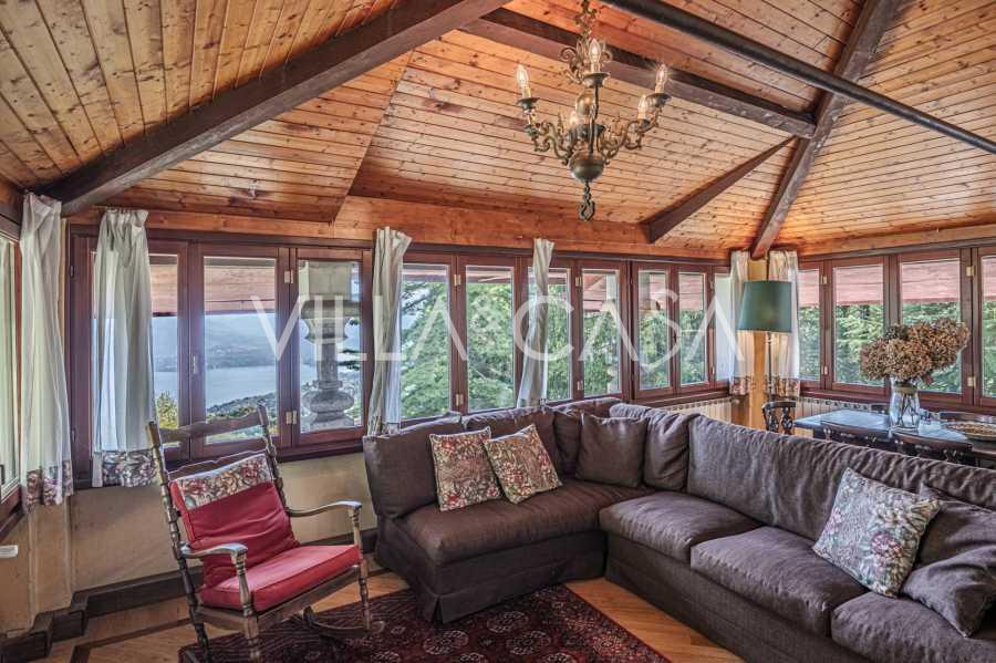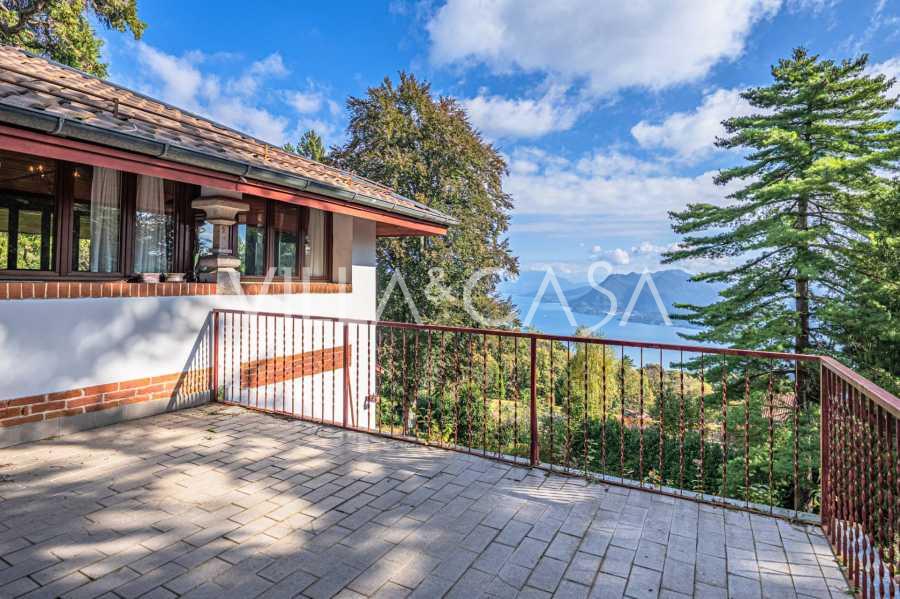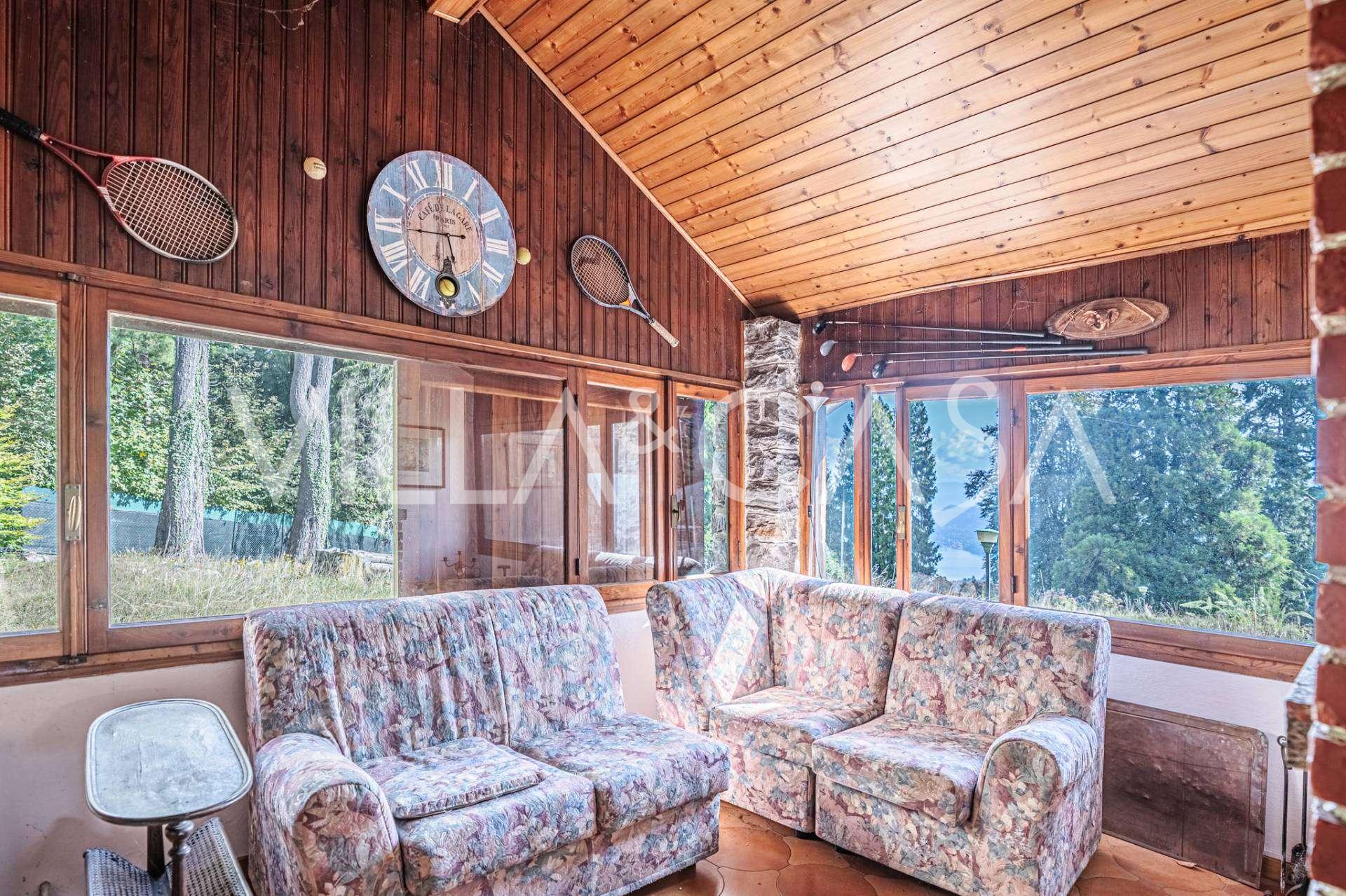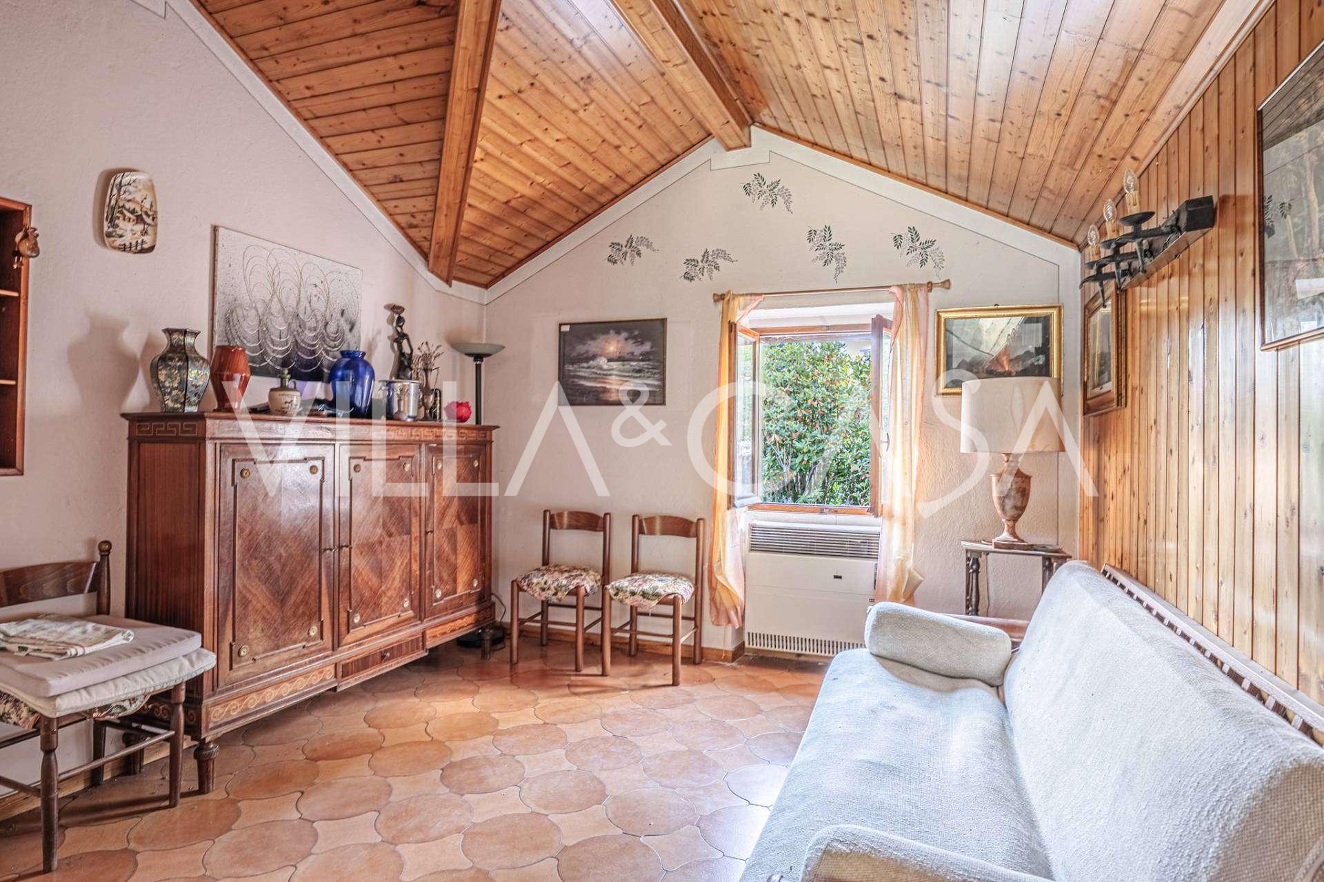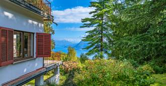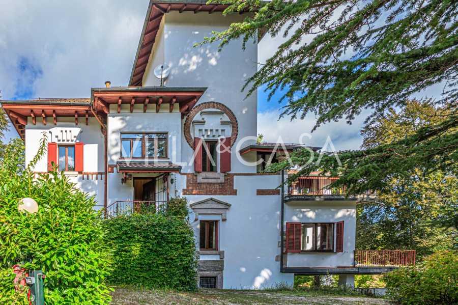 På eiendommen, som har en velstelt park på rundt 6000 m² som skråner ned mot vannet, står en elegant villa omgitt av århundregamle trær som majestetiske sequoiaer, libanonseder, samt en rik samling av asaleaer, rhododendroner og hortensiaer. Eiendommen inkluderer hovedhuset og et sjarmerende gjestehus (dependance) i alpin chalet-stil.