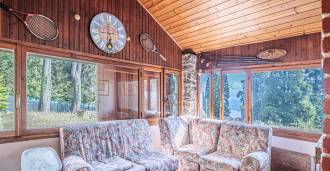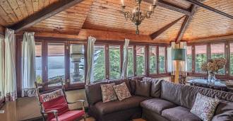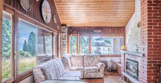 - Første etasje (rundt 160 m²): romslig vestibyle, kjøkken, to boder, stue med peis og spisestue med utgang til en stor terrasse med utsikt over sjøen, bred korridor, tre soverom (ett med innglasset veranda og panoramautsikt), bad og åpen terrasse. I kjellernivået er det fire rom for kjellere.